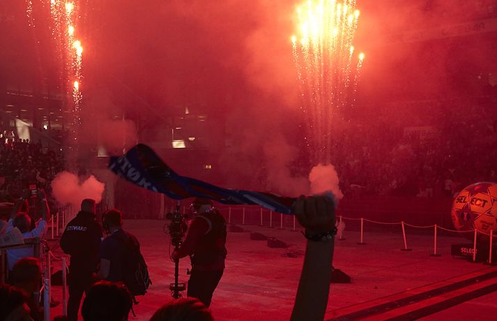 Það var mikil gleði hjá Arnóri Atlasyni, Snorra Steini Guðjónssyni og félögum þeirra í danska handboltaliðinu AGK er liðið tryggði sér danska meistaratitilinn í handbolta. AGK vann þá níu marka sigur á Bjerringbro-Silkeborg, 30-21, í öðrum úrslitaleik liðanna og rimmu liðanna því 2-0 samanlagt. Um var að ræða tímamótaleik á heimsvísu því rúmlega 36 þúsund manns fylltu knattspyrnuleikvanginn Parken í Kaupmannahöfn og settu um leið heimsmet. Aldrei áður hafa jafn margir áhorfendur mætt á einn handboltaleik. Í myndaalbúminu hér að neðan má sjá stemninguna og gleðina á Parken í gær.