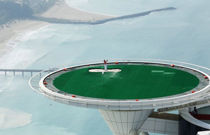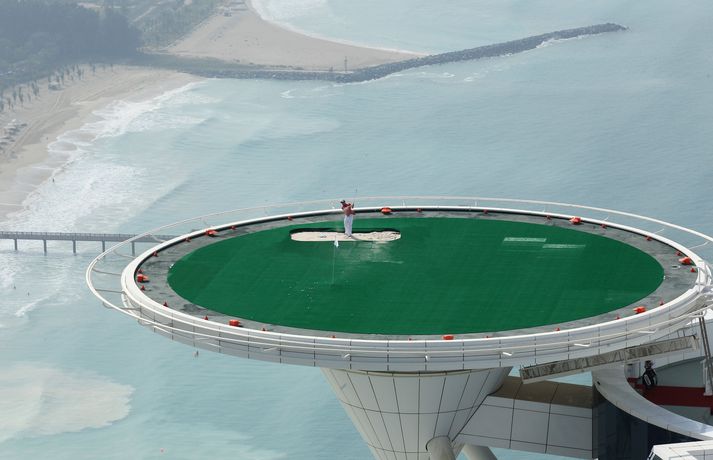 McIlroy spilar golf í hæstu hæðum - myndir 21. desember 2011 17:30 Nordic Photos/Getty Images Hinn 22 ára gamli Norður-Íri, Rory McIlroy, hefur átt frábært ár innan sem utan vallar. Hann var sigursæll á vellinum og nældi sér í kærustu sem er besta tenniskona heims. Kappinn fagnaði góðu ári með því að spila golf upp á hinum fræga þyrlupalli á "Seglinu" svokallaða í Dúbaí. Sett var upp aðstaða fyrir McIlroy til þess að spila golf á hótelinu glæsilega og myndirnar sem fylgja eru stórbrotnar. Þær má sjá í albúminu hér að neðan. Golf Mest lesið Haaland fór sem Jókerinn að versla bleyjur Enski boltinn Fullkomin þrenna kom Lampard úr sjöunda himni Enski boltinn Kóngarnir í Færeyjum: Töpuðu ekki leik allt tímabilið Fótbolti Tindastóll - Stjarnan 96-95 | Ótrúlegur endir á Króknum Körfubolti Blikar áfram með fullt hús stiga Körfubolti „Bara feginn að við fundum þó leið“ Körfubolti Jóladagskráin klár: Hefðin brotin og aðeins einn leikur annan í jólum Enski boltinn ÍR - Ármann 96-83 | Nýliðarnir enn í leit að fyrsta sigrinum Körfubolti Grafalvarleg staða: „Þurfum að fara í sársaukafullar aðgerðir“ Handbolti Sandra hélt áfram að fagna eftir landsleikina Fótbolti Fleiri fréttir Gunnlaugur Árni í níunda sæti á heimslista Barnabarn Donalds Trump keppir á LPGA-mótaröðinni Mun líklegast aldrei komast yfir þetta Jack Nicklaus fær sex milljarða í meiðyrðamáli Íslenski Tígurinn vann æsispennandi mót í Mississippi Uppfyllti óskina og fékk soninn í fangið á átjándu Rory McIlroy vill verða fyrirliði Ryder-liðs Evrópu Tiger Woods í enn eina bakaðgerðina Segir að stuðningsmenn Bandaríkjanna hafi farið yfir strikið Sló golfhögg með krókódíl rétt fyrir aftan sig „Heimskulegt og asnalegt hjá mér“ Sjá meira