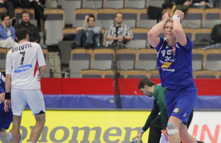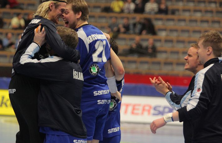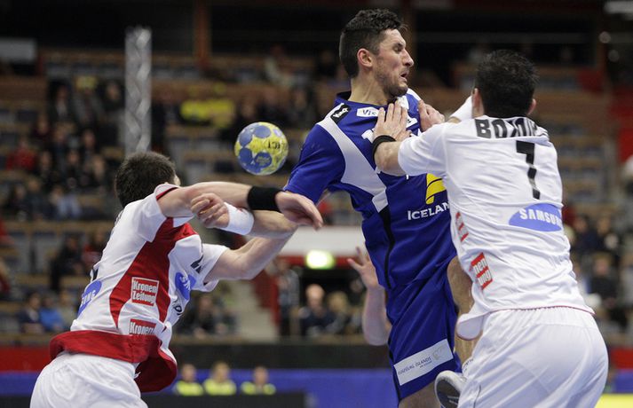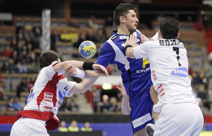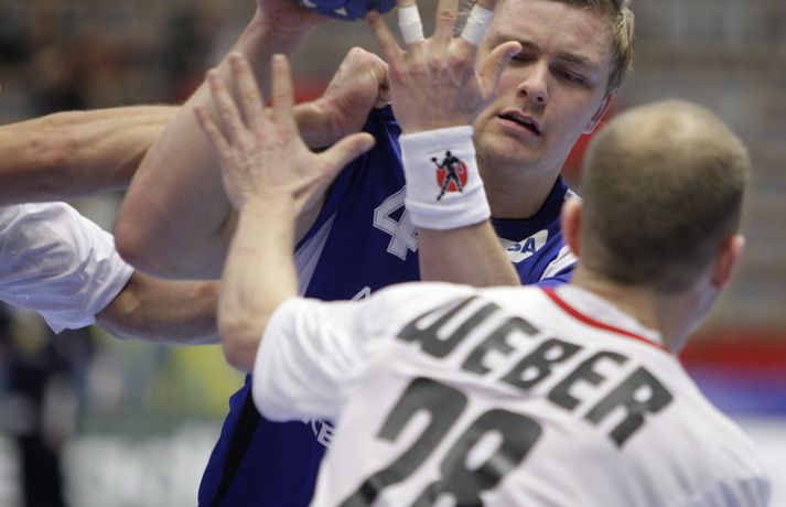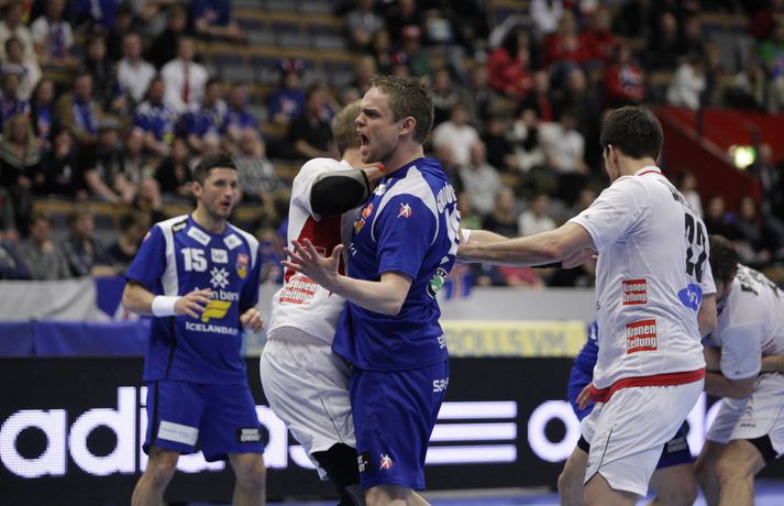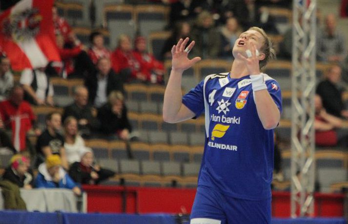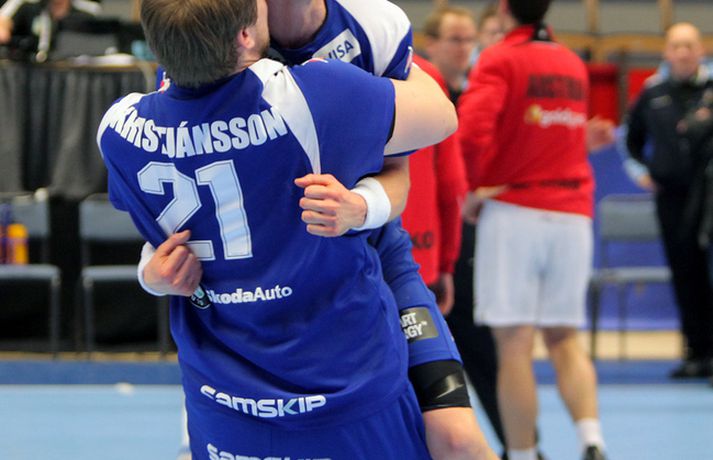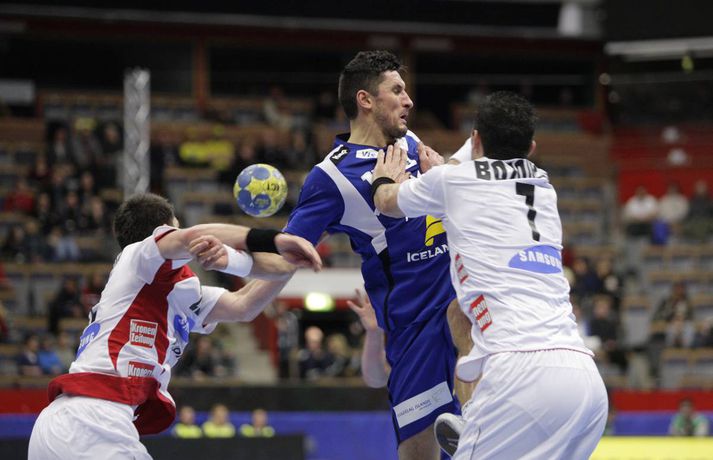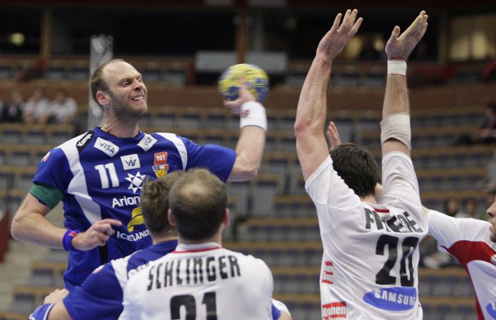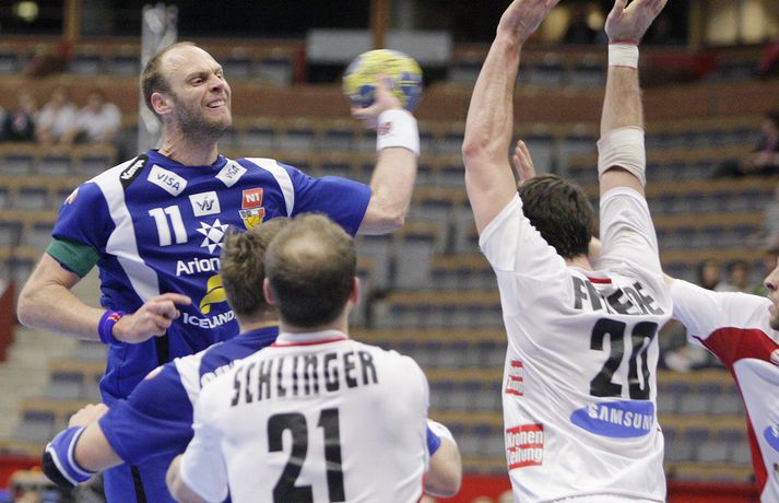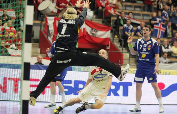 Strákarnir okkar sýndu úr hverju þeir eru gerðir í þriggja marka sigri á Austurríki á HM í handbolta í Svíþjóð í gærkvöldi. Eftir dapran fyrri hálfleik mættu strákarnir í ham inn í þann seinni, unnu sig í gegnum mikið mótlæti og hreinlega lokuðu öllum leiðum fyrir austurríska liðið. Austurríki skoraði ekki fyrstu tólf mínútur seinni hálfleiks og á meðan breytti íslenska liðið stöðunni úr 16-11 fyrir Austurríki í 17-16 fyrir Ísland. Ísland vann seinni hálfleikinn síðan 15-7 og er því áfram með fullt hús í riðlinum. Íslensku strákarnir eru illviðráðanlegir þegar vörnin smellur saman og það sáum við svo sannarlega í þessum frábæra karaktersigri í gærkvöldi. Með þessum sigri tryggði íslenska liðið sér sæti í milliriðlinum. Valgarður Gíslason, ljósmyndari Fréttablaðsins og Vísis, var á leiknum í Linköping gærkvöldi. Myndirnar má sjá í albúminu hér að neðan. Hægt er að sjá myndirnar stærri með því að smella á þær.Mynd/Valli