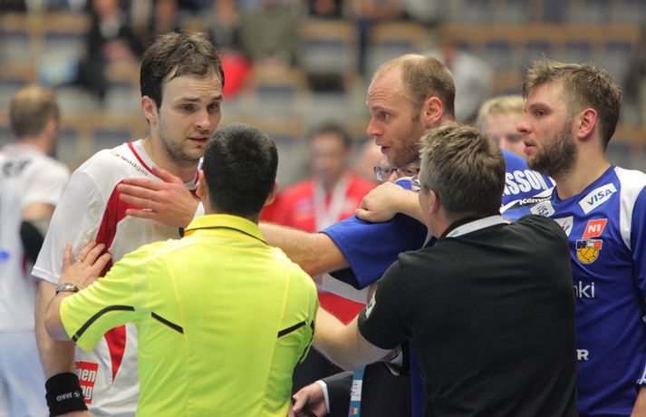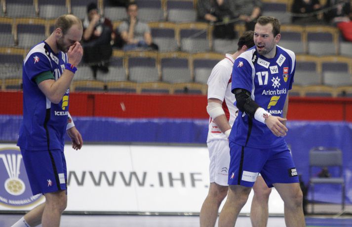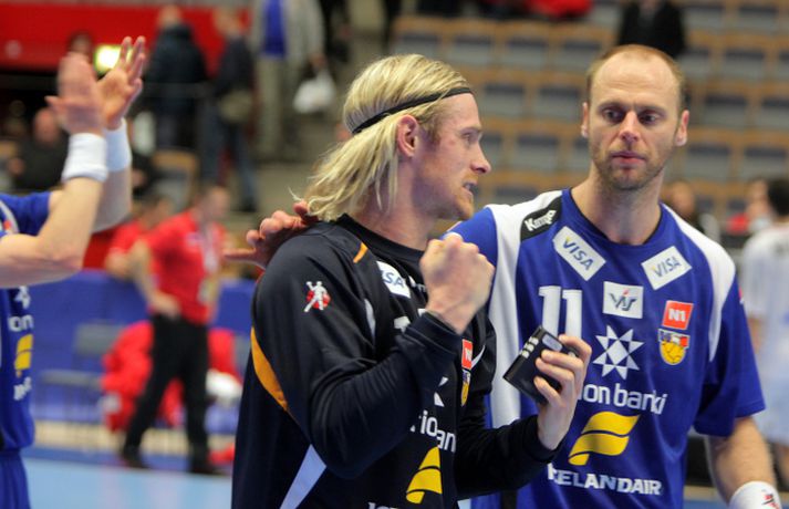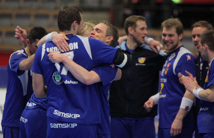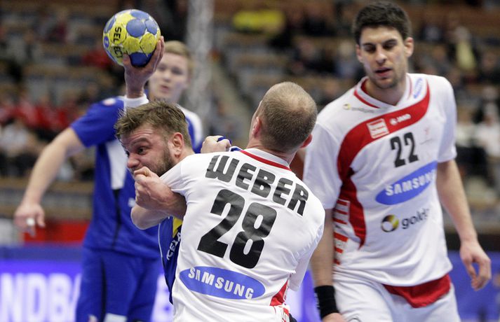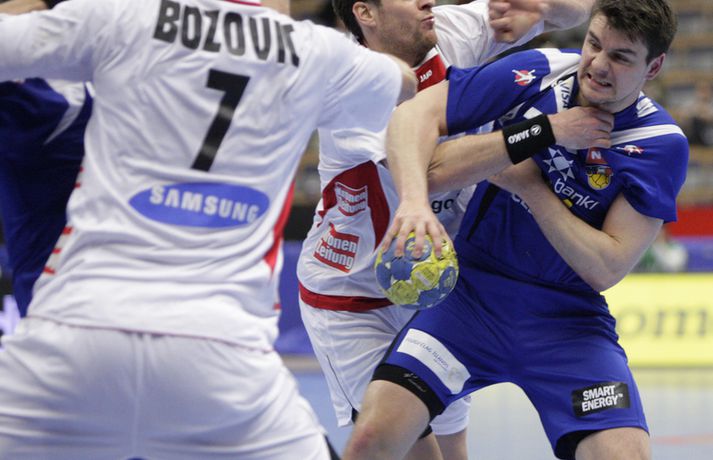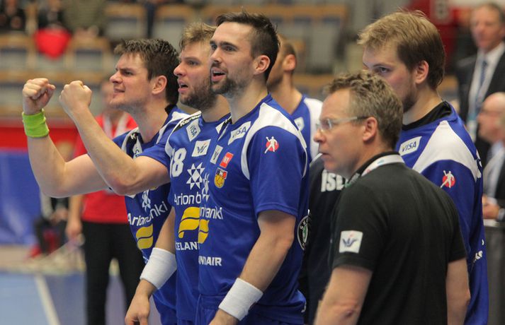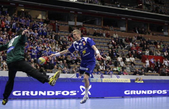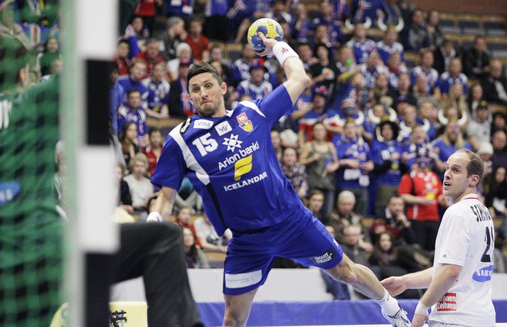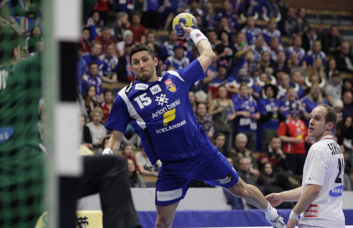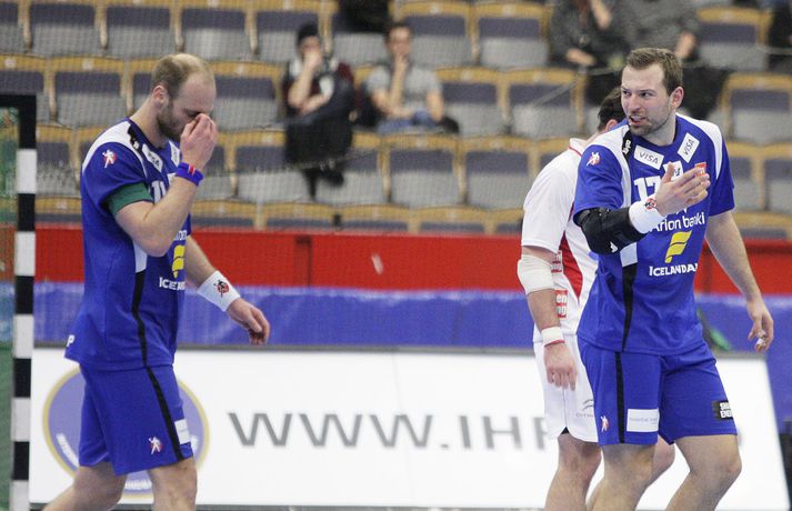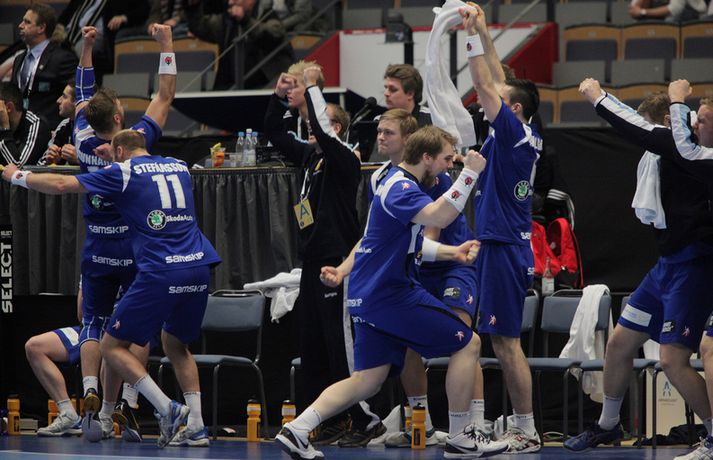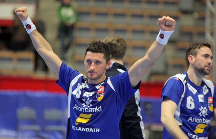 Strákarnir okkar sýndu úr hverju þeir eru gerðir í þriggja marka sigri á Austurríki á HM í handbolta í Svíþjóð í gærkvöldi. Eftir dapran fyrri hálfleik mættu strákarnir í ham inn í þann seinni, unnu sig í gegnum mikið mótlæti og hreinlega lokuðu öllum leiðum fyrir austurríska liðið. Austurríki skoraði ekki fyrstu tólf mínútur seinni hálfleiks og á meðan breytti íslenska liðið stöðunni úr 16-11 fyrir Austurríki í 17-16 fyrir Ísland. Ísland vann seinni hálfleikinn síðan 15-7 og er því áfram með fullt hús í riðlinum. Íslensku strákarnir eru illviðráðanlegir þegar vörnin smellur saman og það sáum við svo sannarlega í þessum frábæra karaktersigri í gærkvöldi. Með þessum sigri tryggði íslenska liðið sér sæti í milliriðlinum. Valgarður Gíslason, ljósmyndari Fréttablaðsins og Vísis, var á leiknum í Linköping gærkvöldi. Myndirnar má sjá í albúminu hér að neðan. Hægt er að sjá myndirnar stærri með því að smella á þær.Mynd/Valli