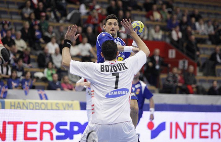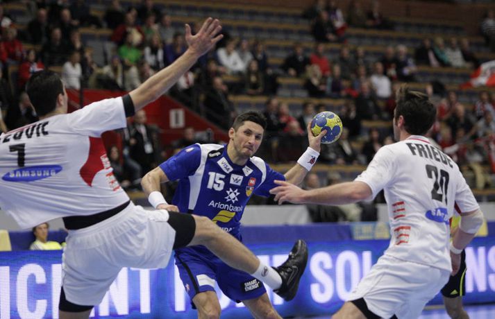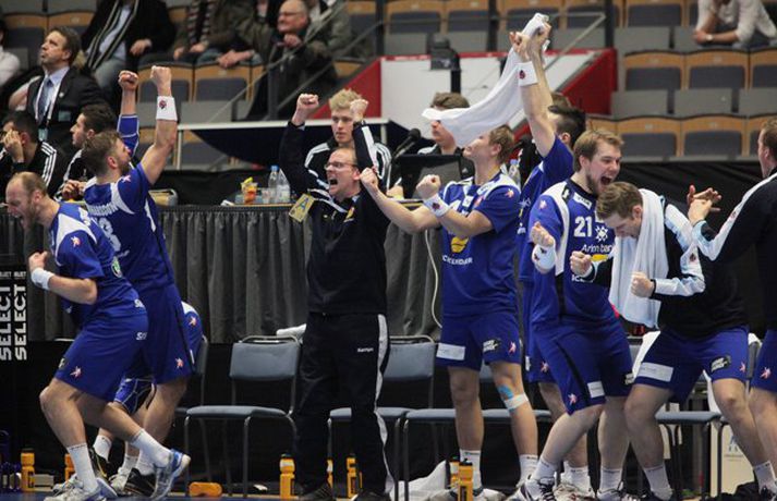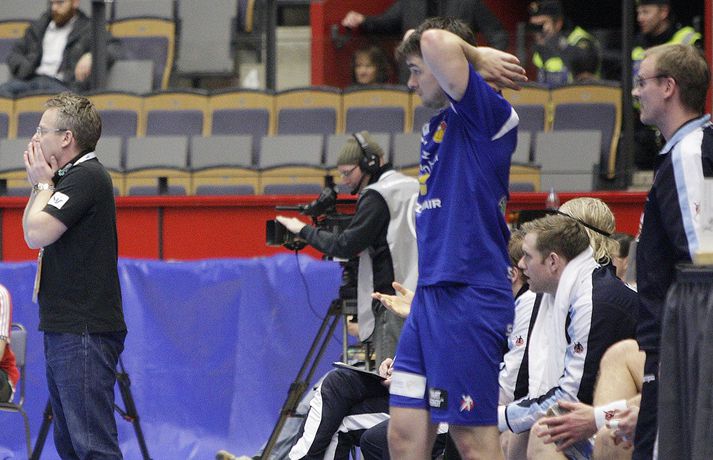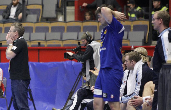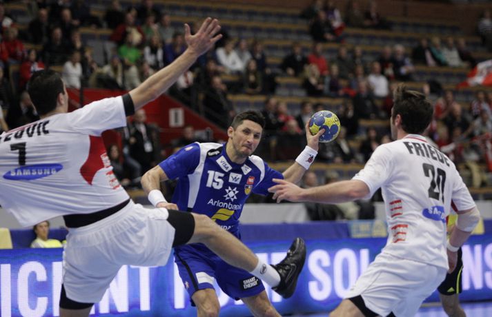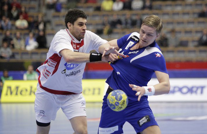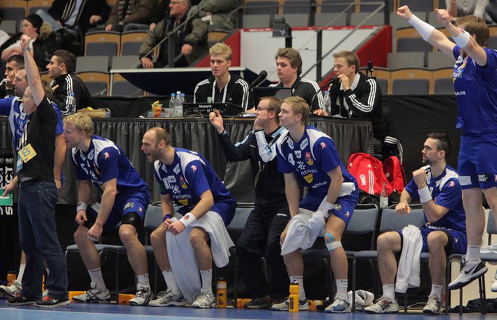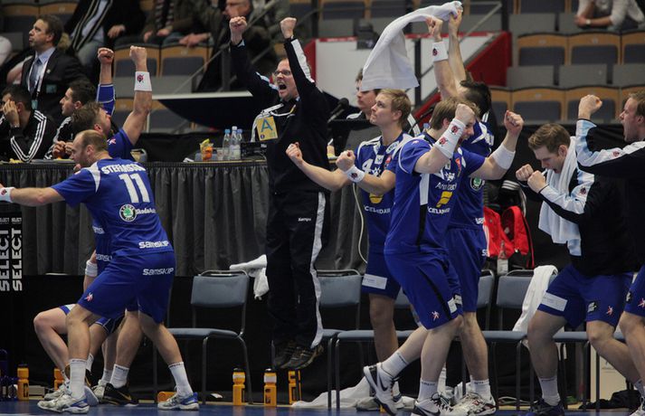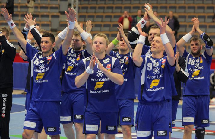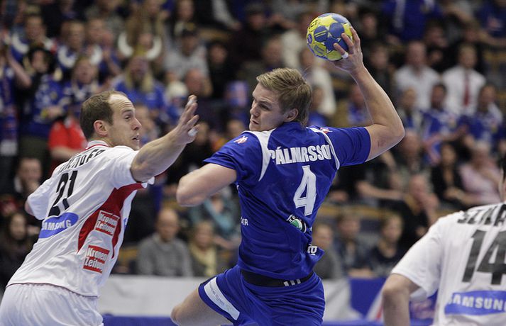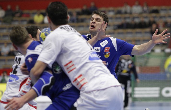Strákarnir okkar sýndu úr hverju þeir eru gerðir í þriggja marka sigri á Austurríki á HM í handbolta í Svíþjóð í gærkvöldi. Eftir dapran fyrri hálfleik mættu strákarnir í ham inn í þann seinni, unnu sig í gegnum mikið mótlæti og hreinlega lokuðu öllum leiðum fyrir austurríska liðið. Austurríki skoraði ekki fyrstu tólf mínútur seinni hálfleiks og á meðan breytti íslenska liðið stöðunni úr 16-11 fyrir Austurríki í 17-16 fyrir Ísland. Ísland vann seinni hálfleikinn síðan 15-7 og er því áfram með fullt hús í riðlinum. Íslensku strákarnir eru illviðráðanlegir þegar vörnin smellur saman og það sáum við svo sannarlega í þessum frábæra karaktersigri í gærkvöldi. Með þessum sigri tryggði íslenska liðið sér sæti í milliriðlinum. Valgarður Gíslason, ljósmyndari Fréttablaðsins og Vísis, var á leiknum í Linköping gærkvöldi. Myndirnar má sjá í albúminu hér að neðan. Hægt er að sjá myndirnar stærri með því að smella á þær.Mynd/Valli