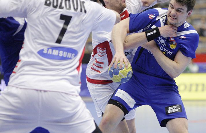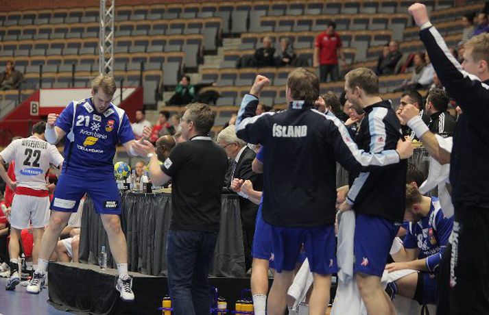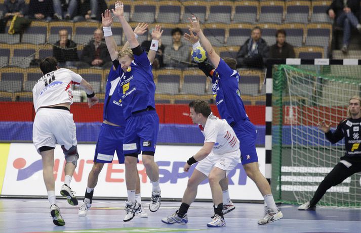 Frábær seinni hálfleikur kom okkur inn í milliriðilinn - myndir Óskar Ófeigur Jónsson skrifar 19. janúar 2011 11:00 Strákarnir okkar sýndu úr hverju þeir eru gerðir í þriggja marka sigri á Austurríki á HM í handbolta í Svíþjóð í gærkvöldi. Eftir dapran fyrri hálfleik mættu strákarnir í ham inn í þann seinni, unnu sig í gegnum mikið mótlæti og hreinlega lokuðu öllum leiðum fyrir austurríska liðið. Austurríki skoraði ekki fyrstu tólf mínútur seinni hálfleiks og á meðan breytti íslenska liðið stöðunni úr 16-11 fyrir Austurríki í 17-16 fyrir Ísland. Ísland vann seinni hálfleikinn síðan 15-7 og er því áfram með fullt hús í riðlinum. Íslensku strákarnir eru illviðráðanlegir þegar vörnin smellur saman og það sáum við svo sannarlega í þessum frábæra karaktersigri í gærkvöldi. Með þessum sigri tryggði íslenska liðið sér sæti í milliriðlinum. Valgarður Gíslason, ljósmyndari Fréttablaðsins og Vísis, var á leiknum í Linköping gærkvöldi. Myndirnar má sjá í albúminu hér að neðan. Hægt er að sjá myndirnar stærri með því að smella á þær.Mynd/Valli Scroll-HM2011 Skroll-Íþróttir Mest lesið Arsenal jafnaði rúmlega aldargamalt félagsmet Fótbolti Segir Amorim ekki geta gert kraftaverk Fótbolti Liverpool vann risaslaginn Fótbolti Jafnteflin ríkjandi í Meistaradeildinni í kvöld Fótbolti Keflavíkursigur í kaflaskiptum leik Körfubolti Uppgjörið: Njarðvík - Hamar/Þór 88-61 | Auðsóttur sigur Njarðvíkinga Körfubolti Sneypuför danskra til Lundúna Fótbolti Meistararnir lágu á heimavelli Fótbolti Lýsir eftir leiðtoga íslenska landsliðsins Handbolti Ísland lenti í algjörum martraðarriðli Fótbolti Fleiri fréttir Bikarmeistararnir fara norður Björgvin Páll hafi þaggað niður í efasemdaröddum Lýsir eftir leiðtoga íslenska landsliðsins Alfreð klæddist kvennatreyjunni á leiknum við Ísland Forðuðu sér frá bráðsmitandi óléttu í Fram Dönsk landsliðskona eignaðist barn tólf vikum fyrir tímann Uppgjörið: Þýskaland - Ísland 29-31 | Svöruðu skellinum með frábærum sigri Kærastan tók eftir því að eitthvað var að KA/Þór gerði jafntefli við botnliðið Valskonur unnu 24 marka sigur og ÍR upp í annað sætið „Fannst þetta verða svartara og svartara“ Alfreð hissa: Veit að Íslendingar geta mun betur Andri kallaður inn í hópinn fyrir meiddan Hauk Arnór Snær snýr aftur heim Besta handboltadeild heims missir aðalstyrktaraðila sinn Grafalvarleg staða: „Þurfum að fara í sársaukafullar aðgerðir“ ÍR áfram eftir sigur í Mosfellsbæ Uppgjörið: Þýskaland - Ísland 42-31 | Þrot í Þýskalandi Tilkynnti um óléttu og nýjan samning á sama tíma Patrekur hættur eftir dapurt gengi Stjörnunnar Rekinn fyrir ummæli sín um krabbameinssjúka handboltagoðsögn Janus Daði myndaður í heimsókn hjá Barcelona Epicbet sýni handboltann í leyfisleysi: „Enda ólöglegar síður“ Teitur inn í landsliðið Gísli bjó til meira en þriðjung markanna Haukur magnaður í sigri Löwen Blær skoraði þrjú og lagði upp jöfnunarmarkið KA/Þór sótti sigur gegn Fram og stigalausar Stjörnukonur Fram kjöldró HK og spenna í Eyjum Meistararnir unnu gegn ÍBV og ÍR hafði betur gegn Selfyssingum Sjá meira