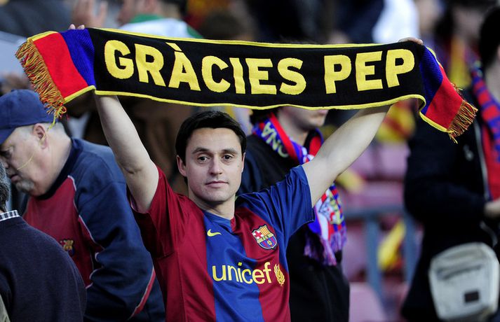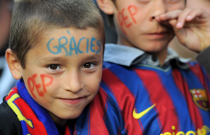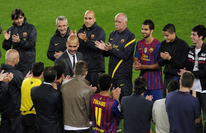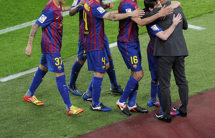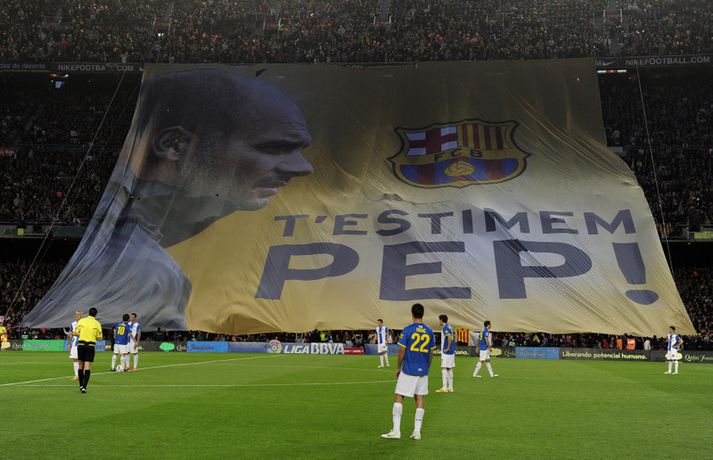 Guardiola: Ég elska leikmennina | Myndasyrpa frá kveðjuleiknum Eiríkur Stefán Ásgeirsson skrifar 6. maí 2012 13:30 Nordic Photos / AFP Pep Guardiola var kvaddur af stuðningsmönnum Barcelona í gær þegar hann stýrði sínum síðasta leik á Nou Camp áður en hann lætur af störfum sem stjóri liðsins í sumar. Barcelona vann þá 4-0 sigur á Espanyol og skoraði Lionel Messi öll mörk leiksins, þar af tvö af vítapunktinum. „Sviðsljósið hefur beinst að Lionel allt tímabilið og öfunda ég hann ekki af því," sagði Guardiola eftir leikinn í gær. „Ég vona að honum gangi áfram vel í framtíðinni. Ég hef reynt að hjálpa honum af fremsta megni og er engin spurning um að hann hefur hjálpað mér að bæta mig í mínu starfi," sagði hann. Eftir að Messi skoraði fjórða og síðasta markið sitt í leiknum hljóp hann að hliðarlínunni og faðmaði Guardiola. „Ég þakka honum fyrir það. Ég hef fundið fyrir mikilli væntumþykju frá leikmönnum þann tíma sem ég hef verið hér. Ég elska leikmennina mikið og það mun ekki breytast." Smelltu á myndalbúmið hér fyrir neðan til að sjá myndir frá kveðjuleik Guardiola. Spænski boltinn Mest lesið Arsenal jafnaði rúmlega aldargamalt félagsmet Fótbolti Segir Amorim ekki geta gert kraftaverk Fótbolti Liverpool vann risaslaginn Fótbolti Jafnteflin ríkjandi í Meistaradeildinni í kvöld Fótbolti Uppgjörið: Njarðvík - Hamar/Þór 88-61 | Auðsóttur sigur Njarðvíkinga Körfubolti Keflavíkursigur í kaflaskiptum leik Körfubolti Sneypuför danskra til Lundúna Fótbolti Dagskráin í dag: Meistaradeildin heldur áfram Sport Meistararnir lágu á heimavelli Fótbolti Lýsir eftir leiðtoga íslenska landsliðsins Handbolti Fleiri fréttir Þurfti að kaupa nýjan iPhone fyrir alla í liðinu Segir Amorim ekki geta gert kraftaverk Arsenal jafnaði rúmlega aldargamalt félagsmet Jafnteflin ríkjandi í Meistaradeildinni í kvöld Liverpool vann risaslaginn Meistararnir lágu á heimavelli Sneypuför danskra til Lundúna Natasha semur við nýliða Grindavíkur/Njarðvíkur Slavia Prag engin fyrirstaða fyrir Arsenal Ráku lærlinga sem fögnuðu marki í beinni Falla fleiri gleðitár hjá fjölskyldu Viktors í kvöld? David Beckham aðlaður: „Ég gæti ekki verið stoltari“ Fram líka fljótt að finna nýja ást Viðtal Kjartans við Carrick: „Þolinmæðin minni og dómharkan meiri í hverri viku“ Steini um martraðarriðilinn: „Ekki draumaandstæðingar“ Veggmynd af Alexander-Arnold skemmd: „Bless, rotta“ Ísland lenti í algjörum martraðarriðli Gyökeres ekki með Arsenal í Prag Þjálfaragoðsögn látin taka pokann sinn: „Ég er undrandi“ Þjálfari Alberts rekinn Of kalt til að Ísland geti mætt Noregi og Svíþjóð Sjáðu glæsilegan einleik Ndiayes og jöfnunarmarkið frá Xhaka „Í ástarsorg er gott að finna sér nýja ást sem fyrst“ Ronaldo kveðst vera betri en Messi: „Vil ekki vera hógvær“ Fannst Tottenham spila eins og fjórðu deildarlið gegn Chelsea Þjálfari sem mætti Víkingi í fyrra lést í miðjum leik Umboðsmaður hótaði leikmanni með byssu O'Neil tekur ekki við Úlfunum á ný Emilía opnaði markareikninginn gegn Ingibjörgu Fyrsti sigur í hús hjá Genoa Sjá meira