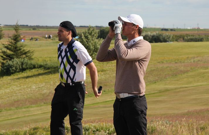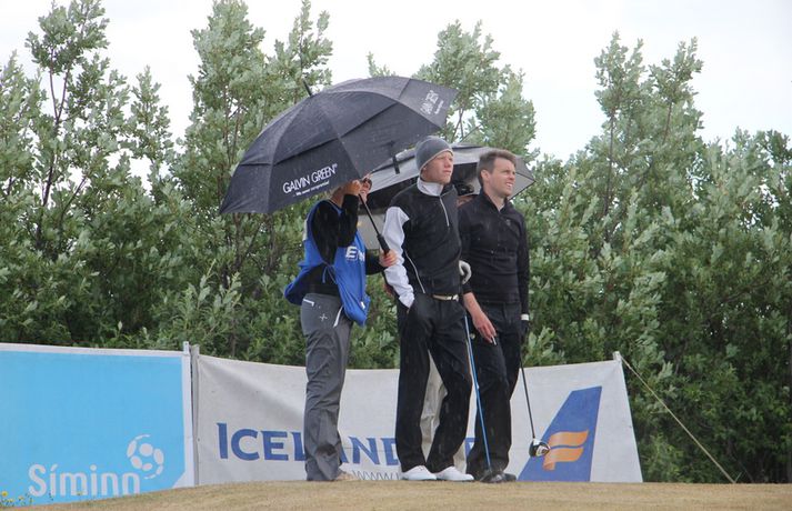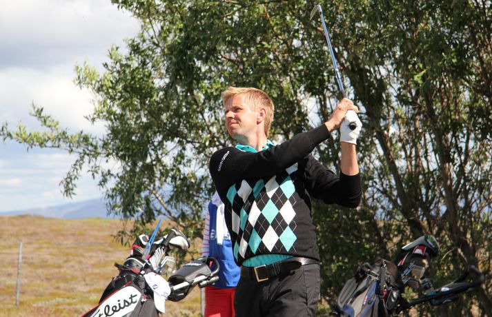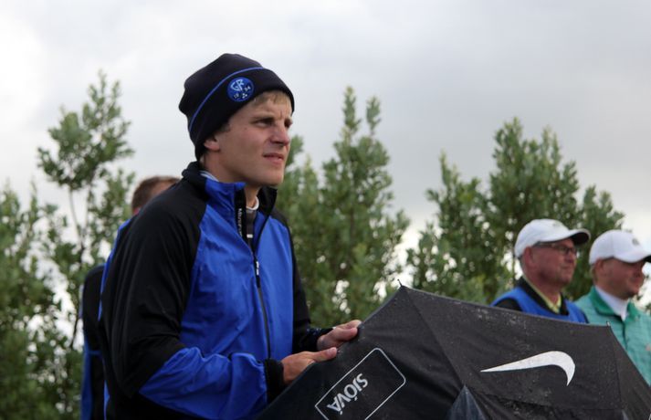 Rúnar: Það verður bara fimbulfamb í kvöld "Ég er sáttur og þetta gekk bara vel,“ sagði Keilismaðurinn Rúnar Arnórsson eftir að hann hafði leikið á 66 höggum á fyrsta keppnisdegi Íslandsmótsins í höggleik á Strandarvelli í dag. Rúnar er þegar þetta er skrifað á besta skori dagsins í karlaflokknum, fjórum höggum undir pari vallar. 26. júlí 2012 17:51