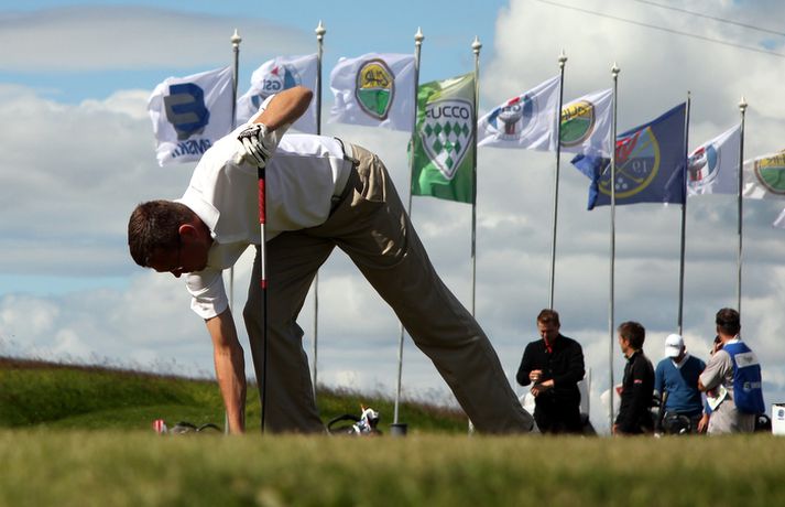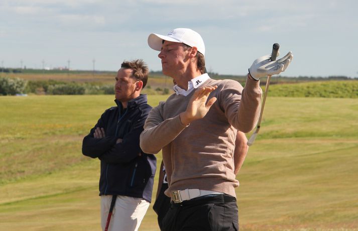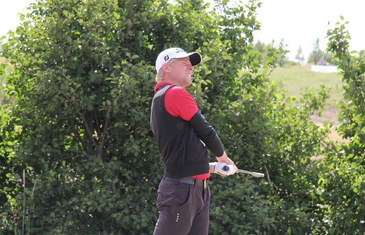Birgir Leifur: Alls ekki sáttur við hringinn Birgir Leifur Hafþórsson atvinnukylfingur úr GKG var alls ekki sáttur við fyrsta hringinn hjá sér á Íslandsmótinu í höggleik sem hófst í dag á Strandarvelli við Hellu. Birgir, sem er fjórfaldur Íslandsmeistari, lék á einu höggi undir pari vallar eða 69 höggum. Hann er sem eins og staðan er þessa stundina í 8. sæti, þremur höggum á eftir efsta manni. 26. júlí 2012 18:27