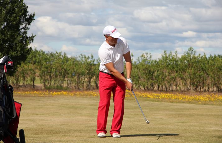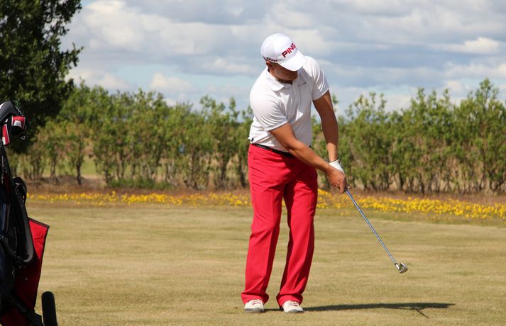 Haraldur Franklín: Öruggur og þægilegur hringur Haraldur Franklín Magnús úr Golfklúbbi Reykjavíkur lék vel á fyrsta keppnisdegi Íslandsmótsins í höggleik á Strandarvelli á Hellu. Haraldur lék á 67 höggum eða 3 höggum undir pari vallar og er hann á næst besta skori dagsins þegar þetta er skrifað – ásamt Andra Má Óskarssyni úr GHR. 26. júlí 2012 18:12