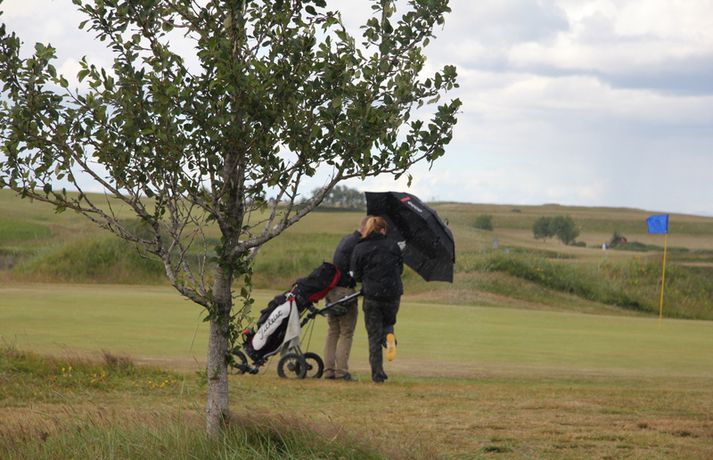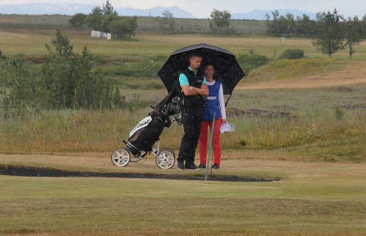 Keppni hafin að nýju á Strandarvelli | myndasyrpa 27. júlí 2012 08:45 Eygló Myrra Óskarsdóttir úr GO og Ingunn Gunnarsdóttir úr GKG. seth Annar keppnisdagur af alls fjórum fer fram í dag á Íslandsmótinu í höggleik á Eimskipsmótaröðinni en leikið er á Strandarvelli á Hellu. Rúnar Arnórsson úr Keili er með eitt högg í forskot í karlaflokknum en hann lék á 64 höggum í gær eða -4. Valdís Þóra Jónsdóttir úr Leyni er efst í kvennaflokknum en hún lék á 71 höggi eða +1. Keppni hófst að nýju kl. 7.30 í morgun og má búast við að síðustu kylfingarnir ljúki leik um kl. 21 í kvöld. Alls eru 123 karlar skráðir til leiks á mótinu en aðeins 72 efstu komast í gegnum niðurskurðinn og fá að þeir að leika tvo síðustu keppnisdagana. Í kvennaflokknum komast 18 efstu áfram á lokakeppnisdagana. Hér fyrir neðan má skoða myndasyrpu frá fyrsta keppnisdegi mótsins.sethseth Golf Tengdar fréttir Mikil spenna í kvennaflokknum á Hellu | Valdís í efsta sæti Valdís Þóra Jónsdóttir úr Golfklúbbnum Leyni er í efsta sæti í kvennaflokki að loknum fyrsta keppnisdegi á Íslandsmótinu í höggleik á Eimskipsmótaröðinni. Valdís Þóra lék Strandarvöll á Hellu á einu höggi yfir pari eða 71 höggi. Guðrún Pétursdóttir úr GR og Tinna Jóhnnsdóttir úr Keili eru báðar á 73 höggum eða 3 höggum yfir pari vallar. 26. júlí 2012 21:40 Tinna ætlar að fá nafn sitt að nýju á bikarinn Tinna Jóhannsdóttir úr Keili hefur sigrað einu sinni á Íslandsmótinu í höggleik og hún stefnir á að fá nafnið sitt ritað á ný á verðlaunagripinn að loknu mótinu Strandarvelli á Hellu. Tinna hefur ekki náð sér á strik á þessu tímabili en hún er þrátt fyrir það bjartsýn á góðan árangur á mótinu. 26. júlí 2012 09:45 Axel Bóasson: Hef undirbúið mig vel Axel Bóasson hefur titil að verja á Íslandsmótinu í höggleik sem hefst á morgun, fimmtudag, á Strandarvelli á Hellu. Axel, sem er 22 ára gamall, hampaði Íslandsmeistaratitlinum í fyrsta sinn á Hólmsvelli i Leiru í fyrra. 25. júlí 2012 19:00 Tvöfaldur Skolli: Hvernig er best að leika Strandarvöll? Íslandsmótið í höggleik í golfi fer fram á Strandarvelli á Hellu. Keppni hefst fimmtudaginn 26. júlí og eru allir bestu kylfingar landsins á meðal keppenda. Logi Bergmann og Þorsteinn Hallgrímsson fóru yfir það hvernig best er að leika Strandarvöll í þættinum Tvöfaldur Skolli sem sýndur er á Stöð 2 sport. 25. júlí 2012 16:43 Góð skor á fyrsta keppnisdegi á Hellu | Rúnar efstur Rúnar Arnórsson úr Golfklúbbnum Keili er efstur í karlaflokki að loknum fyrsta keppnisdegi á Íslandsmótinu í höggleik á Eimskipsmótaröðinni í golfi. Rúnar lék Strandarvöll á 4 höggum undir pari vallar eða 66 h0ggum. Höggi á eftir koma þeir Andri Már Óskarsson úr GHR og Haraldur Franklín Magnús úr GR en þeir léku báðir á 67 höggum. Skor kylfingar var gott í dag og léku alls 14 keppendur á pari vallar eða betur. 26. júlí 2012 19:58 Óskar, formaður GHR: Presturinn í klúbbnum samdi við veðurguðina Íslandsmótið í höggleik 2012 fer fram dagana 26.-29. júlí á Strandavelli og er í umsjá Golfklúbbs Hellu. Óskar Pálsson er formaður Golfklúbbs Hellu segir það vera mikla tilhlökkun meðal klúbbsmeðlima að fá að taka á móti öllum bestu kylfingum landsins. Sigurður Elvar Þórólfsson ræddi við hann á kynningarfundi fyrir mótið sem haldinn var í dag. 25. júlí 2012 14:30 Birgir Leifur: Alls ekki sáttur við hringinn Birgir Leifur Hafþórsson atvinnukylfingur úr GKG var alls ekki sáttur við fyrsta hringinn hjá sér á Íslandsmótinu í höggleik sem hófst í dag á Strandarvelli við Hellu. Birgir, sem er fjórfaldur Íslandsmeistari, lék á einu höggi undir pari vallar eða 69 höggum. Hann er sem eins og staðan er þessa stundina í 8. sæti, þremur höggum á eftir efsta manni. 26. júlí 2012 18:27 Birgir Leifur ætlar sér að verða sá sigursælasti frá upphafi Birgir Leifur Hafþórsson, atvinnukylfingur úr GKG, stefnir á að landa fimmta Íslandsmeistaratitlinum á Íslandsmótinu í höggleik sem hófst í morgun á Strandarvelli á Hellu. Bigir hefur fjórum sinnum fagnað sigri á þessu móti og síðast árið 2010. Birgir segir að hann hafi sett sér það markmið að bæta metið sem þeir Björgvin Þorsteinsson og Úlfar Jónsson eiga – en þeir sigruðu sex sinnum á Íslandsmótinu í höggleik á sínum tíma. 26. júlí 2012 09:30 Heimamaðurinn Andri Már í banastuði á Hellu Andri Már Óskarsson úr Golfklúbbi Hellu spilaði fyrsta hringinn á Íslandsmótinu í höggleik á þremur höggum undir pari. 26. júlí 2012 14:43 Biðlisti fyrir Íslandsmótið í höggleik | mikill áhugi hjá kylfingum Mikill áhugi er hjá íslenskum afrekskylfingum á Íslandsmótinu í höggleik í golfi sem hefst á fimmtudaginn á Strandarvelli á Hellu. Biðlisti er í karlaflokknum en 12 kylfingar eru á þeim lista. Alls eru 123 karlar skráðir til leiks og 27 konur. 24. júlí 2012 10:30 Haraldur Franklín: Öruggur og þægilegur hringur Haraldur Franklín Magnús úr Golfklúbbi Reykjavíkur lék vel á fyrsta keppnisdegi Íslandsmótsins í höggleik á Strandarvelli á Hellu. Haraldur lék á 67 höggum eða 3 höggum undir pari vallar og er hann á næst besta skori dagsins þegar þetta er skrifað – ásamt Andra Má Óskarssyni úr GHR. 26. júlí 2012 18:12 Færri komust að en vildu Íslandsmótið í höggleik í golfi hefst á fimmtudaginn og fer mótið fram á Strandarvelli á Hellu að þessu sinni. Axel Bóasson úr Keili og Ólafía Þórunn Kristinsdóttir úr GR hafa titla að verja á mótinu. 25. júlí 2012 06:00 Stefán Már vill hampa þeim stóra | vinningsskorið langt undir pari Stefán Már Stefánsson úr Golfklúbbi Reykjavíkur var hársbreidd frá því að landa Íslandsmeistaratitl