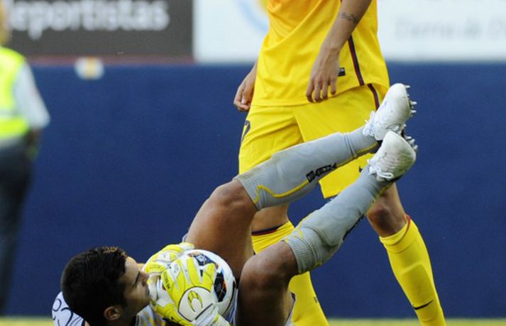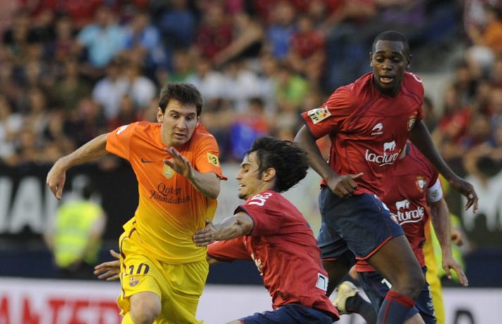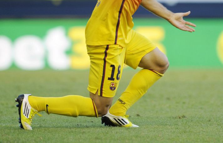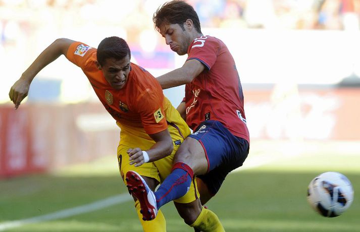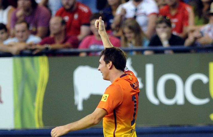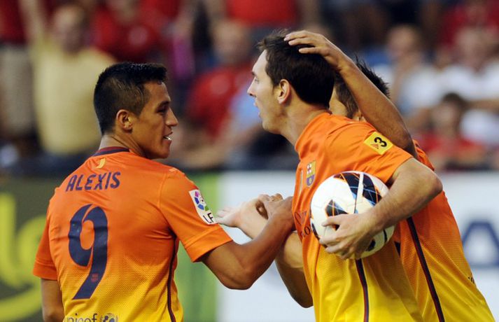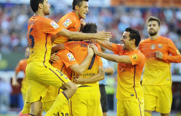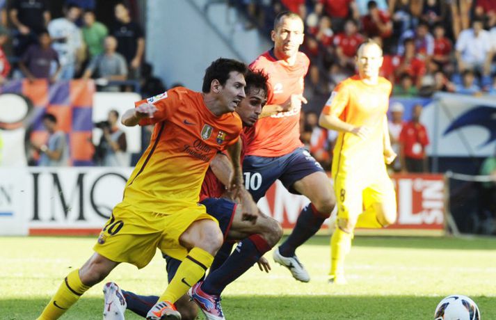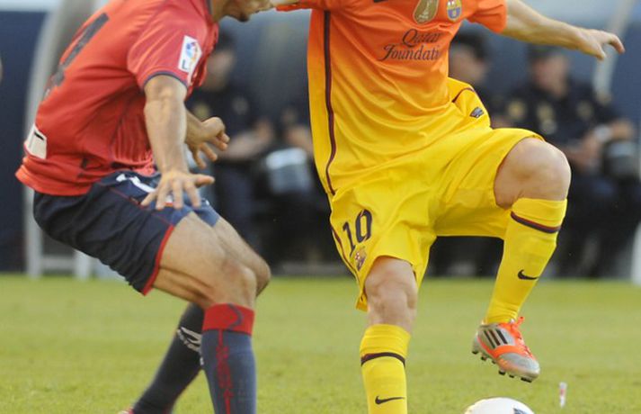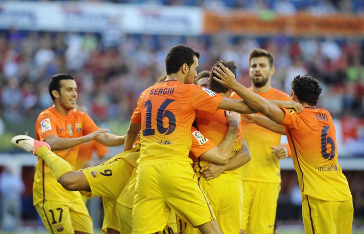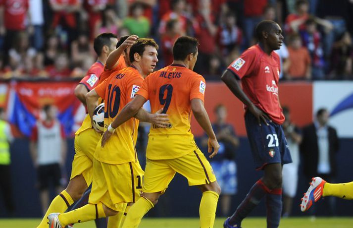 Barcelona situr á toppi efstu deildar spænska boltans að loknum tveimur umferðum. 2-1 útisigur á Osasuna féll þó í skuggann á varabúningi félagsins sem vígður var í leiknum. Varabúningurinn var kynntur síðastliðið vor og óhætt að segja að skiptar skoðanir séu um hann. Þó var farið fögrum orðum um búninginn á heimasíðu Börsunga. „Varabúningur Barcelona keppnistímabilið 2012-2013 sameinar appelsínugulann og gulan lit til heiðurs menningu, stíls og arkitektúrs borgarinnar. Á honum er sígildur appelsínugulur kragi en frægu liti Barcelona má finna aftan á treyjunni og á ermunum." Fróðir menn hafa haldið því fram að eigi litir búningsins að endurspegla menningu, listir, lífsstíl og arkitektúr borgarinnar þá hljóti Barcelona-borg hreinlega að vera alelda. Hér fyrir neðan má sjá myndasyrpu frá fyrsta deildarsigri Börsunga í nýja varabúningnum.