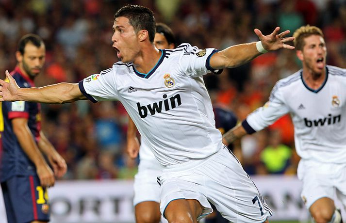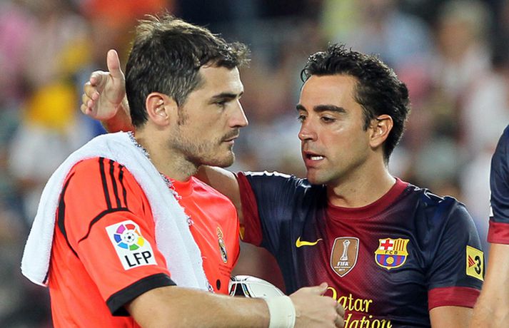 Fimm mörk í seinni hálfleik hjá Barca og Real - myndir Óskar Ófeigur Jónsson skrifar 23. ágúst 2012 23:20 Xavi fagnar hér í kvöld. Mynd/AFP Barcelona og Real Madrid buðu upp á stórkostlega skemmtun í seinni hálfleik í kvöld þegar liðin mættust í fyrri leik sínum í spænska ofurbikarnum á Nývangi í Barcelona. Staðan var 0-0 þar til á 55. mínútu þegar Cristiano Ronaldo kom Real Madrid yfir. Barcelona tók þá öll völd á vellinum og svaraði með þremur mörkum frá þeim Pedro, Lionel Messi og Xavi. Angel Di Maria náði að minnka muninn fimm mínútum fyrir leikslok en það mark gæti orðið dýrmætt fyrir seinni leikinn á Bernabeu enda nægir Real nú bara 1-0 eða 2-1 sigur til að vinna spænska ofurbikarinn. Ljósmyndarar AFP voru mættir á Nou Camp í kvöld og tóku margar flottar myndir. Vísir hefur tekið nokkrar góðar saman í myndasyrpu og myndirnar má sjá í albúminu hér að neðan. Hægt er að sjá myndirnar stærri með því að smella á þær. Spænski boltinn Mest lesið Kristófer Acox kallar sig glæpamann Körfubolti Littler kjörinn kynþokkafyllsti íþróttamaður heims Sport Þurfti að kaupa nýjan iPhone fyrir alla í liðinu Fótbolti Ógnaði leikmanni Tottenham með byssu út á götu Enski boltinn Arsenal jafnaði rúmlega aldargamalt félagsmet Fótbolti Segir Amorim ekki geta gert kraftaverk Fótbolti Liverpool vann risaslaginn Fótbolti Dagskráin í dag: Meistaradeildin heldur áfram Sport Jafnteflin ríkjandi í Meistaradeildinni í kvöld Fótbolti Sjáðu sigurmark Liverpool á móti Real Madrid og mörkin hjá Arsenal í Prag Fótbolti Fleiri fréttir Sjáðu sigurmark Liverpool á móti Real Madrid og mörkin hjá Arsenal í Prag „Við viljum koma Haukum á fótboltakortið“ Ógnaði leikmanni Tottenham með byssu út á götu Þurfti að kaupa nýjan iPhone fyrir alla í liðinu Segir Amorim ekki geta gert kraftaverk Arsenal jafnaði rúmlega aldargamalt félagsmet Jafnteflin ríkjandi í Meistaradeildinni í kvöld Liverpool vann risaslaginn Meistararnir lágu á heimavelli Sneypuför danskra til Lundúna Natasha semur við nýliða Grindavíkur/Njarðvíkur Slavia Prag engin fyrirstaða fyrir Arsenal Ráku lærlinga sem fögnuðu marki í beinni Falla fleiri gleðitár hjá fjölskyldu Viktors í kvöld? David Beckham aðlaður: „Ég gæti ekki verið stoltari“ Fram líka fljótt að finna nýja ást Viðtal Kjartans við Carrick: „Þolinmæðin minni og dómharkan meiri í hverri viku“ Steini um martraðarriðilinn: „Ekki draumaandstæðingar“ Veggmynd af Alexander-Arnold skemmd: „Bless, rotta“ Ísland lenti í algjörum martraðarriðli Gyökeres ekki með Arsenal í Prag Þjálfaragoðsögn látin taka pokann sinn: „Ég er undrandi“ Þjálfari Alberts rekinn Of kalt til að Ísland geti mætt Noregi og Svíþjóð Sjáðu glæsilegan einleik Ndiayes og jöfnunarmarkið frá Xhaka „Í ástarsorg er gott að finna sér nýja ást sem fyrst“ Ronaldo kveðst vera betri en Messi: „Vil ekki vera hógvær“ Fannst Tottenham spila eins og fjórðu deildarlið gegn Chelsea Þjálfari sem mætti Víkingi í fyrra lést í miðjum leik Umboðsmaður hótaði leikmanni með byssu Sjá meira
