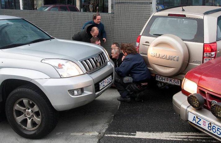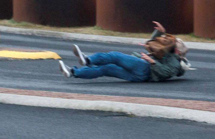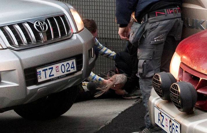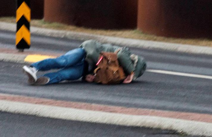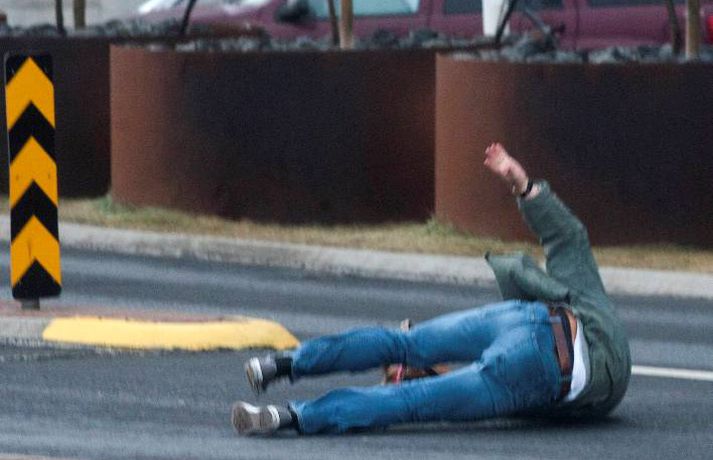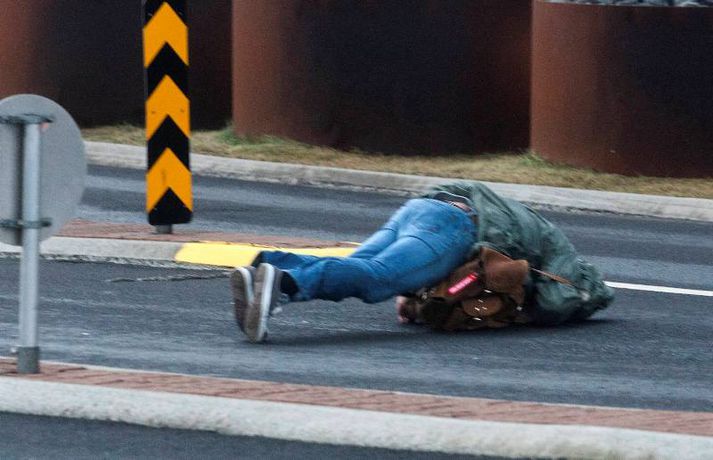 Magnaðar myndir: Fólk í stórhættu í ofsaveðri Valur Grettisson skrifar 2. nóvember 2012 11:53 Myndirnar tók Anton Brink. Vísir hvetur að sjálfsögðu fólk til þess að fara varlega í veðrinu. Ljósmyndari Fréttablaðsins, Anton Brink, fór á stúfana í morgun og náði þessum myndum af óveðrinu. Vindurinn er gríðarlegur við Höfðatorg og má þarna finna myndir af fólki sem rúllar hreinlega eftir götunni. Kona féll við og má sjá hugulsama vegfarendur koma henni til aðstoðar en þeir mynda meðal annars skjól með bifreiðum sínum eins og sjá má á myndunum. 100 björgunarsveitarmenn eru að störfum á höfuðborgarsvæðinu og er verið að kalla út fleiri. Þakplötur hafa fokið víða og aðrir lauslegir munir. Yfir fimmtán einstaklingar hafa leitað á slysadeild fyrir klukkan ellefu í morgun, samkvæmt upplýsingum frá slysadeild Landspítalans. Deildarstjóri á deildinni vill biðla til fólks að fara varlega í óveðrinu sem gengur nú yfir. „Þetta er fullorðið fólk sem fýkur bara og dettur. Við erum að rannsaka sjúklingana en það er grunur um beinbrot og hnjask. Við viljum vara fólk við að vera úti í þessu veðri, og ef það gerir það að fara mjög varlega," sagði Ragna Gústafsdóttir, deildarstjóri á slysadeildinni í viðtali við Vísi fyrr í morgun. „Það eru ekkert endilega hálkublettir, það er bara svo rosalega hvasst," bætti hún við að lokum. Veður Mest lesið „Því miður er verklagið þannig“ Innlent Reyndu að fá flugmann Maduros til að aðstoða við handtöku hans Erlent Ökumaður stöðvaður með snjófargan á framrúðunni Innlent Viðbrögð hjólreiðamannsins að einhverju leyti skiljanleg Innlent Andrés ekki lengur prins og látinn yfirgefa heimili sitt Erlent Fjárhagsstaðan alvarleg og tímabundin ráðning ráðgjafans ekki endurnýjuð Innlent Opnun Brákarborgar frestað enn á ný Innlent Öldungadeildin samþykkir að ógilda tollaákvarðanir Trump Erlent Fastur heima í þrjá daga út af engum mokstri Innlent Hvasst, hlýtt og von á asahláku eða glerhálku Veður Fleiri fréttir Ökumaður stöðvaður með snjófargan á framrúðunni „Því miður er verklagið þannig“ Opnun Brákarborgar frestað enn á ný Ögmundur Ísak ráðinn til þingflokks Sjálfstæðisflokksins Viðbrögð hjólreiðamannsins að einhverju leyti skiljanleg Fjárhagsstaðan alvarleg og tímabundin ráðning ráðgjafans ekki endurnýjuð Formannskosningu Pírata frestað Fastur heima í þrjá daga út af engum mokstri Þurfa mögulega að fresta formannskosningu vegna formgalla Flughálka í kortunum, breytingar hjá bönkunum og formaður Pírata Reyna að lokka íslenska lækna heim Óvenjulegir smáskjálftar reyndust sprengingar Ein hinna reknu segir konunum kastað fyrir ljónin Fylgjast með smáskjálftum við Bláa lónið Kirkjuþing skorar á stjórnvöld að hækka sóknargjald Ósammála ráðherra um að atkvæðajafnvægi sé mannréttindamál Ungir innflytjendur á Íslandi ekki jafn jaðarsettir og í Svíþjóð Leita til UNESCO vegna Vonarskarðs og kæra kynjahalla Aukin verðbólga áhyggjuefni og asahláka í kortunum Spyr hvort ökumenn myndu keyra á gangandi á götunni Séra Flosi Magnússon fallinn frá Að jafnaði tilkynnt um tólf kynferðisbrot í hverri viku Var ofurölvi þegar hann hljóp yfir Reykjanesbraut „Auðvitað slær þetta mig ekki vel“ Fundi slitið án árangurs og nýr ekki boðaður „Fyrstu þrjú árin sem ég var veik voru algjört helvíti“ Vill sjá byggingakrana í Úlfarsárdal á næsta ári Reikna með flughálum vegum Fagnar aðgerðum en telur húsnæðispakkann „fremur rýran“ Úrskurðarnefnd klofin en framkvæmdaleyfi stendur Sjá meira