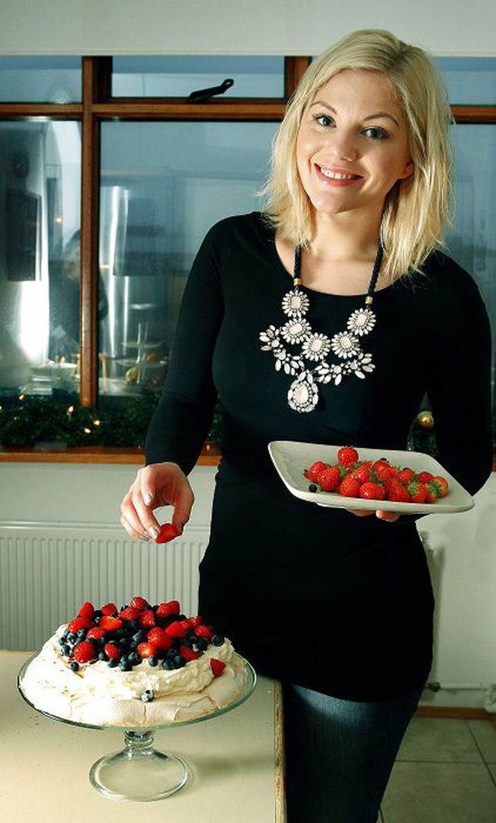 Eva Laufey Hermannsdóttir háskólanemi er ástríðukokkur og matgæðingur þótt enn sé hún ung að árum. Hún heldur úti matarbloggi sem yfir þrjú þúsund manns heimsækja á degi hverjum. Eva Laufey, sem er 23 ára, er alin upp á Akranesi þar sem hún gekk í skóla. Móðir hennar, Sigurrós Allansdóttir, er matreiðslumaður en fjölskyldan hefur búið í Alta, sem er nyrst í Noregi, undanfarin ár. "Ég er mömmustelpa og sakna mömmu en ég var nýlega í heimsókn hjá henni í Noregi," segir Eva Laufey, sem segist hafa smitast ung af mataráhuga móður sinnar. "Hún hvatti mig til að elda og baka þegar ég var krakki. Ekki vantaði mig áhugann. Matur var alltaf í hávegum hafður á heimilinu og mikið lagt upp úr matartímum. Á meðan við vorum að borða var iðulega rætt um hvað við ættum að hafa í matinn í næstu máltíð," segir hún glaðhlakkandi. Eva Laufey heldur úti vinsælu matarbloggi á netinu og þar má sjá ýmsar girnilegar uppskriftir og fallegar myndir af réttunum. Hún er í sambúð með Haraldi Haraldssyni sem stundar nám í viðskiptafræði, rétt eins og Eva Laufey, en foreldrar hans eru Ingibjörg Pálmadóttir, fyrrverandi heilbrigðisráðherra, og Haraldur Sturlaugsson framkvæmdastjóri. Faðir Evu Laufeyjar er hinn eini sanni Hemmi Gunn. Móðir Evu Laufeyjar og systkini koma heim um jólin og þá ætlar fjölskyldan að sameinast. "Ég hlakka mikið til að fá þau heim og við munum borða saman um jólin. Ég er ekki mikið fyrir reyktan mat, hamborgarhrygg og hangikjöt sem öðrum í fjölskyldunni líkar vel. Í staðinn hefur mér verið boðið upp á purusteik sem mér finnst mjög góð. Ég hef yfirleitt fengið að ráða hvað ég fæ að borða á jólunum, ein jólin fékk ég til dæmis kjúkling en önnur lambahrygg. Uppáhaldið mitt er jólasúpa mömmu sem hún gerir úr rósakáli. Hún er sérlega ljúffeng og ég get alveg borðað mig sadda af henni. Ég er sömuleiðis mikið fyrir eftirrétti og bakaði pavlovu sem ég ætla að gefa uppskrift að. Eva Laufey segist vera mest fyrir ítalskan mat en unnustinn sé frekar matvandur og vilji helst borða gamaldags mömmumat. "Ég er minna fyrir það að elda slíkan mat en ég hef mikla ánægju af að baka og geri mikið af því," segir Eva Laufey, sem skrifar fyrir Gestgjafann í frístundum. "Mér líður best í eldhúsinu og finn mig vel við eldamennskuna. Mér finnst til dæmis skemmtilegt að prófa mig áfram með nýjar útfærslur úr íslensku hráefni," segir Eva Laufey sem gefur lesendum hér uppskriftir sem henta vel á jólum en hún segist vera mikið jólabarn og skreyta gjarnan mikið fyrir jólin.Jólapurusteikin"Ég er ein á heimilinu sem fæ purusteik á aðfangadag, á meðan aðrir gæða sér á hamborgarhrygg nýt ég þess að borða mína purusteik. Það er einungis einu sinni á ári sem ég er með sérþarfir hvað varðar mat og það er á jólunum. Mér finnst best að borða purusteikina með einfaldri sósu, góðum kartöflum og grænmeti."Svínasíða ca. 2, 5 kgNegulnaglarLárviðarlaufSaltÞað er byrjað á því að skera í svínasíðuna og hún söltuð með grófu salti, helst Maldon-sjávarsalti. Negulnaglar og lárviðarlauf eru því næst sett í sárin. Setjið vel af vatni í ofnpott og setjið steikina ofan í pottinn. Purusteikin er soðin í ofnpotti, lárviðarlauf og negulnaglar eru settir í soðið. Hitið ofninn í 200°C og steikin sett inn í ofn í 45-50 mínútur. Því næst er kjötið tekið upp úr soðinu, sigtið soðið svo þið losnið við negulnagla og lárviðarlauf. Leyfið kjötinu að standa á meðan að ofninn hitnar upp í 240°C. Kjötið er að lokum sett inn í ofn í 25-30 mínútur eða þar til puran er almennilega poppuð.SoðsósaÞessi sósa er af einföldustu gerð en hentar afar vel með steikinni.Smjörbolla undirbúin í potti. 40 g af smjöri brædd og hveiti bætt út í þar til orðið að mjúkum leir, soðinu svo hellt varlega saman við og hrært stöðugt. Sósan verður fallega gljáandi. Bætið svo við 50 ml af rjóma og látið suðuna koma upp, þá á sósan að vera tilbúin.Jólapavlova6 eggjahvítur300 g sykur1 ½ tsk. mataredik1 tsk. vanilluextrakt eða -droparSalt á hnífsoddiÞeytið eggjahvítur með salti, bætið sykri saman við í þremur skömmtum og þeytið vel á milli. Bætið ediki og vanilludropum saman við þegar marensinn er orðinn stífur. Teiknið hring á bökunarpappír, u.þ.b. 24 cm í þvermál, og smyrjið marens á pappírinn. Bakið marensinn við 100° C í 90 mín. Slökkvið á ofninum, opnið hurðina og látið marensinn kólna í alla vega 3 klst. í ofninum. Að mínu mati er best að geyma marensinn yfir nótt í ofninum.Rjómakrem með Daim2-3 msk. flórsykurEitt stórt Daim-súkkulaðistykkiLéttþeytið rjóma og bætið flórsykri út í á meðan þeytt er. Saxið súkkulaðistykkið ansi smátt, blandið súkkulaði varlega saman við rjómann með sleif. Setjið rjómakremið á tertuna og skreytið kökuna með alls kyns berjum og myntulaufum. Sigtið smávegis af flórsykri yfir kökuna að lokum.Eva Laufey Hermannsdóttir...