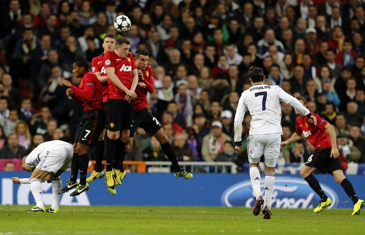 Ronaldo var í búningsklefa United eftir leikinn Óskar Ófeigur Jónsson skrifar 14. febrúar 2013 14:15 Cristiano Ronaldo. Mynd/Nordic Photos/Getty Cristiano Ronaldo skoraði frábært skallamark á móti sínum gömlu félögum í gær þegar Real Madrid og Manchester United gerðu 1-1 jafntefli í fyrri leik sínum í sextán liða úrslitum Meistaradeildarinnar. Eftir leikinn fór vel á með Ronaldo og gömlu liðsfélögum hans í Manchester United og svo vel að Portúgalinn snjalli settist inn í búningsklefa United eftir leikinn og ræddi málin. „Cristiano átti frábær ár með okkur. Ég er búinn að tala við hann. Hann situr núna inn í búningsklefanum okkar og er að tala við strákana," sagði Sir Alex Ferguson, knattspyrnustjóri Manchester United á blaðamannafundi eftir leikinn. „Ég er stoltur af því að sjá það hvað hann hefur blómstrað," sagði Ferguson og hrósaði Cristiano Ronaldo sérstaklega fyrir markið. „Ég held að það sé enginn annar leikmaður sem gæti stokkið svona hátt og náð líka svona föstum skalla. Lionel Messi gæti í það minnsta ekki gert það," sagði Ferguson. Meistaradeild Evrópu Spænski boltinn Mest lesið „Ísland í hópi með Norður-Kóreu og Íran“ Sport Alfreð klæddist kvennatreyjunni á leiknum við Ísland Handbolti Dönsk landsliðskona eignaðist barn tólf vikum fyrir tímann Handbolti Loksins þorði einhver í Kolbein sem stígur aftur inn í hringinn Sport Fanndís hefur ekkert heyrt frá Val og íhugar að hætta Íslenski boltinn „Búnt á skenkinn, Halli Egils á vegginn“ Sport Kærastan tók eftir því að eitthvað var að Handbolti Forðuðu sér frá bráðsmitandi óléttu í Fram Handbolti Segir allt tal um leiðinlegan fótbolta hjá Arsenal heimskulegt Enski boltinn Viðtökurnar á Anfield munu ekki breyta neinu Fótbolti Fleiri fréttir Segir Wirtz enn vera að venjast leikjaálaginu Spence og van de Ven báðust afsökunar Telja United mun líklegra til að enda í sjöunda en öðru sæti Rekinn eftir aðeins fimm mánuði í starfi Leitin heldur áfram og Lúðvík leysir af Fanndís hefur ekkert heyrt frá Val og íhugar að hætta Ósammála um Gyökeres: „Hefðirðu verið ánægður með fjögur mörk?“ Eigandi Forest býður fram aðstoð eftir stunguárásina Gæti tekið við Úlfunum ellefu mánuðum eftir að hafa verið rekinn frá þeim Sjáðu mörkin úr kærkomnum sigri West Ham og tvennu Haalands Van Dijk frábiður sér letilega gagnrýni Rooneys Segir allt tal um leiðinlegan fótbolta hjá Arsenal heimskulegt Guardiola segir að dómararnir hafi verið á móti City í áratug Viðtökurnar á Anfield munu ekki breyta neinu „Örugglega nokkrir Fantasy-þjálfarar ósáttir“ Lygilega jafnt á toppnum eftir sigur AC Milan „Haaland er þetta góður“ Spánarmeistararnir halda í við toppliðið „Það verður hundleiðinlegt að spila við Val“ Hermann tekinn við Val Viðar Ari lagði upp tvö í Íslendingaslag Daníel Leó hetjan í dramatískum sigri Ísak Bergmann og félagar nálgast Evrópusæti Annað tap spútnikliðsins kom í Manchester Loksins West Ham-sigur í London Kristian Nökkvi skoraði í Íslendingaslagnum Arna og Sædís nánast öruggar með silfrið Bölvun fylgir úrslitaleik Meistaradeildarinnar Hólmbert skoraði í Suður-Kóreu og stjórnaði sigursöngvum eftir leik Leggur til breytingar og vill að fótboltinn læri af handboltanum Sjá meira