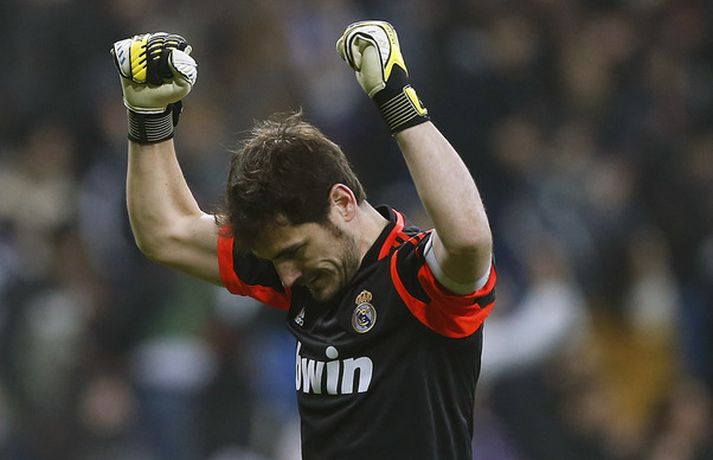 Casillas: Ég er farinn að geta hreyft fingurinn Óskar Ófeigur Jónsson skrifar 22. febrúar 2013 16:00 Iker Casillas. Mynd/Nordic Photos/Getty Iker Casillas, markvörður Real Madrid, segist vera á undan áætlun og að endurhæfing sín gangi mjög vel en spænski landsliðsmarkvörðurinn braut þumal í bikarleik á móti Valencia 23. janúar. Casillas fór í aðgerð og hefur þurft að horfa á leiki liðsins undanfarna 30 daga. „Það er mánuður í mig og þetta er farið að líta mjög vel út. Læknirinn minn býst við því að ég komist aftur inn á völlinn eftir fjórar vikur. Ég er farinn að æfa og get núna hreyft fingurinn," sagði Iker Casillas við blaðamenn á opnunarhátíð fyrir nýja verslun á Bernabéu-vellinum. Iker Casillas þarf að vinna sér sæti á nýju í liði Real Madrid þegar hann verður leikfær á ný því hann var orðinn varamarkvörður skömmu áður en hann meiddist. Real Madrid hefur síðan keypt markvörðinn Diego Lopez frá Sevilla. Iker Casillas er fyrirliði spænska landsliðsins og var fyrirliði Real Madrid þegar hann missti sætið sitt. Hann hefur verið aðalmarkvörður Real Madrid síðan að hann var 18 ára gamall (1999). Á næsta mánuði spilar Real Madrid tvo leiki við Barcelona (Í bikar eftir 4 daga og í deild eftir 8 daga) sem og seinni leikinn við Manchester United í sextán liða úrslitum Meistaradeildarinnar sem er eftir 11 daga. Casillas á enga möguleika á ná öllum þessum stórleikjum. Meistaradeild Evrópu Spænski boltinn Mest lesið Kærastan tók eftir því að eitthvað var að Handbolti Vara við því að „töfradrykkur“ Haaland geti valdið matareitrun Enski boltinn Uppgjörið: Þýskaland - Ísland 29-31 | Svöruðu skellinum með frábærum sigri Handbolti „Ísland í hópi með Norður-Kóreu og Íran“ Sport „Það verður hundleiðinlegt að spila við Val“ Íslenski boltinn Alfreð klæddist kvennatreyjunni á leiknum við Ísland Handbolti Dönsk landsliðskona eignaðist barn tólf vikum fyrir tímann Handbolti Harma rasíska og transfóbíska grein liðsfélaga Sveindísar Fótbolti Yfirburðir Sunderland dugðu ekki til sigurs Enski boltinn Loksins þorði einhver í Kolbein sem stígur aftur inn í hringinn Sport Fleiri fréttir Umboðsmaður hótaði leikmanni með byssu O'Neil tekur ekki við Úlfunum á ný Emilía opnaði markareikninginn gegn Ingibjörgu Fyrsti sigur í hús hjá Genoa Yfirburðir Sunderland dugðu ekki til sigurs Segir Wirtz enn vera að venjast leikjaálaginu Spence og van de Ven báðust afsökunar Telja United mun líklegra til að enda í sjöunda en öðru sæti Rekinn eftir aðeins fimm mánuði í starfi Leitin heldur áfram og Lúðvík leysir af Fanndís hefur ekkert heyrt frá Val og íhugar að hætta Ósammála um Gyökeres: „Hefðirðu verið ánægður með fjögur mörk?“ Eigandi Forest býður fram aðstoð eftir stunguárásina Gæti tekið við Úlfunum ellefu mánuðum eftir að hafa verið rekinn frá þeim Sjáðu mörkin úr kærkomnum sigri West Ham og tvennu Haalands Van Dijk frábiður sér letilega gagnrýni Rooneys Segir allt tal um leiðinlegan fótbolta hjá Arsenal heimskulegt Guardiola segir að dómararnir hafi verið á móti City í áratug Viðtökurnar á Anfield munu ekki breyta neinu „Örugglega nokkrir Fantasy-þjálfarar ósáttir“ Lygilega jafnt á toppnum eftir sigur AC Milan „Haaland er þetta góður“ Spánarmeistararnir halda í við toppliðið „Það verður hundleiðinlegt að spila við Val“ Hermann tekinn við Val Viðar Ari lagði upp tvö í Íslendingaslag Daníel Leó hetjan í dramatískum sigri Ísak Bergmann og félagar nálgast Evrópusæti Annað tap spútnikliðsins kom í Manchester Loksins West Ham-sigur í London Sjá meira