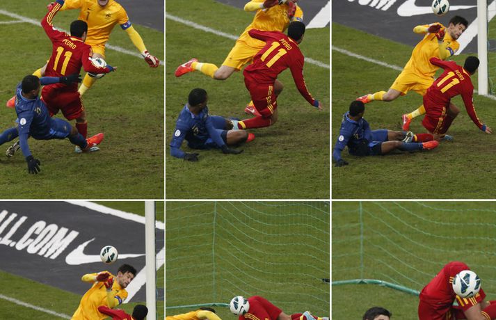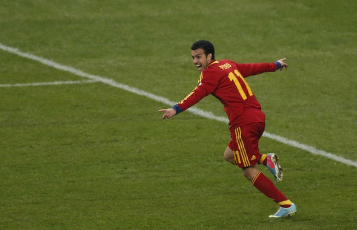 Pedro Rodriguez, leikmaður Barcelona og spænska landsliðsins, er markahæsti landsliðsmaðurinn á tímabilinu 2012-13 en þessi 25 ára leikmaður tryggði Spánverjum mikilvægan 1-0 sigur á Frökkum í gær með sínu tíunda landsliðsmarki á tímabilinu. Pedro hefur skorað þessi tíu mörk í aðeins átta leikjum og er með tveimur landsliðsmörkum meira en næsti maður á listanum sem er Brasilíumaðurinn Neymar. Zlatan Ibrahimovic er í 3. sæti með sex mörk fyrir Svía og Lionel Messi (Argentína) og Didier Drigba (Fílabeinsströndin) hafa báðir skorað fimm mörk. Það stefnir í sögulegan landsliðsvetur hjá Pedro Rodriguez því hann er nú aðeins fjórum mörkum frá því að jafn met þeirra Gerd Müller (Þýskaland 1971-72), Ronaldo (Brasilía 1996-97) og Patrick Kluivert (Holland 1999-2000) sem náðu allir að skora fjórtán landsliðsmörk á einu tímabili. David Villa á spænska metið en hann skoraði þrettán landsliðsmörk í fjórtán landsleikjum tímabilið 2008 til 09. Villa skoraði síðan 11 mörk í 15 landsleikjum tímabilið eftir. Pedro Rodriguez fær nóg af leikjum til þess að skora fleiri mörk því spænska landsliðið spilar tvo vináttuleiki fyrir Álfubikarinn þar sem liðið spilar í það minnsta þrjá leiki þar af einn þeirra á móti Tahítí.Landsliðsmörk Pedro 2012-2013 5-0 sigur á Sádí-Aarbíu (7. september 2012) - 2 mörk 4-0 sigur á Hvíta-Rússlandi (12. október 2012) - 3 mörk 5-1 sigur á Panama (14. nóvember 2012) - 2 mörk 3-1 sigur á Úrúgvæ (6. febrúar 2013) - 2 mörk 1-0 sigur á Frakklandi (26. mars 2013) - 1 mark