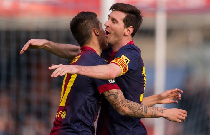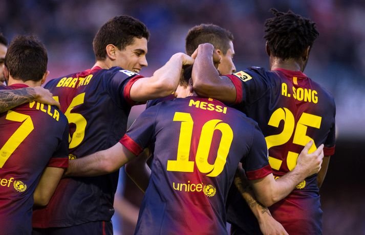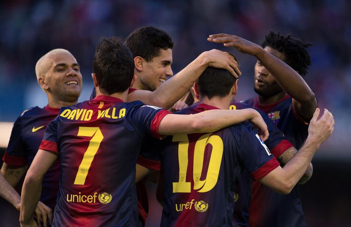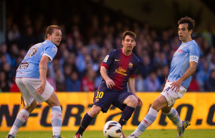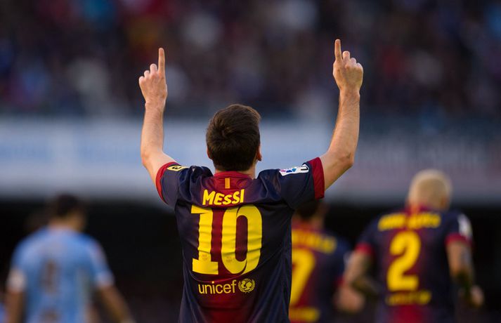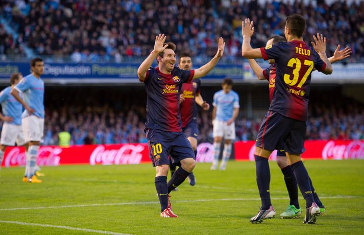 Lionel Messi heldur áfram að setja metin og metið hans í gær er án nokkurs vafa í hópi með þeim glæsilegustu. Messi varð þá fyrstur í sögunni til að fullkomna "Tour De Liga". Messi skoraði nefnilega í 19. deildarleiknum í röð og hefur þar með skorað á móti öllum liðum spænsku deildarinnar í einum rykk; samtals 29 mörk í 19 leikjum. Messi skoraði í gær seinna mark Barcelona í 2-2 jafntefli á móti Celta Vigo en Vigo-menn voru einmitt þeir síðustu til að halda hreinu á móti argentínska snillingnum þegar liðin mættust á Nou Camp 3. nóvember 2012. Síðan þá hefur Messi skoraði í öllum 19 deildarleikjum sínum og auk þess að skora 29 mörk þá hefur hann lagt upp átta til viðbótar fyrir félaga sína. Messi skoraði mörkin 29 á móti Osasuna (ferna), Zaragoza, Valencia, Athletic Bilbao, Betis, Atletico Madrid, Granada og Rayo Vallecano (tvö mörk) og Mallorca, Valladolid, Spanish, Malaga, Real Sociedad, Valencia, Getafe, Sevilla, Madrid, Deportivo og svo Celta Vigo. Cristiano Ronaldo var sá eini sem hafði tekist að skora á móti öllum liðum spænsku deildarinnar á einu tímabili en hann náði því ekki í einni röð eins og Messi."Tour De Liga" hjá Messi frá 11. nóv. 2012 til 30. mars 2013: 11.11.12 Mallorca-Barcelona 2-4 (2 mörk) 17.11.12 Barcelona-Real Saragozza 3-1 (2 mörk) 25.11.12 Levante-Barcelona 0-4 (2 mörk) 01.12.12 Barcelona-Athletic 5-1 (2 mörk) 09.12.12 Real Betis-Barcelona 1-2 (2 mörk) 16.12.12 Barcelona-Atlético Madrid 4-1 (2 mörk) 22.12.12 Real Valladolid-Barcelona 1-3 (1 mark) 06.01.13 Barcelona-Espanyol 4-0 (1 mark) 13.01.13 Malaga-Barcelona 1-3 (1 mark) 19.01.13 Real Sociedad-Barcelona 3-2 (1 mark) 27.01.13 Barcelona-Osasuna 5-1 (4 mörk) 03.02.13 Valencia-Barcelona 1-1 (1 mark) 10.02.13 Barcelona-Getafe 6-1 (1 mark) 16.02.13 Granada-Barcelona 1-2 (2 mörk) 23.02.13 Barcelona-Sevilla 2-1 (1 mark) 02.03.13 Real Madrid-Barcelona 2-1 (1 mark) 09.03.13 Barcelona-Dep. La Coruna 2-0 (1 mark) 17.03.13 Barcelona-Rayo Vallecano 3-1 (2 mörk) 30.03.13 Celta Vigo-Barcelona 2-2 (1 mark)Nordic Photos / Getty Images