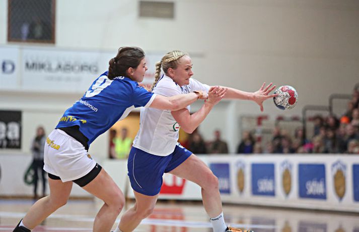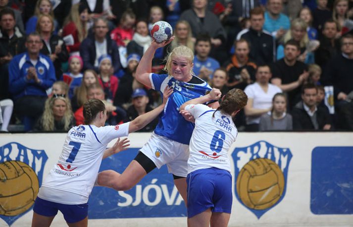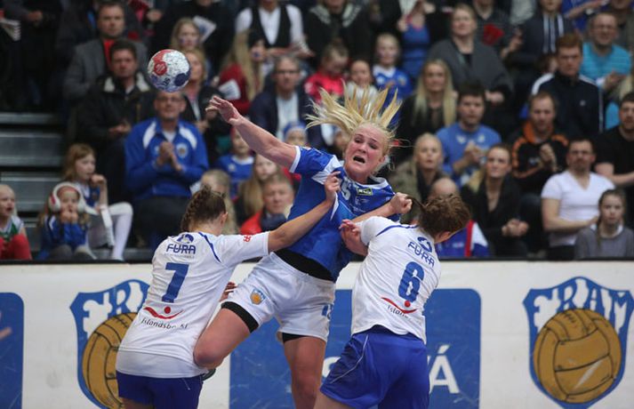 Umfjöllun, viðtöl og myndir: Fram - Stjarnan 19-21 | Úrslit N1-deildar kvenna Guðmundur Marinó Ingvarsson í Safamýri skrifar 1. maí 2013 12:39 mynd/daníel Stjarnan sigraði Fram öðru sinni í úrslitum N1 deildar kvenna, 21-19, og tók forystu í einvígi liðanna um Íslandsmeistaratitilinn öðru sinni. Frábær fyrri hálfleikur lagði grunninn að sigri Stjörnunnar en liðið lék frábæra vörn auk þess sem sóknarleikur liðsins gekk mjög vel fyrstu 30 mínútur leiksins. Leikurinn fór fjörlega af stað og var mikið skorað fyrstu mínútur leiksins sem var í járnum. Fram komst í 5-4 á 12. mínútu en þá skellti vörn Stjörnunnar í lás og Sunneva datt í stuð þar fyrir aftan. Fram skoraði aðeins þrjú mörk á 18 mínútum fram að hálfleik og var heppið að vera aðeins fimm mörkum undir 13-8. Fram lék frábæra vörn í seinni hálfleik. Stjarnan skoraði aðeins fjögur mörk fyrstu 23 mínútur seinni hálfleiks en var enn tveimur mörkum yfir 17-15 þar sem Fram gekk ekki mikið betur í sínum sóknarleik. Fram náði að minnka muninn í eitt mark þegar þrjár mínútur voru eftir 19-18 en þá skoraði Stjarnan tvö mörk í röð og gerði út um leikinn. Rakel Dögg Bragadóttir var frábær í fyrri hálfleik en ekkert gekk upp hjá henni eftir hlé. Hanna Guðrún Stefánsdóttir fór fyrir Stjörnunni og lék frábærlega í vörn sem sókn. Esther Viktoría Ragnarsdóttir steig upp á mikilvægum augnablikum í seinni hálfleik og á sama tíma og lítið gekk hjá leikreyndari leikmönnum liðsins. Sunneva Einarsdóttir var frábær í marki Stjörnunnar en markverðir Fram vörðu aðeins fimm skot í leiknum og mun liðið ekki vinna fleiri leiki í úrslitakeppninni með svoleiðis markvörslu. Stjarnan getur tryggt sér Íslandsmeistaratitilinn á föstudaginn á heimavelli sínum Mýrinni. Hanna: Hefð fyrir silfrinu í Safamýri„Við vorum staðráðnar í að bæta fyrir síðasta leik og svo erum við búnar að ræða það að það er komin hefð fyrir því í Framheimilinu að fá silfrið. Við ætlum ekki að breyta því í Safamýrinni,“ sagði Hanna Guðrún Stefánsdóttir eftir leikinn. „Í svona viðureign þýðir ekkert að vera þreyttur. Aðal málið er að hausinn sé rétt skrúfaður á. Hann var ekki alveg nógu fastur síðast en mér fannst við mæta vel til leiks í dag. „Okkur hefur gengið rosalega vel á útivelli, þar er eiginlega fáránlegt. Við höfum alveg unnið sigra á heimavelli og við ætlum að gera það næst. „Við þurfum að kíkja á sóknarleikinn. Við frusum aðeins og vorum ekki að leggja okkur 100% í öll skotin. Það vantaði upp á að klára skotin betur. „Þær bættu í og við gáfum aðeins eftir. Skotin okkar voru ekki nógu góð og mér fannst við kærulausar á kafla,“ sagði Hanna sem telur þreytu engu máli skipta í rimmu liðanna en Stjarnan keyrði upp hraðann í leiknum strax í upphafi á meðan Fram stillti rólega upp í hverja sókn. „Þær eru með flottan hóp og vel þjálfaðar stelpur. Þetta er hausinn og hvað ætlar þú þér. Ertu tilbúinn að berjast fyrir dollunni,“ sagði Hanna ákveðin og talar af reynslu. Halldór: Einhver meinloka í liðinu„Þetta horfið mjög skringilega við mér langan hluta af leiknum. Við vorum yfirspenntar. Samt komum við fínt inn í leikinn. Við gerum mistök varnarlega en sóknarleikurinn gengur fínt og við skorum fín mörk. Svo er eins og einhver hafi tekið snúruna úr sambandi,“ sagði Halldór Jóhann Sigfússon þjálfari Fram. „Við gefum alveg svakalega eftir og förum að hengja haus yfir öllu og það kann ekki góðri lukku að stýra. „Stemningin var Stjörnu megin eins og hún var okkar megin í síðasta leik. Það fylgir liðinu sem er í uppsveiflu. Við þurfum að rífa okkur upp úr því. Þegar það er þetta erfitt að skora þá verður þetta erfitt. „Þetta féll ekki með okkur. Við fáum engin hraðaupphlaup í seinni hálfleik og náum ekki að nýta okkur góðan varnarleik. Við hlaupum hlið við hlið og gefum ranga sendingu og á rangan mann í stað þess að vera rólegri á því. Við vorum rosalega æstar allan leikinn. „Við verðum að fókusa á næsta leik. Við erum upp við vegg og þurfum að vinna næsta leik til að fá úrslitaleikinn. Það er ekkert annað í boði en að mæta, hafa fulla baráttu og njóta þess að vera í úrslitum. Þetta má ekki vera þannig að liðið sé hrætt við eitthvað sem er ekki til staðar. „Við þurfum að spila betur en í dag og það er ekki sjálfgefið. Þær eru komnar á bragðið og með hörkulið og miklar reynslubolta í liðinu. Við getum ekki haldið að þetta verði auðvelt í næsta leik af því að við töpuðum í dag. Við þurfum að stilla okkur saman,“ sagði Halldór sem óttast að það sé of stórt skref fyrir Fram að landa gullinu eftir fjögur silfur í röð í N1 deildinni. „Það er ekkert annað fyrir okkur en að afsanna það. Við vildum vinna þennan leik en það gekk ekki upp og við vorum yfirspenntar. Það er einhver meinloka í liðinu gagnvart einhverjum svona hlutum. „Við þurfum að trúa því að þetta sé hægt og við verðum að reyna að ganga eins langt og við getum til að verða Íslandsmeistarar. Þetta er fimmta árið í röð sem við stöndum í þessum sporum og ég sé því ekkert til fyrirstöðu að við náum ekki að gera það í næstu tveimur leikjum en til þess að það gerist þurfum við að spila töluvert miklu betur en við gerðum í dag og það er ekki sjálfgefið,“ sagði Halldór að lokum. Olís-deild kvenna Mest lesið „Örugglega nokkrir Fantasy-þjálfarar ósáttir“ Enski boltinn „Haaland er þetta góður“ Enski boltinn „Það verður hundleiðinlegt að spila við Val“ Íslenski boltinn Kærastan tók eftir því að eitthvað var að Handbolti Viðt