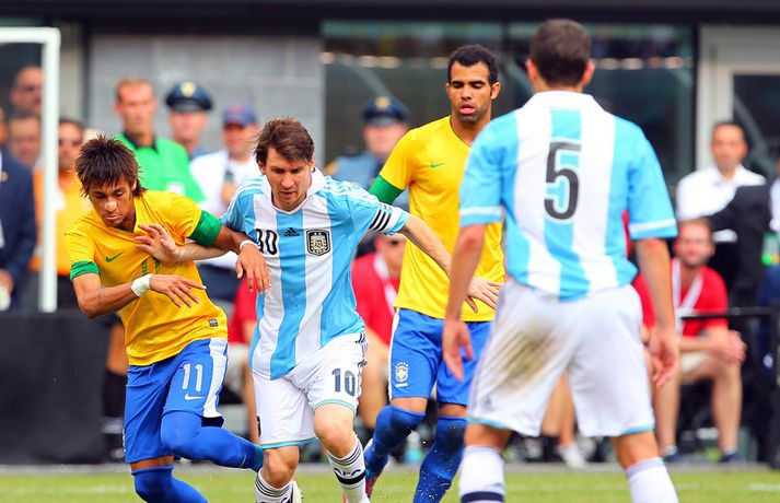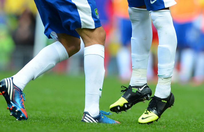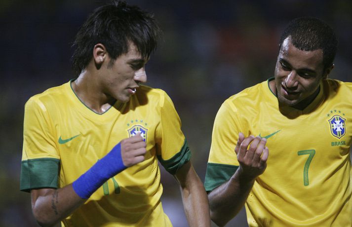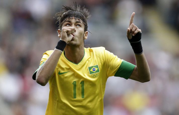 Það vildu örugglega margir knattspyrnumenn vera í sporum Brasilíumannsins Neymar sem fær nú tækifæri til að velja hvort hann spili með tveimur af stærstu knattspyrnufélögum heima, Barcelona eða Real Madrid. Forráðamenn Santos tilkynntu í gær að félagið ætlaði að leyfa þessum 21 árs gamla framherja að fara í sumar en brasilíska félagið hefur þurft að verjast ásókn í þetta undrabarn undanfarin þrjú ár. „Í ljósi þess hvernig samningur leikmannsins er uppbyggður og þeirri staðreynd að félagið hefur fengið tilboð í leikmanninn þá höfum við ákveðið að selja hann í sumar," stóð í tilkynningu frá Santos. Neymar var líka kátur þegar hann snéri heim eftir fund um framtíð sína. „Ég er ánægður með áhuga beggja félaganna og ég er stoltur af því að þau vilji bæði fá mig. Nú er ég samt á leiðinni heim því mamma er að bíða eftir mér," sagði Neymar við brasilíska blaðið Gazeta Esportiva og vildi ekkert segja um hvort hann ætli að velja Barcelona eða Real Madrid.