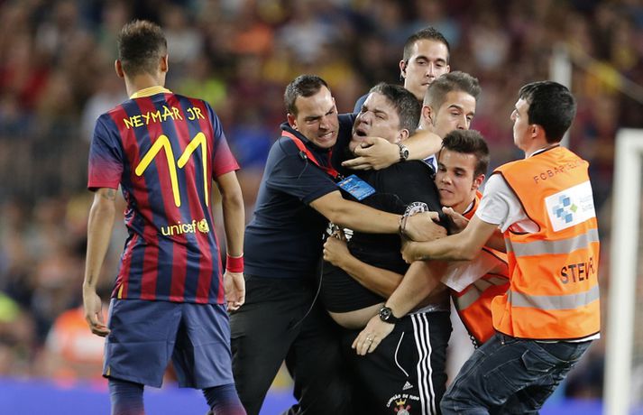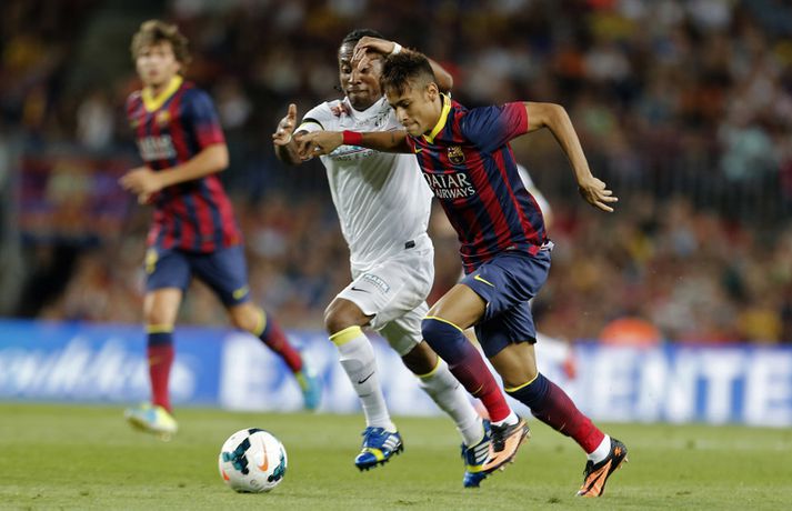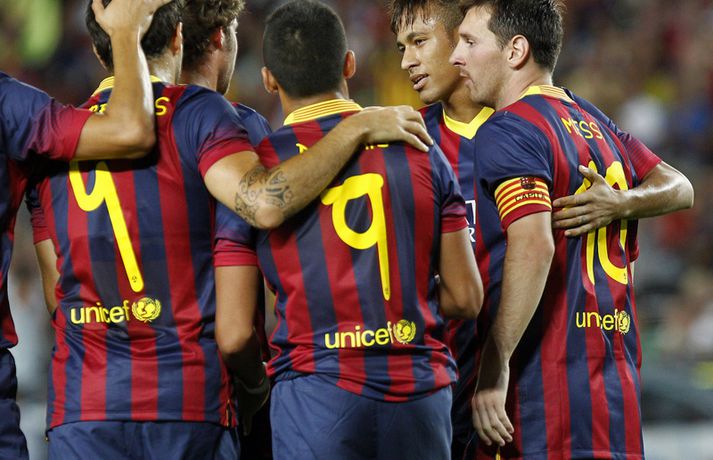 Barcelona fór illa með Santos í kvöld Óskar Ófeigur Jónsson skrifar 2. ágúst 2013 21:28 Mynd/AFP Barcelona tryggði sér sigur í hinum árlega leik um Joan Gamper bikarinn í kvöld með því rúlla yfir brasilíska félagið Santos á Camp Nou. Barcelona vann leikinn 8-0 en liðið keypti einmitt Neymar, stærstu stjörnu Santos, fyrr í sumar. Cesc Fàbregas skoraði tvö mörk eftir að hafa komið inn á sem varamaður og Neymar lagði upp sitt fyrsta mark fyrir Börsunga. Barcelona býður liði á Camp Nou á undirbúningstímabilinu á hverju ári til þess að spila einn leik um Joan Gamper bikarinn sem var nú afhentur í 48. sinn. Barcelona hefur nú unnið bikarinn 36 sinnum. Lionel Messi skoraði fyrsta markið á 7. mínútu og þremur mínútum síðar sendi leikmaður Santos boltann í eigið mark. Alexis Sánchez kom Barca síðan í 3-0 á 21. mínútu eftir sendingu frá Messi. Pedro skoraði fjórða markið á 28. mínútu eftir sendingu frá Jordi Alba og úrslitin voru fyrir löngu ráðin enda máttu Brassarnir sín lítils á móti gríðarlega sterku liði Barcelona. Cesc Fàbregas og Neymar komu báði inn á í hálfeik og Fàbregas skoraði fimmta markið á 53. mínútu. Messi var síðan tekinn af velli á 64. mínútu en það breytti litlu. Fàbregas skoraði sjötta markið fjórum mínútum síðar eftir sendingu frá Neymar. Adriano skoraði sjöunda markið á 75. mínútu og Jean Marie Dongou, sem kom inn á fyrir Messi, það áttunda á 84. mínútu eftir sendingu frá Fàbregas. Þannig urðu lokatölurnar. Spænski boltinn Mest lesið Kristófer Acox kallar sig glæpamann Körfubolti Svona var blaðamannafundur Arnars Fótbolti Rooney að kenna að Liverpool er komið á sigurbrautina á ný? Enski boltinn Arnar Gunnlaugsson las yfir vælandi fýlupúkum hjá Real Madrid Fótbolti Littler kjörinn kynþokkafyllsti íþróttamaður heims Sport Hópurinn fyrir lokaleikina: Hörður og Jóhann snúa aftur Fótbolti Mál Alberts truflar landsliðið ekki Fótbolti „Ég myndi ekki óska neinum þess að lenda í þessu“ Fótbolti Besta tenniskona heims tekur þátt í nýrri „Baráttu kynjanna“ Sport Fékk faðmlag frá konu Diogo Jota í miðju maraþoni Enski boltinn Fleiri fréttir Valdi Isak en ekki Gyökeres í fyrsta landsliðshópinn sinn Leiðir Breiðabliks og Damir skilja Mál Alberts truflar landsliðið ekki Stuðningsmenn Bröndby enn á ný í vandræðum Vonar að Jóhann og Hörður gefi jafn mikið af sér og Aron Orri Steinn lengra frá því að ná þessum leikjum en þeim í síðasta glugga Hópurinn fyrir lokaleikina: Hörður og Jóhann snúa aftur Svona var blaðamannafundur Arnars Rooney að kenna að Liverpool er komið á sigurbrautina á ný? Ánægð með að mæta Íslandi „Ég myndi ekki óska neinum þess að lenda í þessu“ Fékk faðmlag frá konu Diogo Jota í miðju maraþoni Arnar Gunnlaugsson las yfir vælandi fýlupúkum hjá Real Madrid Sjáðu sigurmark Liverpool á móti Real Madrid og mörkin hjá Arsenal í Prag „Við viljum koma Haukum á fótboltakortið“ Ógnaði leikmanni Tottenham með byssu út á götu Þurfti að kaupa nýjan iPhone fyrir alla í liðinu Segir Amorim ekki geta gert kraftaverk Arsenal jafnaði rúmlega aldargamalt félagsmet Jafnteflin ríkjandi í Meistaradeildinni í kvöld Liverpool vann risaslaginn Meistararnir lágu á heimavelli Sneypuför danskra til Lundúna Natasha semur við nýliða Grindavíkur/Njarðvíkur Slavia Prag engin fyrirstaða fyrir Arsenal Ráku lærlinga sem fögnuðu marki í beinni Falla fleiri gleðitár hjá fjölskyldu Viktors í kvöld? David Beckham aðlaður: „Ég gæti ekki verið stoltari“ Fram líka fljótt að finna nýja ást Viðtal Kjartans við Carrick: „Þolinmæðin minni og dómharkan meiri í hverri viku“ Sjá meira