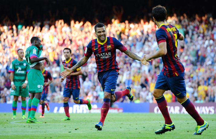 Barcelona skoraði sex mörk í fyrsta hálfleik tímabilsins Óskar Ófeigur Jónsson skrifar 18. ágúst 2013 16:30 Mynd/NordicPhotos/Getty Barcelona byrjar vel í spænsku úrvalsdeildinni í fótbolta en liðið vann 7-0 stórsigur á Levante í dag. Lionel Messi og Pedro skoruðu báðir tvö mörk og Cesc Fàbregas fékk tækifæri í byrjunarliðinu og lagði upp þrjú mörk. Barcelona-liðið fór á kostum í fyrri hálfleiknum og skoraði þá sex mörk. Þeir sýndu Levante miskunn eftir hlé og bættu þá bara við einu marki. Alexis Sánchez skoraði fyrsta markið á 3. mínútu eftir sendingu frá Cesc Fàbregas. Lionel Messi skoraði annað markið á 12. mínútu eftir sendingu frá Pedro, Dani Alves skoraði þriðja markið á 23. mínútu og á 26. mínútu launaði Messi greiðann og lagði upp fjórða markið fyrir Pedro. Lionel Messi skoraði fimmta markið úr vítaspyrnu á 42. mínútu og Xavi skoraði síðan sjötta markið á lokamínútu hálfleiksins eftir sendingu frá Cesc Fàbregas. Neymar kom inná fyrir Alexis Sánchez á 64. mínútu leiksins. Neymar og Lionel Messi fengu aðeins 26 mínútur saman því Messi var tekinn af velli á 71. mínútu. Cesc Fàbregas átti þriðju stoðsendingu sína í leiknum á 73. mínútu þegar Pedro kom Barcelona í 7-0. Spænski boltinn Mest lesið Kristófer Acox kallar sig glæpamann Körfubolti Svona var blaðamannafundur Arnars Fótbolti Rooney að kenna að Liverpool er komið á sigurbrautina á ný? Enski boltinn Arnar Gunnlaugsson las yfir vælandi fýlupúkum hjá Real Madrid Fótbolti Littler kjörinn kynþokkafyllsti íþróttamaður heims Sport Hópurinn fyrir lokaleikina: Hörður og Jóhann snúa aftur Fótbolti Mál Alberts truflar landsliðið ekki Fótbolti „Ég myndi ekki óska neinum þess að lenda í þessu“ Fótbolti Besta tenniskona heims tekur þátt í nýrri „Baráttu kynjanna“ Sport Fékk faðmlag frá konu Diogo Jota í miðju maraþoni Enski boltinn Fleiri fréttir Valdi Isak en ekki Gyökeres í fyrsta landsliðshópinn sinn Leiðir Breiðabliks og Damir skilja Mál Alberts truflar landsliðið ekki Stuðningsmenn Bröndby enn á ný í vandræðum Vonar að Jóhann og Hörður gefi jafn mikið af sér og Aron Orri Steinn lengra frá því að ná þessum leikjum en þeim í síðasta glugga Hópurinn fyrir lokaleikina: Hörður og Jóhann snúa aftur Svona var blaðamannafundur Arnars Rooney að kenna að Liverpool er komið á sigurbrautina á ný? Ánægð með að mæta Íslandi „Ég myndi ekki óska neinum þess að lenda í þessu“ Fékk faðmlag frá konu Diogo Jota í miðju maraþoni Arnar Gunnlaugsson las yfir vælandi fýlupúkum hjá Real Madrid Sjáðu sigurmark Liverpool á móti Real Madrid og mörkin hjá Arsenal í Prag „Við viljum koma Haukum á fótboltakortið“ Ógnaði leikmanni Tottenham með byssu út á götu Þurfti að kaupa nýjan iPhone fyrir alla í liðinu Segir Amorim ekki geta gert kraftaverk Arsenal jafnaði rúmlega aldargamalt félagsmet Jafnteflin ríkjandi í Meistaradeildinni í kvöld Liverpool vann risaslaginn Meistararnir lágu á heimavelli Sneypuför danskra til Lundúna Natasha semur við nýliða Grindavíkur/Njarðvíkur Slavia Prag engin fyrirstaða fyrir Arsenal Ráku lærlinga sem fögnuðu marki í beinni Falla fleiri gleðitár hjá fjölskyldu Viktors í kvöld? David Beckham aðlaður: „Ég gæti ekki verið stoltari“ Fram líka fljótt að finna nýja ást Viðtal Kjartans við Carrick: „Þolinmæðin minni og dómharkan meiri í hverri viku“ Sjá meira