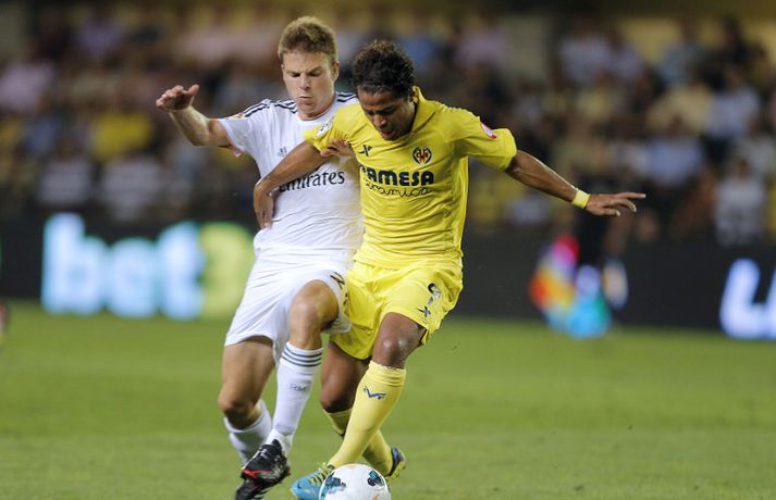 Gareth Bale opnaði markareikning sinn fyrir Real Madrid í 2-2 jafntefli á útivelli gegn Villarreal í kvöld. Lærisveinar Carlo Ancelotti hafa tíu stig eftir fjóra leiki. Dani Carvajal kom heimamönnum í Villarreal yfir um miðjan fyrri hálfleikinn áður en Walesverjinn jafnaði þegar hann fylgdi eftir af harðfylgi. Óskabyrjun hjá Bale sem hefur þó átt betri leiki. Heimamenn fengu ekki síðri færi í síðari hálfleiknum en Diego Lopez var í stuði á milli stanganna hjá gestunum. Cristiano Ronaldo kom Real yfir með ósnyrtilegu marki þegar skot hans hrökk af varnarmanni og lak í net heimamanna. Guli kafbáturinn gafst ekki upp og Giovani Dos Santos jafnaði metin tuttugu mínútum fyrir leikslok. Þá hafði Gareth Bale þegar yfirgefið völlinn en Walesverjinn er í lítilli leikæfingu.