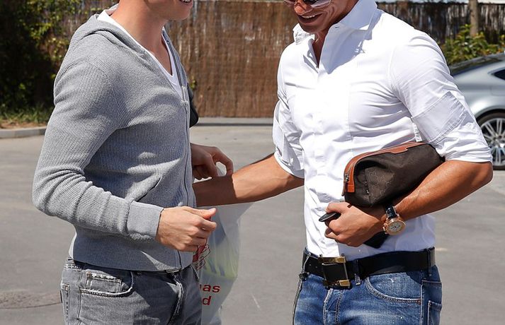 Dýrustu leikmenn heims náðu vel saman | Myndir 11. september 2013 17:45 Bale og Ronaldo voru eins og bestu vinir eru þeir hittust. Það var skemmtileg stund á bílastæði Real Madrid í morgun þegar tveir dýrustu leikmenn knattspyrnusögunnar hittust í fyrsta skipti hjá félaginu. Cristiano Ronaldo var dýrasti leikmaður heims er Real keypti hann frá Man. Utd. Það met var síðan slegið á dögunum er Real greiddi Tottenham 16 milljarða króna fyrir Gareth Bale. Það fór vel á með þeim félögum en heimurinn bíður spenntur eftir því að sjá þá spila saman. Það gerist líklega um næstu helgi er Real Madrid spilar gegn Villarreal. Bæði Marcelo og Fabio Coentrao meiddust í landsleikjum og því gæti vel farið svo að Bale spili sinn fyrsta leik í bakvarðarstöðu. Spænski boltinn Mest lesið Kristófer Acox kallar sig glæpamann Körfubolti Svona var blaðamannafundur Arnars Fótbolti Rooney að kenna að Liverpool er komið á sigurbrautina á ný? Enski boltinn Arnar Gunnlaugsson las yfir vælandi fýlupúkum hjá Real Madrid Fótbolti Mál Alberts truflar landsliðið ekki Fótbolti Littler kjörinn kynþokkafyllsti íþróttamaður heims Sport Hópurinn fyrir lokaleikina: Hörður og Jóhann snúa aftur Fótbolti „Ég myndi ekki óska neinum þess að lenda í þessu“ Fótbolti Besta tenniskona heims tekur þátt í nýrri „Baráttu kynjanna“ Sport Fékk faðmlag frá konu Diogo Jota í miðju maraþoni Enski boltinn Fleiri fréttir Dældi fyrri afrekum inn á Instagram eftir vonbrigðin Valdi Isak en ekki Gyökeres í fyrsta landsliðshópinn sinn Leiðir Breiðabliks og Damir skilja Mál Alberts truflar landsliðið ekki Stuðningsmenn Bröndby enn á ný í vandræðum Vonar að Jóhann og Hörður gefi jafn mikið af sér og Aron Orri Steinn lengra frá því að ná þessum leikjum en þeim í síðasta glugga Hópurinn fyrir lokaleikina: Hörður og Jóhann snúa aftur Svona var blaðamannafundur Arnars Rooney að kenna að Liverpool er komið á sigurbrautina á ný? Ánægð með að mæta Íslandi „Ég myndi ekki óska neinum þess að lenda í þessu“ Fékk faðmlag frá konu Diogo Jota í miðju maraþoni Arnar Gunnlaugsson las yfir vælandi fýlupúkum hjá Real Madrid Sjáðu sigurmark Liverpool á móti Real Madrid og mörkin hjá Arsenal í Prag „Við viljum koma Haukum á fótboltakortið“ Ógnaði leikmanni Tottenham með byssu út á götu Þurfti að kaupa nýjan iPhone fyrir alla í liðinu Segir Amorim ekki geta gert kraftaverk Arsenal jafnaði rúmlega aldargamalt félagsmet Jafnteflin ríkjandi í Meistaradeildinni í kvöld Liverpool vann risaslaginn Meistararnir lágu á heimavelli Sneypuför danskra til Lundúna Natasha semur við nýliða Grindavíkur/Njarðvíkur Slavia Prag engin fyrirstaða fyrir Arsenal Ráku lærlinga sem fögnuðu marki í beinni Falla fleiri gleðitár hjá fjölskyldu Viktors í kvöld? David Beckham aðlaður: „Ég gæti ekki verið stoltari“ Fram líka fljótt að finna nýja ást Sjá meira