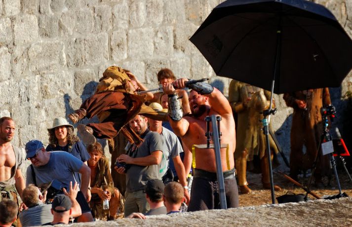 Fyrstu myndirnar af Hafþóri Júlíusi Björnssyni í hlutverki „The Mountain“ Clegane, eða „Fjallið“ Clegane, í þáttaröðinni Game of Thrones hafa nú birst á veraldarvefnum. En eins og Vísir greindi frá er þetta stórt hlutverk í þáttaröðinni. Sést þar Hafþór, í tökum á atriði í þáttaröðinni, ber að ofan með stærðarinnar sverð þakið blóði. Í atriðinu stingur hann, að því er virðist, mann á hol og lyftir honum upp með sverðinu og fleygir honum frá sér. Hafþór leikur í fjórðu þáttaröð sjónvarpsþáttana vinsælu en þættirnir voru að hluta til teknir upp hér á landi. Þáttaröðin verður sýnd í byrjun næsta árs. Þetta er ekki í fyrsta sinn sem „The Mountain“ Clegane birtist í Game of Thrones en áður léku hlutverkið þeir Conan Stevens og Ian Whyte. Myndirnar má sjá hér að ofan.