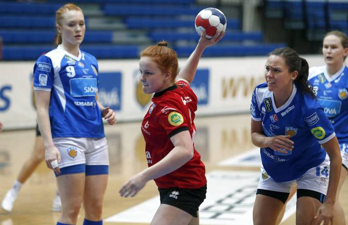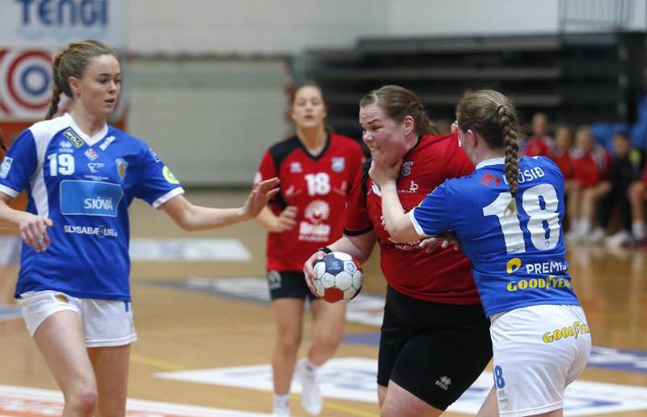 Stelpurnar í Aftureldingu stóðu lengi vel í Fram í Olís-deild kvenna í kvöld en urðu að lokum að játa sig sigraða. Hin síunga Hekla Daðadóttir fór á kostum í liði Aftureldingar og skoraði rúmlega helming marka liðsins. Það dugði ekki til. Afturelding er án stiga á botni deildarinnar en Fram er í fjórða sæti með tíu stig.Úrslit:Fram-Afturelding 28-22 (13-11) Mörk Fram: Sigurbjörg Jóhannsdóttir 8, Marthe Sördal 7, Ragnheiður Júlíusdóttir 6, María Karlsdóttir 3, Hafdís Iura 1, Karólína Torfadóttir 1, Hekla Rún Ámundadóttir 1, Elva Þóra Arnardóttir 1. Mörk Aftureldingar: Hekla Daðadóttir 12, Sara Kristjánsdóttir 5, Nóra Csakovics 3, Monica Bodai 1, Telma Rut Frímannsdóttir 1.