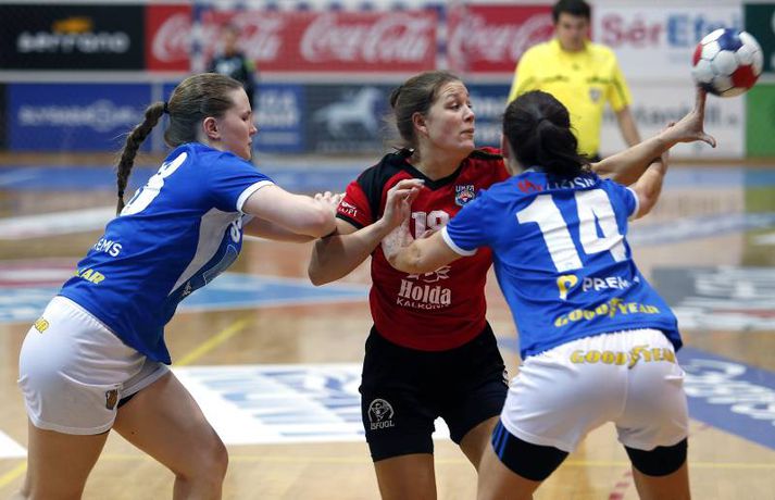 Stórleikur Heklu dugði ekki til | Myndir 5. nóvember 2013 21:59 Hekla einbeitt í kvöld. mynd/stefán Stelpurnar í Aftureldingu stóðu lengi vel í Fram í Olís-deild kvenna í kvöld en urðu að lokum að játa sig sigraða. Hin síunga Hekla Daðadóttir fór á kostum í liði Aftureldingar og skoraði rúmlega helming marka liðsins. Það dugði ekki til. Afturelding er án stiga á botni deildarinnar en Fram er í fjórða sæti með tíu stig.Úrslit:Fram-Afturelding 28-22 (13-11) Mörk Fram: Sigurbjörg Jóhannsdóttir 8, Marthe Sördal 7, Ragnheiður Júlíusdóttir 6, María Karlsdóttir 3, Hafdís Iura 1, Karólína Torfadóttir 1, Hekla Rún Ámundadóttir 1, Elva Þóra Arnardóttir 1. Mörk Aftureldingar: Hekla Daðadóttir 12, Sara Kristjánsdóttir 5, Nóra Csakovics 3, Monica Bodai 1, Telma Rut Frímannsdóttir 1. Olís-deild kvenna Mest lesið „Örugglega nokkrir Fantasy-þjálfarar ósáttir“ Enski boltinn „Það verður hundleiðinlegt að spila við Val“ Íslenski boltinn „Haaland er þetta góður“ Enski boltinn Kærastan tók eftir því að eitthvað var að Handbolti Tilþrif 5. umferðar: Jukic stal senunni Körfubolti Lygilega jafnt á toppnum eftir sigur AC Milan Fótbolti Dagskráin í dag: Sú elsta og virtasta, enska úrvalsdeildin og Extra Sport Ítalinn hoppaði upp fyrir Alcaraz eftir sigur í París Sport Viðtökurnar á Anfield munu ekki breyta neinu Fótbolti Uppgjörið: Þýskaland - Ísland 29-31 | Svöruðu skellinum með frábærum sigri Handbolti Fleiri fréttir Uppgjörið: Þýskaland - Ísland 29-31 | Svöruðu skellinum með frábærum sigri Kærastan tók eftir því að eitthvað var að KA/Þór gerði jafntefli við botnliðið Valskonur unnu 24 marka sigur og ÍR upp í annað sætið „Fannst þetta verða svartara og svartara“ Alfreð hissa: Veit að Íslendingar geta mun betur Andri kallaður inn í hópinn fyrir meiddan Hauk Arnór Snær snýr aftur heim Besta handboltadeild heims missir aðalstyrktaraðila sinn Grafalvarleg staða: „Þurfum að fara í sársaukafullar aðgerðir“ ÍR áfram eftir sigur í Mosfellsbæ Uppgjörið: Þýskaland - Ísland 42-31 | Þrot í Þýskalandi Tilkynnti um óléttu og nýjan samning á sama tíma Patrekur hættur eftir dapurt gengi Stjörnunnar Rekinn fyrir ummæli sín um krabbameinssjúka handboltagoðsögn Janus Daði myndaður í heimsókn hjá Barcelona Epicbet sýni handboltann í leyfisleysi: „Enda ólöglegar síður“ Teitur inn í landsliðið Gísli bjó til meira en þriðjung markanna Haukur magnaður í sigri Löwen Blær skoraði þrjú og lagði upp jöfnunarmarkið KA/Þór sótti sigur gegn Fram og stigalausar Stjörnukonur Fram kjöldró HK og spenna í Eyjum Meistararnir unnu gegn ÍBV og ÍR hafði betur gegn Selfyssingum Donni og félagar björguðu stigi undir lokin Afturelding komst upp að hlið Hauka Seldu bleika búninginn hennar Herrem fyrir meira en milljón „Leið vel þegar ég fór inn úr færinu“ Uppgjörið FH - Haukar 27-26 | Birgir Már tryggði FH sigur eftir spennutrylli Bernard fór mikinn en Valsmenn sluppu með sigurinn Sjá meira