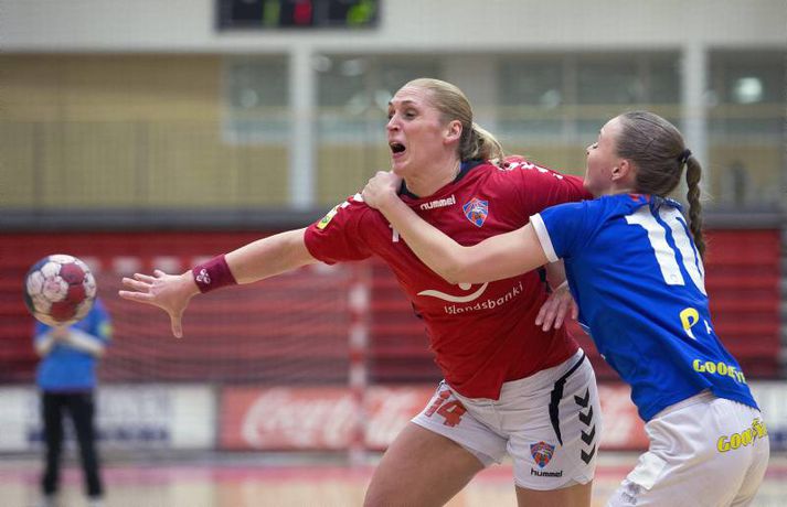 Umfjöllun, viðtöl og myndir: Valur - Fram 25-22 | Valur hélt öðru sætinu Anton Ingi Leifsson skrifar 18. febrúar 2014 14:04 Vísir/Stefán Valur vann Fram í miklum toppbaráttuslag í kvöld. Fram leiddi í hálfleik, 10-11, en sterkur síðari hálfleik tryggði Val sigur. Framstúlkur skoruðu fyrstu tvö mörkin og voru því komnar skrefinu á undan. Valur var þó aldrei langt á eftir og var munurinn aldrei meiri en tvö mörk í fyrri hálfleik. Sóknarleikur Vals var frekar stirður í byrjun leiks en lagaðist aðeins eftir því sem leið á fyrri hálfleikinn. Varnir liðanna voru virkilega sterkar og markverðirnir í stuði, þá sérstaklega Sunneva í markinu hjá Fram. Hún var kominn með tólf skot í fyrri hálfleik. Karólína Bæhrenz náði svo að minnka muninn í eitt mark mínútu fyrir lokaflaut fyrri hálfleiks og staðan því 10-11 fyrir Fram þegar liðin gengu til búningsherbergjanna. Í síðari hálfleik var allt annað að sjá bæði lið. Valur byrjaði með þvílíkum krafti í upphafi síðari hálfleiks á meðan Framstúlkur slökuðu á. Valur komst í fyrsta sinn yfir í leiknum þegar Morgan Þorkelsdóttir kom þeim í 13-12 forystu eftir 36 mínútur. Framstúlkur voru ekki að finna taktinn eftir að þær lentu undir og það leit út eins og þær ætluðu að skora tvö mörk í hverri sókn, svo mikið lá þeim á. Þær köstuðu boltanum frá sér í sífellu. Valur gaf ekkert eftir og komust meðal annars í 17-12 forystu en magnaður 6-0 varnarleikur Vals spilaði þar stórt hlutverk. Fram var þó aldrei langt undan og þegar tíu mínútur voru eftir leiddu heimastúlkur með tveimur mörkum, 20-18. Valsstúlkur náðu þó að klára leikinn með þremur mörkum, lokatölur á Hlíðarenda 25-22. Markverðirnir Berglind Íris Hansdóttir og Sunneva Einarsdóttir voru menn leiksins. Þær áttu báðar virkilega góðan dag og voru báðar með um 40% markvörslu. Kristín Guðmundsdóttir dró vagninn í sókninni fyrir Val, en einnig kom Morgan Þorkelsdóttir inn á og stóð sig með mikilli prýði. Hún skoraði fimm mörk. Sterk innkoma hjá þessari efnilegu stúlku.Vísir/StefánHalldór Jóhann: Skil ekki afhverju við missum fæturnar „Það eru fyrstu tíu mínúturnar í síðari hálfleik sem fara með okkur. Það er sex marka sveifla - fer úr 10-11 í 17-12 og við erum bara elta eftir það. Við erum að fá tækifæri, en við erum bara klúðra boltanum og taka rangar ákvarðanir. Síðari hálfleikurinn var bara slakur," sagði Halldór við Vísi eftir leik. Aðspurður hvort hann væri sammála því að mikið óðagot hafi komið í leik Fram eftir að þær hefðu lent undir svaraði Halldór: „Við erum eiginlega þannig allan leikinn. Í fyrri hálfleik vorum við þannig líka og við fáum hrikalega marga möguleika þrátt fyrir það. Við hefðum átt að gefa okkur meiri tíma, en í staðinn fyrir þreifa fyrir okkur og nýta okkur okkar styrkleika hlaupum við þetta dálítið bara frá okkur." „Maður getur alltaf tekið jákvæða hluti. Við spiluðum vel í fyrri hálfleik og vorum að spila góðan varnarleik og góð markvarsla. Ég skil ekki alveg afhverju við missum fæturnar í síðari hálfleik og við eigum mjög erfitt með að ná okkur upp aftur." „Við erum með ungt lið og lið sem þarf að læra. Það þarf að læra líka að klára svona aðstæður, en við þurfum að fá aðeins meira bit í okkur í upphafi síðari hálfleiks. Það verður bara einbeitingarleysi að klára ekki hluti sem við ræddum um í hálfleik," sagði Halldór Jóhann að lokum.Vísir/StefánKristín: Man ekki hvað Stefán sagði „Ég man eiginlega ekki hvað hann Stefán sagði í hálfleik. Það vantaði bara dálítið herslumuninn þarna í fyrri hálfleik og aðallega sóknarlega. Við vorum að fá fín færi, en við vorum bara ekki að ná að setjann. Vörnin þeirra og markvarslan var einnig mjög góð," sagði Kristín í leikslok. „Í síðari hálfleik varð vörnin betri. Ég efast um að Ragnheiður hafi náð að skora og það var auðvitað lykillinn. Svo bara þegar maður er kominn með smá blóð á tennurnar þá verður allt auðveldara." „Við fáum unga stelpu inn (Morgan) og hún byrjar að skora. Þá fer athyglin af okkur gömlu og þá losnar um margt. Það losar um fullt og mikilvægt fyrir okkur að fá hana inn. Þetta er það sem hún getur og gaman að þetta hafi verið í sjónvarpinu. Þá sjá allir að við eigum svona unga og efnilega stelpu, þetta eru ekki bara við gömlu." Berglind Íris átti góðan dag í markinu og var Kristín ánægð með hennar framlag: „Við eigum þrjá góða markmenn og það er bara frábært. Okkur hlakkar mikið til leiksins á laugardaginn gegn Stjörnunni, en það er gaman að mæta sem minna liðið loksins. Ég held að fleiri búist við að þær vinni og er búið að ganga illa undanfarið. Við ætlum að taka tvo góða leiki í röð núna. Við vitum alveg hvað við getum," voru lokaorð Kristínar. Olís-deild kvenna Mest lesið „Ísland í hópi með Norður-Kóreu og Íran“ Sport Dönsk landsliðskona eignaðist barn tólf vikum fyrir tímann Handbolti Loksins þorði einhver í Kolbein sem stígur aftur inn í hringinn Sport Viðtökurnar á Anfield munu ekki breyta neinu Fótbolti Kærastan tók eftir því að eitthvað var að Handbolti Segir allt tal um leiðinlegan fótbolta hjá Arsenal heimskulegt Enski boltinn „Búnt á skenkinn, Halli Egils á vegginn“ Sport Guardiola segir að dómararnir hafi verið á móti City í áratug Enski boltinn Skagamenn senda Kanann heim Körfubolti Gæti tekið við Úlfunum ellefu mánuðum eftir að hafa verið rekinn frá þeim Enski boltinn Fleiri fréttir Dönsk landsliðskona eignaðist barn tólf vikum fyrir tímann Uppgjörið: Þýskaland - Ísland 29-31 | Svöruðu skellinum með frábærum sigri Kærastan t