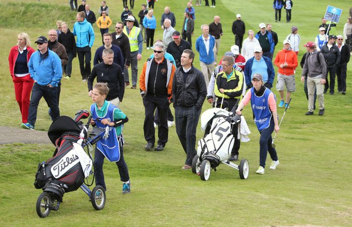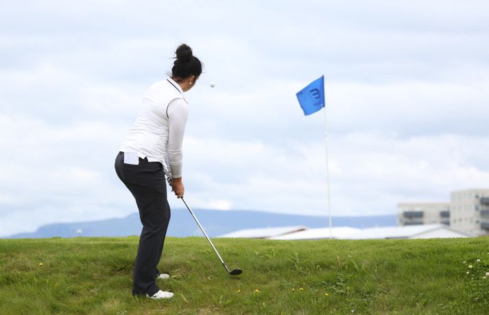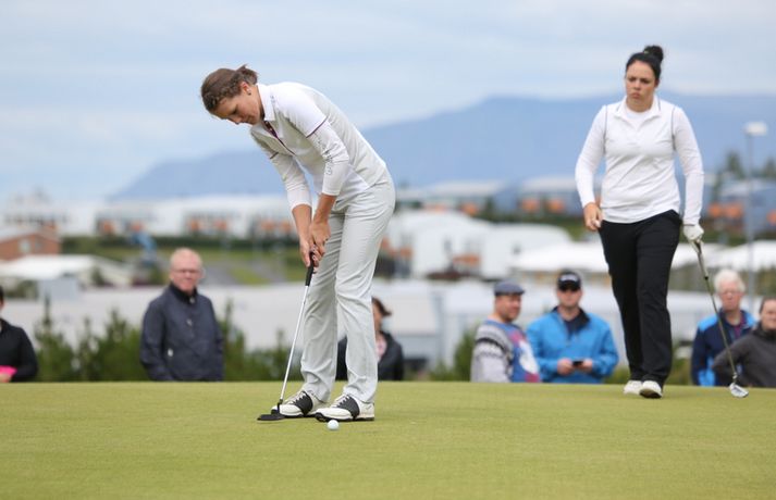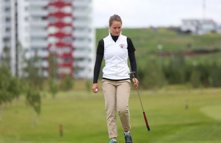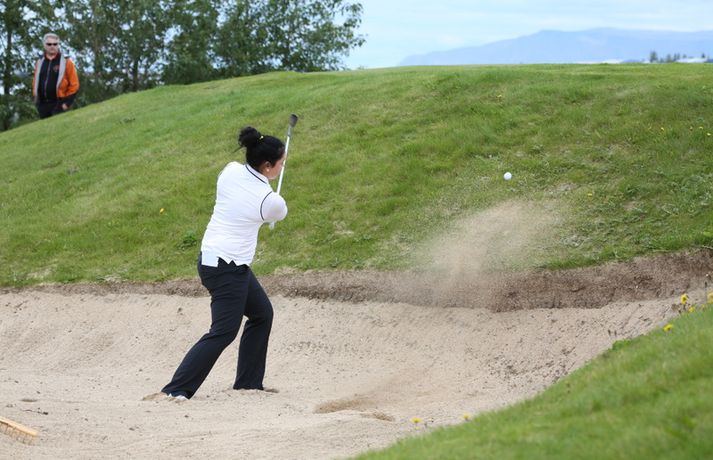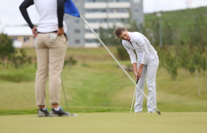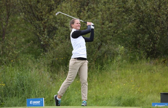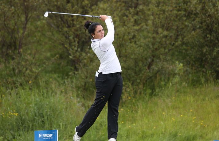 Birgir Leifur Hafþórsson varð í dag Íslandsmeistari karla í höggleik en mótinu lauk á Leirdalsvelli hjá Golfklúbbi Kópavogs og Garðabæjar síðdegis. Birgir Leifur var því á heimavelli og leið vel allt mótið. Hann hafði mikla yfirburði og var sjö höggum á undan næsta manni, Ólafi Birni Loftssyni, NK. Þórður Rafn Gissurarson, GR, varð þriðji á tveimur undir pari. Með sigrinum jafnar hann árangur Úlfars Jónssonar og Björgvins Þorsteinssonar með sínum sjötta Íslandsmeistaratitli. Hann jafnaði einnig mótsmet sem sett var fyrir 50 árum síðan er Magnús Guðmundsson varð Íslandsmeistari í höggleik á tíu höggum undir pari. Birgir Leifur jafnaði það met er hann varð Íslandsmeistari í fyrra. Birgir Leifur var á ellefu höggum undir pari fyrir átjándu holu í dag en varð að sætta sig við skolla eftir að hafa lent í glompu á miðri braut. Hann fékk reyndar fjóra skolla á fyrstu tíu holunum í dag en kom sér aftur á breinu brautina með þremur fuglum í röð. Eftir það var sigur hans aldrei í hættu.Tíu efstu í karlaflokki: 1. Birgir Leifur Hafþórsson, GKG (-10) 2. Ólafur Björn Loftsson, NK (-3) 3. Þórður Rafn Gissurarson, GR (-2) 4. Gísli Sveinbergsson, GK (E) - Aron Snær Júlíusson, GKG (E) - Kristján Þór Einarsson, GKj (E) 7. Bjarki Pétursson, GB (+1) - Axel Bóasson, GK (+1) 9. Haraldur Franklín Magnús, GR (+3) 10. Guðmundur Ágúst Kristjánsson, GR (+4)Tíu efstu í kvennaflokki: 1. Ólafía Þórunn Kristinsdóttir, GR (+10) 2. Guðrún Brá Björgvinsdóttir, GK (+13) 3. Valdís Þóra Jónsdóttir, GL (+18) 4. Ragnhildur Kristinsdóttir, GR (+19) 5. Karen Guðnadóttir, GS (+23) 6. Ragnhildur Sigurðardóttir, GR (+26) - Sunna Víðisdóttir, GR (+26) 8. Signý Arnórsdóttir, GK (+27) 9. Anna Sólveig Snorradóttir, GK (+29) 10. Gunnhildur Kristjánsdóttir, GKG (+33)Hér fyrir neðan má lesa lýsingu frá lokakeppnisdeginum:17.27: Birgir Leifur Hafþórsson er því Íslandsmeistari í sjötta sinn á ferlinum. Sigur hans var gríðarlega öruggur í dag.17.25: Birgir Leifur missir púttið fyrir parinu og endar því á tíu höggum undir pari - sama skori og hann varð Íslandsmeistari á Korpunni í fyrra. Það er líka metjöfnun en Magnús Guðmundsson varð Íslandsmeistari á tíu höggum undir pari árið 1964. Þórður Rafn fékk skolla og varð því þriðji, einu höggi á eftir Ólafi Birni.17.18: Birgir Leifur lendir í glompu eftir teighöggið en kemur sér í ágæta stöðu og ætti að vera nokkuð öruggur með par.17.10: Ólafur Björn Loftsson, NK, spilaði vel í dag og kom í hús á 69 höggum. Hann er á þremur undir pari og deilir öðru sætinu með Þórði Rafni, sem á eftir að klára átjándu holuna.17.08: Birgir Leifur nær í pútterinn þrátt fyrir að vera utan flatar og er hársbreidd frá því að setja niður fuglinn. Sættir sig þó við öruggt par. Þórður Rafn tryggir parið sömuleiðis. Bara lokaholan eftir.17.04: Birgir Leifur slær í pinnan á sautjándu en boltinn skoppar út af flötinni. Þórður Rafn setur inn á flöt en á nokkuð langt fuglapútt eftir.17.01: Birgir Leifur nær ekki fuglinum og er því enn á ellefu undir pari. Þórður Rafn fær skolla og er því á þremur undir pari í öðru sæti. Það er auðvitað löngu ljóst að Birgir Leifur er að landa sínum sjötta titli.16.57: Þórður Rafn átti erfiða vippu á sextándu og á langt pútt eftir fyrir pari. Mjög langt. Birgir Leifur er hins vegar í mjög góðum málum.16.54: Axel Bóasson í miklum vandræðum á sextándu braut og er að spila sig úr baráttunni um þriðja sætið.16.48: Það hafa verið vandræði á golf.is í dag en vonandi er vefurinn kominn í gott lag núna.16.45: Hinn sextán ára Gísli Sveinbergsson er búinn að fá tvo fugla í röð og er kominn upp í fjórða sætið. Hann er á pari, bæði á deginum og mótinu alls. Frábær efni þar á ferð.16.37: Þórður Rafn var að fá fugl á fimmtándu og er því kominn á fjögur högg undir par í dag og er nú sjö höggum á eftir Birgi Leifi, sem er fékk par.16.18: Þriðji fuglinn í röð hjá Birgi Leifi. Þórður Rafn fékk par og því er munurinn nú átta högg. Ólafur Björn Loftsson er á tveimur höggum undir pari og því níu höggum á eftir Birgi Leifi.16.11: Birgir Lifur fékk annan fugl á 13. holu og er því kominn með tvo í röð. Þórður Rafn fékk skolla þar og er því munurinn nú orðinn sjö högg, rétt eins og í upphafi dags.15.59: Birgir Leifur fékk fugl á tólfu holu. Hans fyrsti fugl í dag. Þórður Rafn fékk par og munurinn á þeim því fimm högg.15.58: Ólafía Þórunn Kristinsdóttir, GR, er Íslandsmeistari kvenna í höggleik árið 2014. Hún vippar beint að pinna og tryggir sér skolla. Hún lék því samtals á tíu höggum yfir pari, þremur betur en Guðrún Brá Björgvinsdóttir, GK. Valdís Þóra Jónsdóttir, GL, varð þriðja á átján yfir pari.15.51: Guðrún Brá klikkar á innáhögginu og þar með létti yfir Ólafíu.15.47: Ólafía tekur víti en boltinn skoppar illa. Hún hittir boltann ágætlega og er upp við flöt. Er væntanlega búin að gera nóg til að tryggja sér titilinn.15.43: Ólafía er í smá vandræðum utan brautar. Er upp við tré og þarf að vera skynsöm núna. Guðrún Brá er á góðum stað eftir teighöggið á átjándu.15.38: Guðrún Brá púttaði fyrir fugli á 17. holu en tryggði sér parið. Ólafía nær einnig pari og er því með þriggja högga forystu fyrir lokaholuna.15.32: Sviptingar á toppnum hjá körlunum. Birgir Leifur fékk skolla á tíundu holu en Þórður Rafn fugl. Munurinn er því orðinn fjögur högg á ný. Þetta er langversti dagur Birgis Leifs á mótinu en hann er á fjórum yfir í dag. Hann var á tólf höggum undir pari eftir fyrstu þrjá dagana.15.29: Axel Bóasson er í vandræðum. Spilaði síðustu þrjár holur 