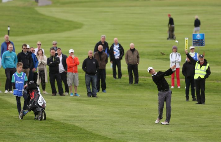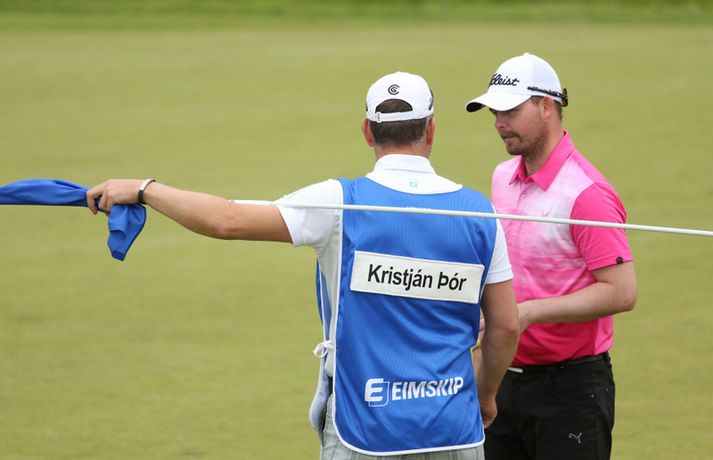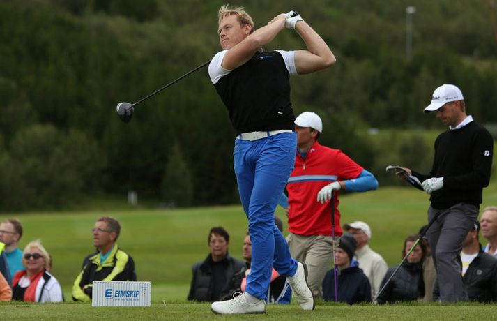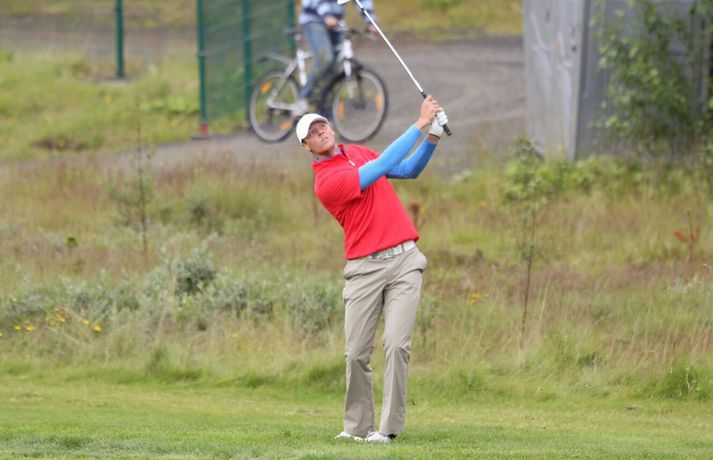 Birgir Leifur enn og aftur meistari Eiríkur Stefán Ásgeirsson skrifar 27. júlí 2014 15:07 Vísir/Daníel Birgir Leifur Hafþórsson varð í dag Íslandsmeistari karla í höggleik en mótinu lauk á Leirdalsvelli hjá Golfklúbbi Kópavogs og Garðabæjar síðdegis. Birgir Leifur var því á heimavelli og leið vel allt mótið. Hann hafði mikla yfirburði og var sjö höggum á undan næsta manni, Ólafi Birni Loftssyni, NK. Þórður Rafn Gissurarson, GR, varð þriðji á tveimur undir pari. Með sigrinum jafnar hann árangur Úlfars Jónssonar og Björgvins Þorsteinssonar með sínum sjötta Íslandsmeistaratitli. Hann jafnaði einnig mótsmet sem sett var fyrir 50 árum síðan er Magnús Guðmundsson varð Íslandsmeistari í höggleik á tíu höggum undir pari. Birgir Leifur jafnaði það met er hann varð Íslandsmeistari í fyrra. Birgir Leifur var á ellefu höggum undir pari fyrir átjándu holu í dag en varð að sætta sig við skolla eftir að hafa lent í glompu á miðri braut. Hann fékk reyndar fjóra skolla á fyrstu tíu holunum í dag en kom sér aftur á breinu brautina með þremur fuglum í röð. Eftir það var sigur hans aldrei í hættu.Tíu efstu í karlaflokki: 1. Birgir Leifur Hafþórsson, GKG (-10) 2. Ólafur Björn Loftsson, NK (-3) 3. Þórður Rafn Gissurarson, GR (-2) 4. Gísli Sveinbergsson, GK (E) - Aron Snær Júlíusson, GKG (E) - Kristján Þór Einarsson, GKj (E) 7. Bjarki Pétursson, GB (+1) - Axel Bóasson, GK (+1) 9. Haraldur Franklín Magnús, GR (+3) 10. Guðmundur Ágúst Kristjánsson, GR (+4)Tíu efstu í kvennaflokki: 1. Ólafía Þórunn Kristinsdóttir, GR (+10) 2. Guðrún Brá Björgvinsdóttir, GK (+13) 3. Valdís Þóra Jónsdóttir, GL (+18) 4. Ragnhildur Kristinsdóttir, GR (+19) 5. Karen Guðnadóttir, GS (+23) 6. Ragnhildur Sigurðardóttir, GR (+26) - Sunna Víðisdóttir, GR (+26) 8. Signý Arnórsdóttir, GK (+27) 9. Anna Sólveig Snorradóttir, GK (+29) 10. Gunnhildur Kristjánsdóttir, GKG (+33)Hér fyrir neðan má lesa lýsingu frá lokakeppnisdeginum:17.27: Birgir Leifur Hafþórsson er því Íslandsmeistari í sjötta sinn á ferlinum. Sigur hans var gríðarlega öruggur í dag.17.25: Birgir Leifur missir púttið fyrir parinu og endar því á tíu höggum undir pari - sama skori og hann varð Íslandsmeistari á Korpunni í fyrra. Það er líka metjöfnun en Magnús Guðmundsson varð Íslandsmeistari á tíu höggum undir pari árið 1964. Þórður Rafn fékk skolla og varð því þriðji, einu höggi á eftir Ólafi Birni.17.18: Birgir Leifur lendir í glompu eftir teighöggið en kemur sér í ágæta stöðu og ætti að vera nokkuð öruggur með par.17.10: Ólafur Björn Loftsson, NK, spilaði vel í dag og kom í hús á 69 höggum. Hann er á þremur undir pari og deilir öðru sætinu með Þórði Rafni, sem á eftir að klára átjándu holuna.17.08: Birgir Leifur nær í pútterinn þrátt fyrir að vera utan flatar og er hársbreidd frá því að setja niður fuglinn. Sættir sig þó við öruggt par. Þórður Rafn tryggir parið sömuleiðis. Bara lokaholan eftir.17.04: Birgir Leifur slær í pinnan á sautjándu en boltinn skoppar út af flötinni. Þórður Rafn setur inn á flöt en á nokkuð langt fuglapútt eftir.17.01: Birgir Leifur nær ekki fuglinum og er því enn á ellefu undir pari. Þórður Rafn fær skolla og er því á þremur undir pari í öðru sæti. Það er auðvitað löngu ljóst að Birgir Leifur er að landa sínum sjötta titli.16.57: Þórður Rafn átti erfiða vippu á sextándu og á langt pútt eftir fyrir pari. Mjög langt. Birgir Leifur er hins vegar í mjög góðum málum.16.54: Axel Bóasson í miklum vandræðum á sextándu braut og er að spila sig úr baráttunni um þriðja sætið.16.48: Það hafa verið vandræði á golf.is í dag en vonandi er vefurinn kominn í gott lag núna.16.45: Hinn sextán ára Gísli Sveinbergsson er búinn að fá tvo fugla í röð og er kominn upp í fjórða sætið. Hann er á pari, bæði á deginum og mótinu alls. Frábær efni þar á ferð.16.37: Þórður Rafn var að fá fugl á fimmtándu og er því kominn á fjögur högg undir par í dag og er nú sjö höggum á eftir Birgi Leifi, sem er fékk par.16.18: Þriðji fuglinn í röð hjá Birgi Leifi. Þórður Rafn fékk par og því er munurinn nú átta högg. Ólafur Björn Loftsson er á tveimur höggum undir pari og því níu höggum á eftir Birgi Leifi.16.11: Birgir Lifur fékk annan fugl á 13. holu og er því kominn með tvo í röð. Þórður Rafn fékk skolla þar og er því munurinn nú orðinn sjö högg, rétt eins og í upphafi dags.15.59: Birgir Leifur fékk fugl á tólfu holu. Hans fyrsti fugl í dag. Þórður Rafn fékk par og munurinn á þeim því fimm högg.15.58: Ólafía Þórunn Kristinsdóttir, GR, er Íslandsmeistari kvenna í höggleik árið 2014. Hún vippar beint að pinna og tryggir sér skolla. Hún lék því samtals á tíu höggum yfir pari, þremur betur en Guðrún Brá Björgvinsdóttir, GK. Valdís Þóra Jónsdóttir, GL, varð þriðja á átján yfir pari.15.51: Guðrún Brá klikkar á innáhögginu og þar með létti yfir Ólafíu.15.47: Ólafía tekur víti en boltinn skoppar illa. Hún hittir boltann ágætlega og er upp við flöt. Er væntanlega búin að gera nóg til að tryggja sér titilinn.15.43: Ólafía er í smá vandræðum utan brautar. Er upp við tré og þarf að vera skynsöm núna. Guðrún Brá er á góðum stað eftir teighöggið á átjándu.15.38: Guðrún Brá púttaði fyrir fugli á 17. holu en tryggði sér parið. Ólafía nær einnig pari og er því með þriggja högga forystu fyrir lokaholuna.15.32: Sviptingar á toppnum hjá körlunum. Birgir Leifur fékk skolla á tíundu holu en Þórður Rafn fugl. Munurinn er því orðinn fjögur högg á ný. Þetta er langversti dagur Birgis Leifs á mótinu en hann er á fjórum yfir í dag. Hann var á tólf höggum u