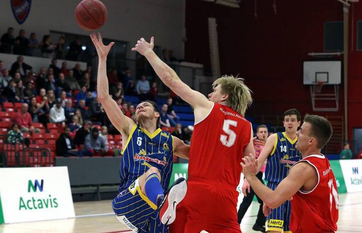 Haukar báru sigurorð af Grindavík, 97-77, á Ásvöllum í Dominos-deild karla í körfubolta í kvöld. Haukar leiddu með sex stigum í háfleik, 48-42 og keyrðu síðan yfir Grindvíkinga í síðari háfleik. Haukur Óskarsson átti frábæran leik í liði Hauka og skoraði 27 stig. Magnús Þór Gunnarsson var stigahæstur Grindvíkinga með 21 stig. Stefán Karlsson, ljósmyndari Vísis og Fréttablaðsins, var á leiknum á Ásvöllum í kvöld og náði þessum myndum hér fyrir neðan. Haukar: Haukur Óskarsson 27, Alex Francis 20/20 fráköst, Kristinn Marinósson 17/5 fráköst, Kári Jónsson 16/6 fráköst/6 stoðsendingar, Helgi Björn Einarsson 6/5 fráköst, Sigurður Þór Einarsson 5, Brynjar Ólafsson 4, Emil Barja 2/6 fráköst, Svavar Páll Pálsson 0, Hjálmar Stefánsson 0/5 fráköst, Alex Óli Ívarsson 0, Kristján Leifur Sverrisson 0. Grindavík: Magnús Þór Gunnarsson 21, Joel Hayden Haywood 19, Ómar Örn Sævarsson 11/14 fráköst, Ólafur Ólafsson 10/3 varin skot, Jóhann Árni Ólafsson 9/5 fráköst, Daníel Guðni Guðmundsson 5, Sigurður Gunnar Þorsteinsson 2, Nökkvi Harðarson 0, Sverrir Týr Sigurðsson 0, Hilmir Kristjánsson 0, Kristófer Breki Gylfason 0. Þór Þorlákshöfn lagði ÍR, 93-83, í Þorlákshöfn eftir að hafa verið einu stigi undir í háfleik. Tómas Heiðar Tómasson skoraði 26 stig fyrir Þór og Matthías Orri Sigurðarson var stigahæstur hjá ÍR með 24 stig. Þór Þ.: Tómas Heiðar Tómasson 26/5 fráköst, Vincent Sanford 19/9 fráköst/5 stoðsendingar, Nemanja Sovic 17/5 fráköst, Baldur Þór Ragnarsson 9/7 stoðsendingar, Grétar Ingi Erlendsson 9/4 fráköst, Oddur Ólafsson 6/4 fráköst, Þorsteinn Már Ragnarsson 5, Emil Karel Einarsson 2, Sveinn Hafsteinn Gunnarsson 0, Davíð Arnar Ágústsson 0, Halldór Garðar Hermannsson 0, Jón Jökull Þráinsson 0. ÍR: Matthías Orri Sigurðarson 24/7 fráköst/6 stoðsendingar, Sveinbjörn Claessen 19/5 fráköst, Vilhjálmur Theodór Jónsson 13/7 fráköst, Christopher Gardingo 10, Ragnar Örn Bragason 9, Kristján Pétur Andrésson 8/10 fráköst, Stefán Ásgeir Arnarsson 0, Sæþór Elmar Kristjánsson 0, Leifur Steinn Arnason 0, Kristófer Fannar Stefánsson 0, Daníel Freyr Friðriksson 0, Birgir Þór Sverrisson 0.