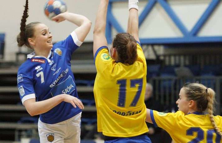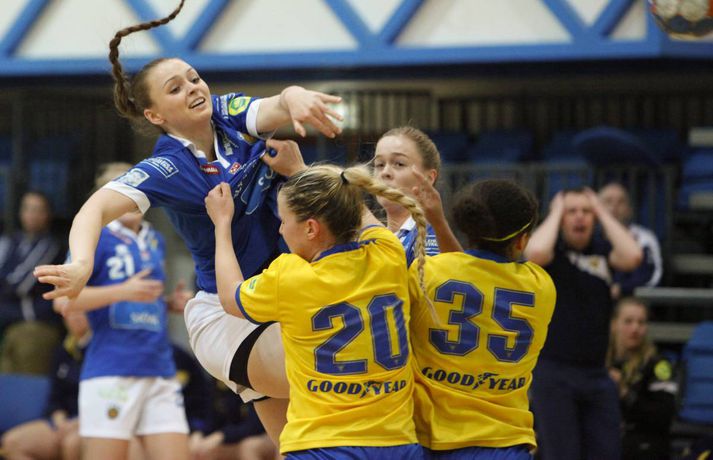 ÍBV tryggði sér sæti í 8-liða úrslitum Coca-Cola bikarsins í handbolta þegar liðið vann Stjörnuna í Mýrinni í dag. Eyjastúlkur unnu seiglusigur eftir jafnan og hrikalega spennandi leik, allt fram á síðustu mínútu leiksins. Bæði lið gerðu nóg af mistökum og kostuðu boltanum í gríð og erg útaf og í hendur andstæðinga. Einnig gerðust bæði lið sek um mörg sóknarbrot, en á endanum var það ÍBV sem gerði færri mistök og vann með tveggja marka mun, 22-24. Stjarnan byrjaði leikinn af fullum krafti og komst meðal annars í 3-0 og 7-4. Þegar rúmar tíu mínútur voru liðnar var staðan orðin 9-5, en þá var þjálfurum Eyjastúlkna nóg boðið og þeir tóku leikhlé. Eftir það skánaði leikurinn til muna, en þær voru að skjóta afar illa á Florentinu Stanciu sem varði hvern boltann á fætur öðrum. Gestirnir söxuðu hægt og rólega á forystu heimastúlkna og Telma Silva Amado jafnaði svo metin með einu af sex mörkum sínum í fyrri hálfleik. Staðan 10-10 þegar átján mínútur voru liðnar. Heimastúlkur reyndust svo ögn sterkari undir lok fyrri hálfleiks, en bæði lið voru að gera ótal mistök í sínum sóknarleik. Staðan 14-12 fyrir Garðarbæjarliðinu í hálfleik. Báðir markverðir höfðu verið að verja vel í fyrri hálfleik, en Florentina Stanciu var með 45% markvörslu í fyrri hálfleik. Hinu megin í marki ÍBV var Dröfn Haraldsdóttir með 36%. Telma Silva Amado var kominn með helming marka ÍBV í fyrri hálfleik eða sex talsins. Síðari hálfleikurinn einkenndist af mikilli baráttu enda sæti í 8-liða úrslitum bikarsins í boði. Heimastúlkur skoruðu fyrstu tvö mörkin í síðari hálfleik og virtust ætla vera sigla þessum leik þægilega í hús. Eyjastúlkur breyttu hins vegar stöðunni úr 16-12 í 16-16 og við vorum enn með leik í Mýrinni. Næstu mínútur voru jafnar og leikurinn var jafn og spennandi. Staðan var jöfn, en þá skellti Florentina í lás og heimastúlkur skoruðu úr hraðaupphlaupum. Þær breyttu stöðunni úr 18-18 í 21-18 en gestirnir neituðu enn og aftur að gefast upp og jöfnuðu í 21-21. Það voru svo gestirnir frá Vestmanaeyjum sem unnu að lokum nauman sigur eftir dramatískar lokamínútur. Á endanum gerðu þær færri mistök sem urðu þess valdandi að liðið er búið að tryggja sig í 8-liða úrslitin. Algjör seigla undir lokin, en lokatölur 22-24. Telma Silva Amado var frábær í liði ÍBV, en hún skoraði átta mörk úr jafnmörgum skotum. Hornamaðurinn ungi Díana Dögg Magnúsdóttir spilaði afar vel í horninu og Dröfn Haraldsdóttir stóð sig vel í markinu. Florentina Stanciu var í svakalegum ham í markinu hjá Stjörnunni og varði 43% skota sem á hana komu. Helena Rut Örvasdóttir var svo markahæst með sjö mörk, en hún skaut alls tólf sinnum.Jón Gunnlaugur: Viljum fá Gróttu eða Fram á heimavelli „Þetta var heldur betur frábær sigur. Þetta var kannski smá þjófnaður, en við komumst í fyrsta skipti yfir þegar fjórar mínútur voru eftir. Það sýnir karakter að geta gert þetta svona," sagði Jón Gunnlaugur, betur þekktur sem Gulli þjálfari ÍBV, við Vísi í leikslok. „Stelpurnar ætluðu sér sigur og það tókst. Ég verð að hrósa þeim í hástert bæði fyrir stuðninginn af bekknum og hvernig þær höguðu sér inná vellinum. Virkilega fagmennlega gert." „Mér fannst liðið spila vel í heild. Við lögðum leikinn vel upp og þegar vörnin small þá var þetta ekki spurning um hvort við myndum vera inn í leiknum, þær voru ekkert að fara valta yfir okkur. Ég er ánægður með það og skynsemina í sókninni." Aðspurður hvort hann hafi verið hræddur þegar Stjarnan var kominn þremur mörkum yfir á tímapunkti í síðari hálfleik svaraði Gulli kokhraustur: „Aldrei!," sem fór næst beint í sálfræði-bunkann. „Við vonum núna að við fáum Gróttu eða Fram á heimavelli. Ég held að það sé okkar möguleiki að fá eitthvað sterkt lið á heimavelli til þess að eiga þá auðveldara andstæðing ef við förum áfram í því," sagði Gulli í leikslok.Ragnar: Töpum þessu á hreinum aumingjaskap „Það er mjög einfalt hvað fór úrskeiðis. Þetta er sjötti leikurinn sem ég sé þetta lið spila á tveimur árum þar sem liðið er með unnin leik, en þora ekki að vinna hann og tapa hann á hreinum aumingjaskap," sagði Ragnar Hermannsson, þjálfari Stjörnunnar, brjálaður í samtali við Vísi í leikslok. „Það var bara farið að horfa um öxl í lykilstöðum í síðari hálfleik. Við erum með 22 tæknifeila og hugleysið í ákveðnum stöðum er þannig að maður veit ekki hvað er að gerast." „Við erum að búa til klassa stöður, við erum að spila klassa vörn og stelpurnar eru að leggja sig 110% fram. Það vantar ekkert uppá það. Við erum að halda liðið sem er að skora 30 mörk að meðaltali í deildinni í 24 mörkum, en þegar það kemur að lokastöðunum þá er engin sem þorir." „Við förum heldur betur inn í skelina. Ég held við skorum eitt mark síðustu tíu eða tólf mínútunum og það er úr eitthverju neyðarskoti þegar leikurinn er nánast búinn." „Ég er hrikalega ósáttur. Ekki við stelpurnar hvernig þær spiluðu leikinn, heldur þetta andlega mein sem er að trufla okkur núna. Það var að trufla okkur í fimmta leik gegn Val í fyrra, fjórða leik gegn Val í fyrra, öðrum leik gegn Val í fyrra. „Við vorum einnig góða stöðu í bikarúrslitaleik í fyrra og köstum því frá okkur. Þetta er að endurtaka sig aftur og aftur og ef okkur tekst ekki að leysa þetta þá verðum við alltaf bara eitthver silfurskeið." „Það er bara deildin núna og við eigum langt í land sérstaklega með þessi atriði sem ég er að tala um," sagði Ragnar hundfúll í leikslok.