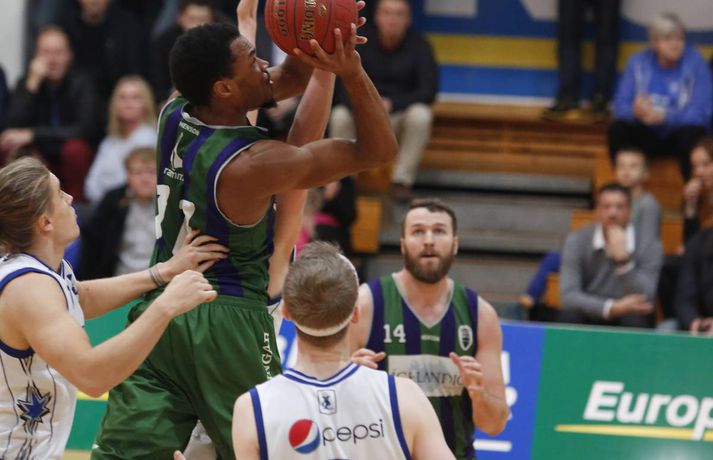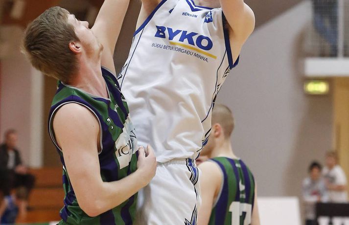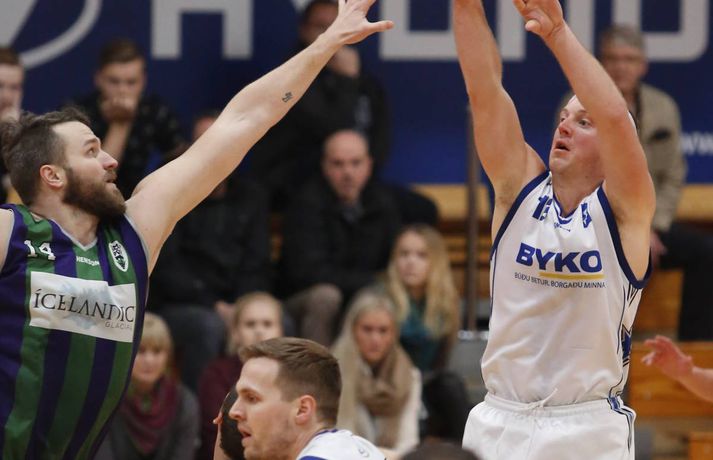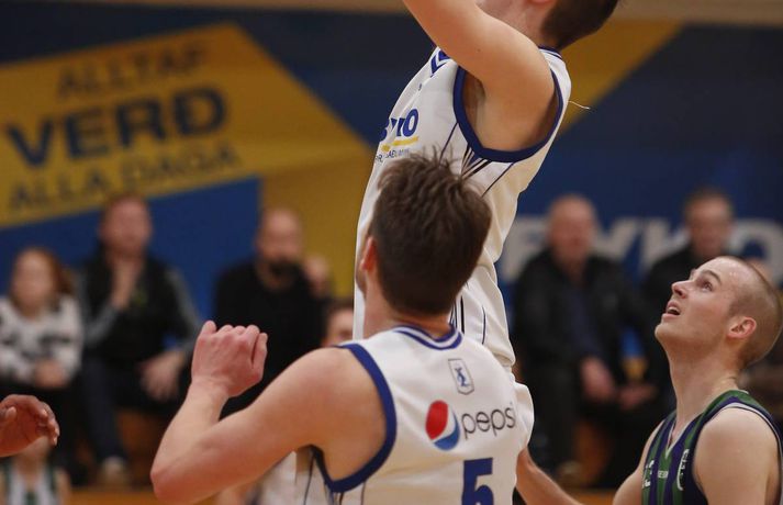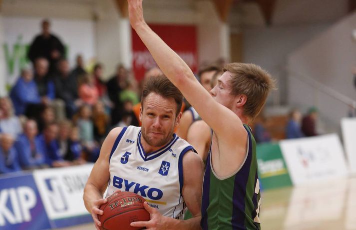 Stjarnan vann góðan sigur, 85-79, á Þór frá Þorlákshöfn í Domino-deild karla í körfubolta í kvöld en leikurinn var virkilega spennandi frá fyrstu mínútu. Leikurinn fór fram í Garðabæ og voru heimamenn sterkari aðilinn undir lok fjórða leikhlutans. Leikurinn byrjaði vel fyrir heimamenn sem voru með frumkvæðið fyrstu mínúturnar. Jarrid Frye, leikmaður Stjörnunnar, var tæpur af meiðslum fyrir leikinn en byrjaði á parketinu í kvöld. Hann fór mikinn í fyrsta leikhluta. Þrátt fyrir nokkuð góða byrjun hjá Garðbæingum voru Þórsarar frá Þorlákshöfn aldrei langt undan og þegar fyrsti leikhluti var búinn var staðan 26-18 fyrir Stjörnuna. Þórsarar voru ekki lengi að vinna til baka þennan átta stiga mun og var í raun allt annað að sjá til liðsins í öðrum leikhluta. Sóknarleikur þeirra gekk betur og liðið lét boltann vinna vel á milli leikmanna. Þegar rúmlega tvær mínútur voru eftir af fyrri hálfleiknum voru gestirnir búnir að jafna leikinn 36-36. Staðan í hálfleik var 41-39 fyrir Stjörnuna en stuttu áður komust Þórsarar í fyrsta skipti yfir og þá aðeins með einu stigi. Vincent Sanford var kominn með 15 stig fyrir Þórsara í hálfleik. Hjá Stjörnunni var það Justin Shouse sem var atkvæðamestur þegar leikurinn var hálfnaður og hafði þá gert 12 stig.Justin Shouse gefur stoðsendingu.vísir/valliGestirnir voru ekki lengi að komast yfir í síðari hálfleiknum og fljótlega var staðan orðin 50-46 fyrir Þór Þorlákshöfn. Gestirnir náðu mest sjö stiga forskoti í leikhlutanum, 57-50. Stjörnumenn voru ekkert á því að hleypa þeim langt fram úr sér og munaði aðeins þremur stigum fyrir lokaleikhlutann, 63-60. Það vantaði samt töluvert uppá sóknarleik liðanna beggja. Þórsara gerðu fimm fyrstu stig fjórða leikhlutans og munaði allt í einu átta stigum á liðunum, 68-60. Eftir það kom flottur sprettur hjá heimamönnum þegar þeir gerðu sex stig í röð og voru ekki lengi að því að minnka muninn niður í tvö stig. Gríðarleg spenna var út leiktímann en að lokum voru það heimamenn sem stóðu uppi sem sigurvegari en þeir unnu leikinn 85-79. Justin Shouse var atkvæðamestur í liði Stjörnunnar með 19 stig. Marvin Valdimarsson gerði 18 einnig fyrir Stjörnuna. Vincent Sanford gerði 23 stig fyrir Þórsara í kvöld.Stjarnan - Þór Þ.85-79 (41-39)Stig Stjörnunnar: Justin Shouse 19, Marvin Valdimarsson 18, Dagur Kár Jónsson 16, Jarrid Frye 15, Tómas Þórður Hilmarsson 6, Sigurður Dagur Sturluson 4, Jón Orri Kristjánsson 4, Ágúst Angantýsson 2, Jón Sverrisson 1.Stig Þórs: Vincent Senford 23, Nemanja Sovic 19, Tómas Heiðar Tómasson 16, Þorsteinn Már Ragnarsson 6, Emil Karel Einarsson 4, Oddur Ólafsson 4, Grétar Ingi Erlendsson 4, Baldur Þór Ragnarsson 3. Benedikt: Bæði lið voru léleg í kvöld„Við vorum yfir stóran hluta af síðari hálfleiknum og áttum alltaf góðan möguleika,“ segir Benedikt Guðmundsson, þjálfari Þórs, eftir leikinn. „Mér fannst þessi leikur í heild sinni hálf dapur. Ég átti nú von á betri leik frá báðum liðum.“ Benedikt segir að Stjörnumenn hafi einfaldlega verið sterkari undir lokin og klókari. „Þeir eiga þessi stig fyllilega skilið. Þó svo að leikirnir séu ekki vel spilaðir þá eru stigin alveg jafn mikilvæg.“ Hann vonaðist eftir að einhver leikmaður myndi stíga upp undir lokin í hans herbúðum en svo varð ekki. Marvin: Tókum saman í höfðinu„Við byrjuðum leikinn alveg ágætlega en svo komu Þórsararnir alveg brjálaðir í þriðja leikhlutann,“ segir Marvin Valdimarsson, leikmaður Stjörnunnar, eftir sigurinn í kvöld. „Eftir að þeir komust átta stigum yfir undir lokin byrjuðum við aðeins að taka saman í höfðinu og fórum að spila okkar bolta.“ Marvin segir að það hafi verið lykilatriði og um leið hafi liði byrjað að skora auðveldar körfur. „Þetta var alls ekki fallega spilaður leikur, bara hörku barátta allan tímann.“Leik lokið (85-79): Stjörnumenn betri undir lokin.40. mín (82-76): 27 sekúndur eftir og Stjörnumenn svo gott sem komnir með þennan sigur. Sigurður Dagur setur niður tvö stig og kemur heimamönnum sex stigum yfir. 39. mín (79-76): Marvin fer á línuna fyrir Stjörnuna og kemur þeim þremur stigum yfir.38. mín (77-76): Svakaleg spenna. Shouse að koma heimamönnum einu yfir.36. mín (75-74): Frye með risaþrist. Kemur Stjörnunni einu stigi yfir.34. mín (71-72): Rosaleg stig frá Marvin. Setur niður tvö skot, brotið á honum og hann þrumar einnig niður vítaskotinu. Þriggja stiga sókn.33. mín (68-70): Sex stig í röð frá heimamönnum og nú munar aðeins tveimur stigum.31. mín (60-68): Þórsarar skora fimm fyrstu stig leikhlutans og munar því átta stigum.3. leikhluta lokið (60-63): Jæja það munar bara þremur stigum á liðunum fyrir lokaleikhlutann.29. mín (55-57): Jarrid Frye með flotta körfu. Mikil spenna í Ásgarðinum. 27. mín (50-55): Jarrid Frye brýtur á Tómasi Tómassyni þegar hann er kominn einn upp að körfunni. Tómas setur boltann í körfuna og fær villu að auki. Mikil stemmning með Þór.26. mín (48-53): Rosalegur þristur frá Baldri Þór Ragnarssyni. Gestirnir mun betri núna. 25. mín (46-47): Dagur Kár með fína körfu fyrir Stjörnuna. 24. mín (43-47): Stjörnumenn ekki mættir til leiks í síðari hálfleiknum. 22. mín (43-43): Jafnt. Þórsarar virka flottir í upphafi síðari hálfleiksins.Hálfleikur (41-39): Hörku spennandi leikur hér í Garðabænum. Þórsarar komust áðan einu stigi yfir en Stjörnumenn leiða með tveimur í hálfleik.18. mín (36-35): Gestirnir að saxa vel á forskot Stjörnunnar. 17. mín (35-31): Magnað vítaskot frá Jarrid Frye. Hann dreif ekki á körfuna og var í raun langt frá því. Þetta sér maður ekki á hverjum degi frá eins góðum leikmanni.15 mín (34-27): 