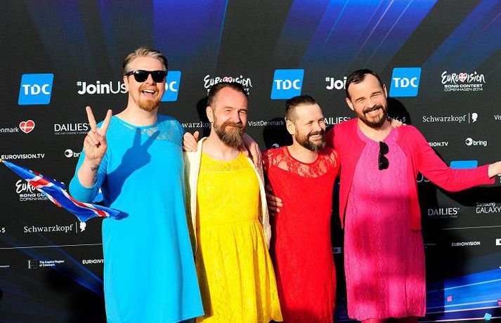 Skera sig úr í fjöldanum Vera Einarsdóttir skrifar 10. maí 2014 13:00 Í jakkafötunum Pollapönk hefur hvarvetna vakið athygli í litríkum útpældum fatnaði í aðdraganda Eurovision síðustu daga og skera meðlimir hljómsveitarinnar sig svo sannarlega úr í fjöldanum. Forsöngvari hljómsveitarinnar Heiðar Örn Kristjánsson er blái pollinn, Haraldur Freyr Gíslason rauði pollinn, Arnar Gíslason bleiki pollinn og Guðni Finnsson guli pollinn. Bakraddasöngvarinn Óttar Proppé er svo fjólublár og félagi hans Snæbjörn Ragnarsson appelsínugulur. Hópurinn fór út með sjö dress til skiptanna; íþróttagalla, kjóla, stuttbuxur og boli, morgunsloppa, lopapeysur, matrósaföt og jakkaföt. Þótt fatnaðurinn sé af ólíkum toga heldur hver polli sig við sinn lit. Pollarnir lögðu sjálfir mikið til hugmyndavinnunnar í kringum fatnaðinn en þeim innan handar var umboðsmaður þeirra Valgeir Magnússon, eða Valli sport, og leikmynda- og búningahöfundurinn Rebekka A. Ingimundardóttir, en hún hannaði búningana fyrir Eyþór Inga Gunnlaugsson í fyrra og Grétu Salóme og Jónsa árið 2012. „Aðkoma mín hefur oft verið meiri en nú. Í fyrra og hitteðfyrra hannaði ég alla búninga og árið 2012 leikstýrði ég atriði Grétu Salome. Pollapönkararnir eru einstakir og höfðu sínar hugmyndir en ég var þeim innan handar með að útfæra þær. Fleiri lögðu svo hönd á plóg; íþróttagallarnir eru eins og flestir vita frá Henson og kjólana gaf verslunin Curvy. Þá styrkti Oroblu strákana um sokkabuxur í réttum litum. Peysurnar eru frá Varma en stílistinn Alda Guðjónsdóttir á heiðurinn að jakkafötunum,“ segir Rebekka. Sjálf hannaði hún matrósafötin og samfestinga bakraddanna. „Klæðskera- og sníðameistarinn Elma Bjarney Guðmundsdóttir saumaði búningana ásamt Maggý Dögg Emilsdóttur en auk þess litaði ég sloppa, sokka og annað sem ekki var til í réttum litum,“ útskýrir Rebekka. Rebekka segir að með tilkomu samfélagsmiðla skipti ímynd hópsins, frá því að hann mætir á svæðið og þar til hann stígur á svið, sífellt meira máli og þarf að þaulhugsa ásýnd og framkomu hópsins frá degi til dags. En skyldu strákarnir vera með eitthvað búningatromp í hendi í kvöld? „Við gefum ekkert upp um það,“ segir Vallli. Hann hvetur fólk þó til að hafa augun opin. „Við höldum okkur að minnsta kosti við litina.“ Eurovision Mest lesið Hvað þýðir „six-seven“? Lífið Meðalmennskan plagar Brján Gagnrýni Aldrei of seint að prófa sig áfram Tíska og hönnun Vafðist tunga um tönn þegar Bond bar á góma Bíó og sjónvarp Kynslóðabilið kom í ljós þegar umræðan beindist að blautbolakeppni Lífið Eitt glæsilegasta hús Reykjavíkur til sölu Lífið Hótelstjóri Hótels Tindastóls er allur Bíó og sjónvarp Skein skært í sögulegum gleðikonukjól Tíska og hönnun Smáforrit til að deila heimilisverkum: „Fæ þrjú stig fyrir að þurrka af á heimilinu“ Lífið Troðningur á yfirfullri opnun: „Þetta var svolítið kreisí“ Lífið Fleiri fréttir Eitt glæsilegasta hús Reykjavíkur til sölu „Þetta er það fallegasta sem einhver hefur sagt um mig“ Hvað þýðir „six-seven“? Smáforrit til að deila heimilisverkum: „Fæ þrjú stig fyrir að þurrka af á heimilinu“ Kynslóðabilið kom í ljós þegar umræðan beindist að blautbolakeppni Ljúffengar banana- og kakóbollakökur í nestisboxið Troðningur á yfirfullri opnun: „Þetta var svolítið kreisí“ Pétur Kr. og Ingibjörg selja 270 fermetra eign við Ægisíðu Barist upp á líf og dauða „Get ekki hætt að hugsa um bragðarefinn sem hann pantaði“ Langþráður draumur verður að veruleika Samsæriskenningar notaðar sem stjórntæki Stjörnulífið: „Dagur sem mun aldrei gleymast“ Gisti hálft ár á sófum hjá bekkjarfélögum Betra að vera blankur nemi í New York Kynlífið innantómt með öðrum en fyrrverandi Fékk lífið til baka á korteri eftir tólf ár af sársauka Staðfesta loks sambandið Einar og Milla skírðu drenginn Með blæðandi hjarta og ber örin með stolti Krakkatían: Kvennafrídagurinn, Ólsen ólsen og málsháttur Áslaug Arna kom alblóðug inn í sjúkratjaldið Upplifði stöðugan ótta við helvíti í samfélagi múslima í Svíþjóð Getur alls ekki verið einn Fréttatía vikunnar: Ungfrú Ísland Teen, Louvre-þjófnaður og hrukkur Myndaveisla: Troðfullur miðbær á kvennafrídegi Borgarfulltrúi bjargaði stolnum barnavagni „Segið að ég sé samkynhneigður en ekki ljúga með hitt“ Notaði ákveðinn mat til að hjálpa í krabbameinsmeðferðinni „Konu“ tónleikar í Hvolnum á Hvolsvelli í kvöld Sjá meira