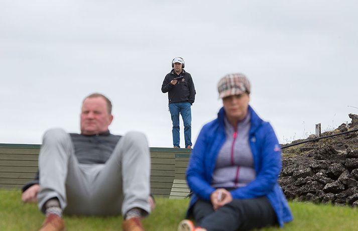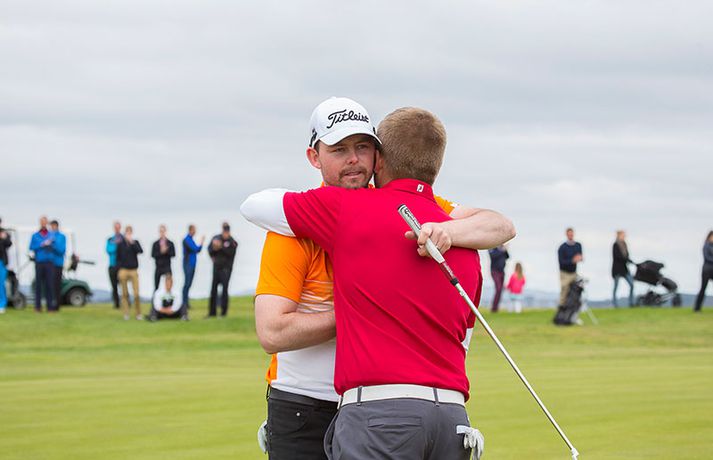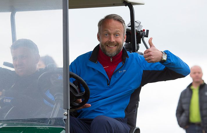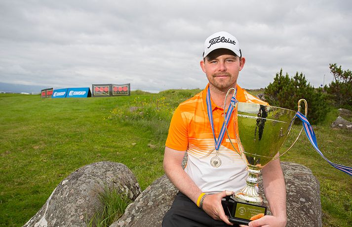 Vill ekkert segja um viðbrögð Úlfars | Myndir Eiríkur Stefán Ásgeirsson skrifar 30. júní 2014 06:15 Kristján Þór Einarsson með dóttur sinni eftir sigurinn á Hvaleyrarvelli í gær. Fréttablaðið/Daníel Kristján Þór Einarsson og Tinna Jóhannsdóttir stóðu uppi sem sigurvegarar á Íslandsmótinu í holukeppni sem fór fram við kjöraðstæður á Hvaleyrarvelli í Hafnarfirði. Kristján Þór, sem keppir fyrir Kjöl í Mosfellsbæ, hafði betur gegn Bjarka Péturssyni frá Golfklúbbi Borgarness í úrslitum en Tinna, sem keppti á heimavelli, vann Karen Guðnadóttur úr Golfklúbbi Suðurnesja.Daníel Rúnarsson, ljósmyndari 365, tók meðfylgjandi myndir á Hvaleyrarvelli um helgina. „Ég náði að bæta mig með hverjum hring eftir því sem leið á mótið,“ sagði Kristján Þór í samtali við Fréttablaðið en óhætt er að fullyrða að hann hafi farið erfiða leið að titlinum. Í fjórðungsúrslitum lagði hann Birgi Leif Hafþórsson, margfaldan Íslandsmeistara í höggleik, að velli og Harald Franklín Magnús, sem nýlega komst í átta manna úrslit á Opna breska áhugamannamótinu, í undanúrslitum. „Birgir Leifur er líklega besti kylfingur sem Ísland hefur átt og árangurinn sem Haraldur Franklín náði úti var frábær. Bjarki hefur svo spilað frábært golf alla helgina og ég held að hafi farið erfiðustu leiðina sem möguleg var, með fullri virðingu fyrir öðrum,“ sagði Kristján Þór. Kristján Þór lýsti á dögunum óánægju sinni með þá ákvörðun landsliðsþjálfarans Úlfars Jónssonar að velja hann ekki í landslið Íslands fyrir Evrópukeppni landsliða sem fer fram í Finnlandi í byrjun næsta mánaðar. „Hann segir mér óbeint að ég eigi ekkert heima í landsliðinu því ég á barn og er með annað á leiðinni. Hann telur að metnaðurinn sé ekki í golfinu,“ sagði Kristján Þór í umræddu viðtali við Vísi þann 20. júní síðastliðinn. „Ég kom virkilega „mótiveraður“ inn í þetta mót og vildi senda ákveðin skilaboð. Það gekk eftir með þessum sigri,“ segir Kristján Þór sem reiknar ekki með því að fá símtal frá landsliðsþjálfaranum eftir árangur helgarinnar. „Ég þarf bara að bíða og sjá. En ég hef litla trú á því,“ sagði Kristján en hann vildi ekki tjá sig um viðbrögð Úlfars sem sagði málið á sínum tíma vera „leiðinlegan misskilning“ og að hann hefði ekkert á móti Kristjáni. Næsta mót Kristjáns verður meistaramót Kjalar eftir tvær vikur en að því loknu hefur hann undirbúning fyrir Íslandsmótið í höggleik sem fer fram dagana 24.-27. júlí. „Það er enginn vafi á því að ég stefni að sigri á landsmótinu en ég verð svo bara að bíða og sjá til hvernig ágústmánuður verður hjá mér. Við eigum von á barni þá og framhaldið ræðst af því,“ sagði Kristján Þór að lokum. Golf Mest lesið Líður alltaf yfir hana þegar hún kemur í mark Sport „Hefði séð eftir því alla ævi“ Íslenski boltinn „Mjög sáttur með samninginn“ Íslenski boltinn „Hann ætti bara að skrifa afsökunarbiblíuna“ Körfubolti Scholes hættir og setur einhverfan son sinn í fyrsta sætið Enski boltinn Rekinn fyrir ummæli sín um krabbameinssjúka handboltagoðsögn Handbolti Rúmar tvær milljónir í boði ef þú finnur hundinn hans Aarons Ramsey Fótbolti Hefur spilað 16 mínútur og fengið tvö rauð spjöld Enski boltinn Magnús Már í viðræðum við HK Íslenski boltinn Real Madrid vill stórar skaðabætur frá UEFA Fótbolti Fleiri fréttir Gunnlaugur Árni í níunda sæti á heimslista Barnabarn Donalds Trump keppir á LPGA-mótaröðinni Mun líklegast aldrei komast yfir þetta Jack Nicklaus fær sex milljarða í meiðyrðamáli Íslenski Tígurinn vann æsispennandi mót í Mississippi Uppfyllti óskina og fékk soninn í fangið á átjándu Rory McIlroy vill verða fyrirliði Ryder-liðs Evrópu Tiger Woods í enn eina bakaðgerðina Segir að stuðningsmenn Bandaríkjanna hafi farið yfir strikið Sló golfhögg með krókódíl rétt fyrir aftan sig „Heimskulegt og asnalegt hjá mér“ „Ertu að horfa Donald Trump?“ Bjór kastað í konu McIlroy: „Þurfti að þola ótrúlegt magn af svívirðingum“ Evrópa marði Ryder-bikarinn á dramatískan hátt Bandaríkin í brekku en reyna að klóra í bakkann Grínisti hættir og biðst afsökunar á að hafa byrjað níðsöngva í garð Rory Fyrirliði Bandaríkjanna ver gjammandi stuðningsmennina Evrópa með afgerandi forystu fyrir lokadaginn Sagði áhorfanda að naglhalda kjafti Bandaríkin með bakið upp við vegg Fyrirliði Evrópu greinir frá því hvað Trump sagði við hann Trump missir ekki trúna: „Við munum klára þetta“ Bara einn spáði Bandaríkjunum sigri og annar vissi ekkert um Ryder-bikarinn „Keppni sem allir golfáhugamenn elska“ Svona hefst Ryder-bikarinn: „Viljum ná öflugri byrjun“ Þora ekki að horfa á strákinn vegna fúkyrðaflaums Fyrirliði Evrópu baunar á Bandaríkin: „Drifnir áfram af einhverju sem peningar geta ekki keypt“ Stjörnustjarfur þegar hann sá Zola á Ryder bikarnum Varar við áhorfendum á Ryder Cup: „Hey Rahmbo, hvar er Ozempicið?“ Bandarísku kylfingarnir gefa Ryder-launin eftir gagnrýni Sjá meira