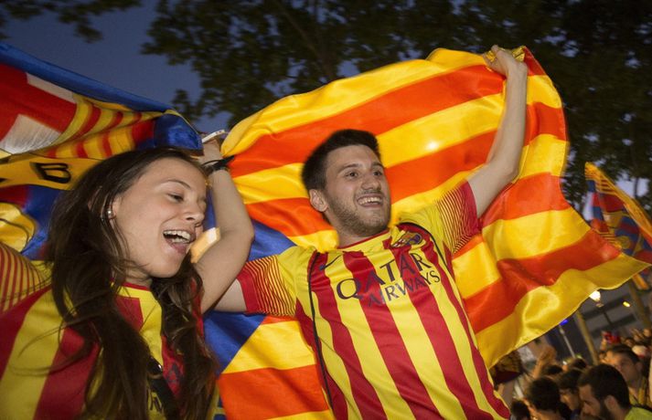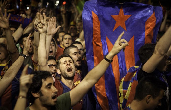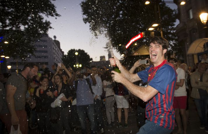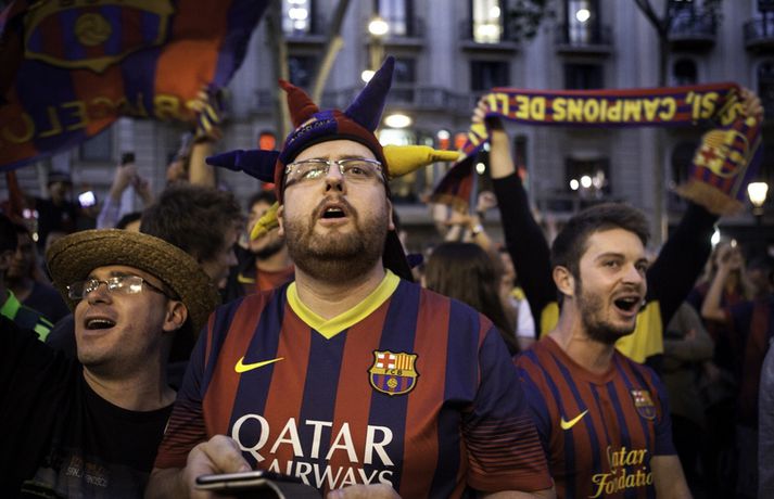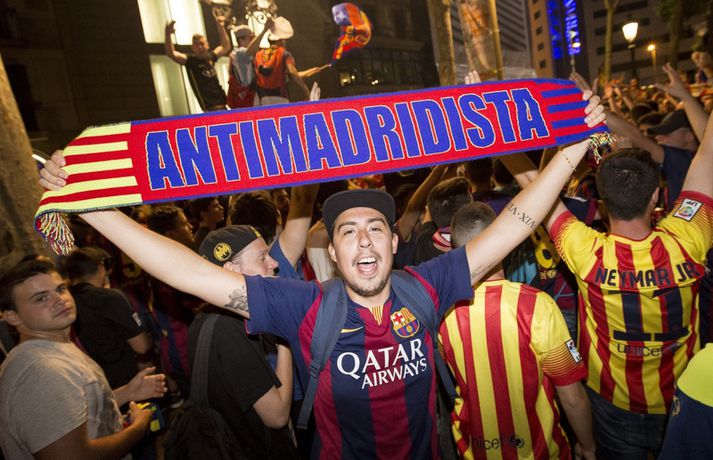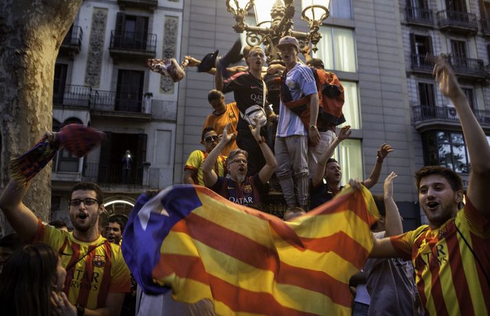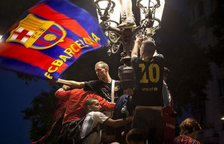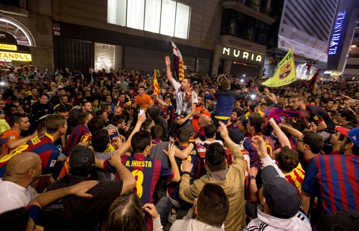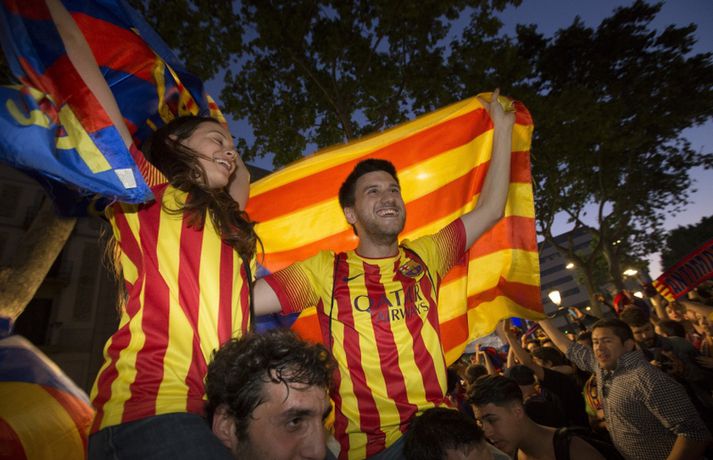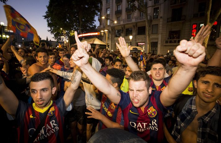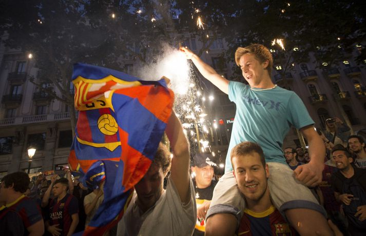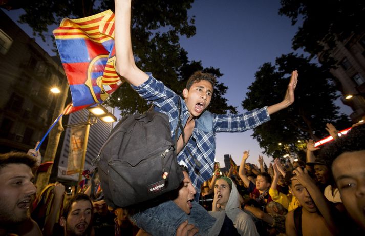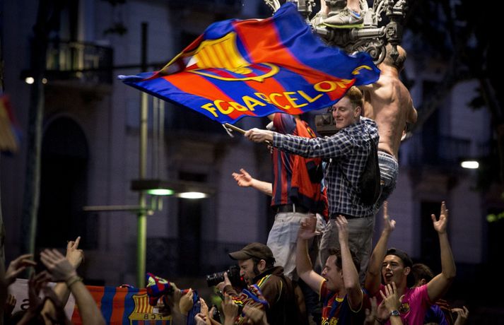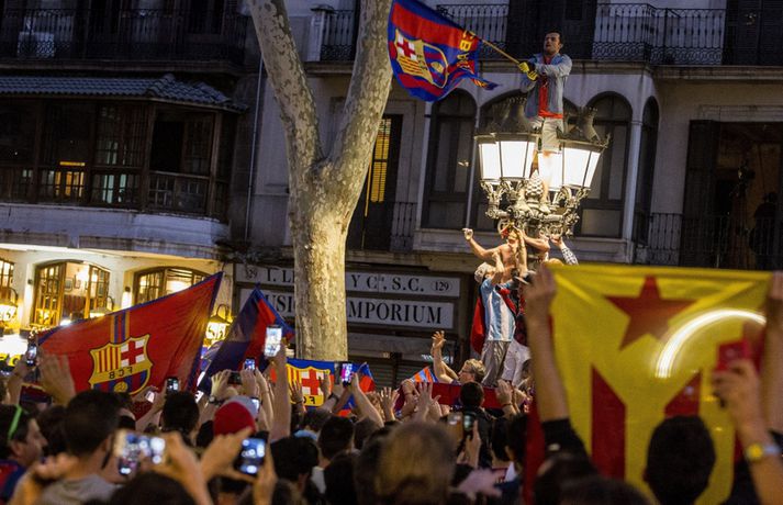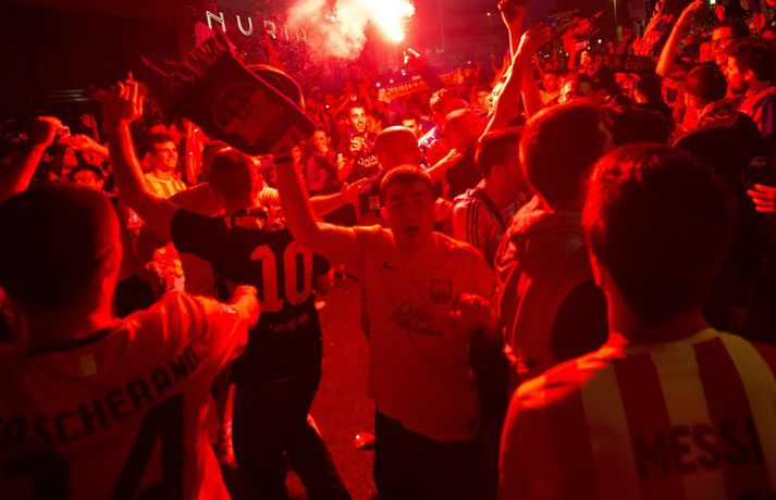 Gaman á Römblunni í gærkvöldi | Myndir Óskar Ófeigur Jónsson skrifar 18. maí 2015 13:00 Vísir/Getty Barcelona tryggði sér spænska meistaratitilinn í 23. sinn í gær þegar liðið vann 1-0 útisigur á fráfarandi meisturum í Atlético Madrid. Barcelona vann titilinn síðast 2013 en lenti í 2. sæti bæði 2012 og 2014. Börsungar unnu hann aftur á móti þrjú ár í röð frá 2009 til 2011. Lionel Messi skoraði eina mark leiksins á Vicente Calderón leikvanginum í gær og tryggði Barcelona þar með sjöunda meistaratitilinn síðan að Messi fór að spila með aðalliði félagsins. Börsungar eru ekki hætti því þeir geta enn unnið þrennuna. Framundan er bikarúrslitaleikur á móti Athletic Bilbao og úrslitaleikur Meistaradeildarinnar á móti ítalska liðinu Juventus. Stuðningsfólk Barcelona fjölmennti á Römbluna í gærkvöldi og fagnaði fyrsta titlinum á tímabilinu og það má sjá myndir af fögnuði þeirra hér fyrir neðan.Vísir/GettyVísir/GettyVísir/GettyVísir/GettyVísir/GettyVísir/GettyVísir/GettyVísir/Getty Spænski boltinn Tengdar fréttir Þrenna Ronaldo dugði skammt Real Madrid þarf að horfa á eftir titlinum til Barcelona en Katalóníuliðið er búið að tryggja sér meistaratitilinn. 17. maí 2015 16:30 Messi tryggði Barcelona titilinn á Spáni Skoraði eina markið í útisigri gegn Atlético og Barcelona orðið meistari. 17. maí 2015 16:30 Mest lesið Kristófer Acox kallar sig glæpamann Körfubolti Svona var blaðamannafundur Arnars Fótbolti Rooney að kenna að Liverpool er komið á sigurbrautina á ný? Enski boltinn Arnar Gunnlaugsson las yfir vælandi fýlupúkum hjá Real Madrid Fótbolti Mál Alberts truflar landsliðið ekki Fótbolti Littler kjörinn kynþokkafyllsti íþróttamaður heims Sport Hópurinn fyrir lokaleikina: Hörður og Jóhann snúa aftur Fótbolti „Ég myndi ekki óska neinum þess að lenda í þessu“ Fótbolti Besta tenniskona heims tekur þátt í nýrri „Baráttu kynjanna“ Sport Fékk faðmlag frá konu Diogo Jota í miðju maraþoni Enski boltinn Fleiri fréttir Dældi fyrri afrekum inn á Instagram eftir vonbrigðin Valdi Isak en ekki Gyökeres í fyrsta landsliðshópinn sinn Leiðir Breiðabliks og Damir skilja Mál Alberts truflar landsliðið ekki Stuðningsmenn Bröndby enn á ný í vandræðum Vonar að Jóhann og Hörður gefi jafn mikið af sér og Aron Orri Steinn lengra frá því að ná þessum leikjum en þeim í síðasta glugga Hópurinn fyrir lokaleikina: Hörður og Jóhann snúa aftur Svona var blaðamannafundur Arnars Rooney að kenna að Liverpool er komið á sigurbrautina á ný? Ánægð með að mæta Íslandi „Ég myndi ekki óska neinum þess að lenda í þessu“ Fékk faðmlag frá konu Diogo Jota í miðju maraþoni Arnar Gunnlaugsson las yfir vælandi fýlupúkum hjá Real Madrid Sjáðu sigurmark Liverpool á móti Real Madrid og mörkin hjá Arsenal í Prag „Við viljum koma Haukum á fótboltakortið“ Ógnaði leikmanni Tottenham með byssu út á götu Þurfti að kaupa nýjan iPhone fyrir alla í liðinu Segir Amorim ekki geta gert kraftaverk Arsenal jafnaði rúmlega aldargamalt félagsmet Jafnteflin ríkjandi í Meistaradeildinni í kvöld Liverpool vann risaslaginn Meistararnir lágu á heimavelli Sneypuför danskra til Lundúna Natasha semur við nýliða Grindavíkur/Njarðvíkur Slavia Prag engin fyrirstaða fyrir Arsenal Ráku lærlinga sem fögnuðu marki í beinni Falla fleiri gleðitár hjá fjölskyldu Viktors í kvöld? David Beckham aðlaður: „Ég gæti ekki verið stoltari“ Fram líka fljótt að finna nýja ást Sjá meira
