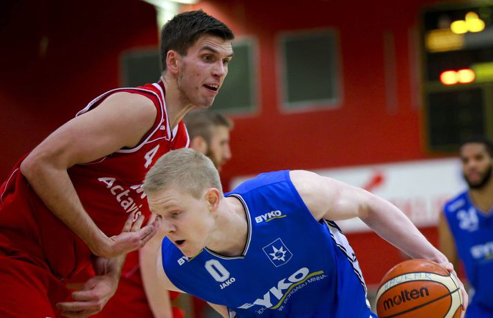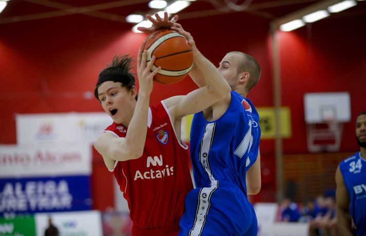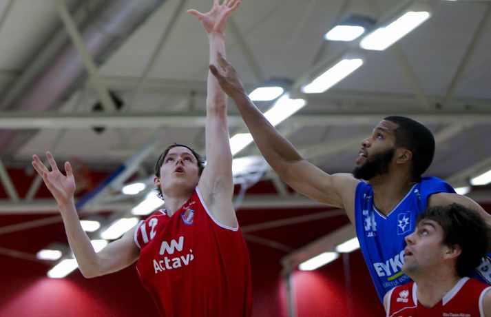 Stjarnan gerði góða ferð í Hafnarfjörðinn í kvöld og vann sannfærandi sigur á slöppu liði Hauka.Vilhelm Gunnarsson, ljósmyndari 365, var á vellinum og tók meðfylgjandi myndir. Eftir jafnan fyrri hálfleik tóku Stjörnumenn yfir leikinn í þriðja leikhluta með Al'lonzo Coleman í stóru hlutverki. Frábær varnarleikur sá til þess að Haukar áttu ekki afturkvæmt í fjórða leikhluta, þegar þeir freistuðu þess að koma með áhlaup. Flestir í Stjörnunni að spila vel á meðan að Kári Jónsson virtist sá eini í liði Haukanna sem var að spila af eðlilegri getu. Stjarnan hefur ekki náð að vinna tvo deildarleiki í röð í allan vetur en kvittaði þó fyrir slæmt tap á heimavelli gegn Þór í síðustu umferð með sigrinum í kvöld. Ef þetta er það sem koma skal veit það á gott fyrir Garðbæinga en þeir hafa átt erfitt með að halda dampi í deildinni hingað til. Haukum var hins vegar skellt niður á jörðina eftir þrjá sigra í röð og rúmlega 50 stiga sigur á ÍR í síðustu umferð. Bæði lið eru nú jöfn með átta stig. Varnarleikurinn var í fyrirrúmi í fyrri hálfleik en staðan að honum var jöfn, 36-36. Það var rétt svo í lok fyrri hálfleiksins að liðin komust yfir 30 stigin með nokkrum þriggja stiga körfum. Haukarnir voru lengur að komast í gang en Kári Jónsson snögghitnaði í öðrum leikhluta og náði forystu fyrir Hauka með tveimur þriggja stiga körfum undir lok fyrri hálfleiks. Aðeins flautuþristur Al'lonzo Coleman sá til þess að leikar stóðu jafnir að honum loknum. Stjörnumenn tóku völdin í þriðja leikhluta. Ágúst Angantýsson og Marvin Valdimarsson spiluðu einkar vel undir körfunni í sókninni en það var fyrst og fremst frábær varnarleikur sem skildi á þá á milli liðanna. Gestirnir þvinguðu Hauka í erfið skot, hvað eftir annað. Það gekk upp og Haukar skoruðu aðeins tíu stig í leikhlutanum, en Stjarnan 27. Eftirleikurinn var í raun bara formsatriði fyrir Garðbæinga. Coleman átti frábæran leik fyrir Stjörnuna í kvöld og daðraði við þrefalda tvennu (29/10/7). Ef liðið nær að nýta hann jafn vel undir körfunni og Stjörnumenn gerðu í kvöld opnar það fyrir menn eins og Marvin og Ágúst, sem áttu báðir góðan leik í kvöld. Justin Shouse hefur oft spilað betri tölum en hann gerði í kvöld en sýndi þrátt fyrir það enn og aftur hversu mikilvægur hann er sínu liði. Kári var langbesti maður Haukanna í kvöld með 22 stig, 9 fráköst og sex stoðsendingar. En Hafnfirðingar þurfa mun stærra framlega frá jafn mikilvægum mönnum eins og Stephen Madison og Emil Barja í sókinni. Finnur Atli Magnússon var einnig langt frá sínu besta. Ef Haukar ætla sér að blanda sér af alvöru í toppbaráttu deildarinnar eins og þeir hafa gefið í skyn síðustu vikurnar þurfa þeir að spila mun betur í jafn mikilvægum leikjum í kvöld. Stjörnumenn sýndu hins vegar góða hlið á sér í kvöld en það hafa þeir áður gert en ekki náð að fylgja því eftir. Það þurfa þeir að gera til að halda í við topplið deildarinnar.Haukar-Stjarnan 73-85 (21-20, 15-16, 10-27, 27-22)Haukar: Kári Jónsson 22/9 fráköst/6 stoðsendingar, Stephen Michael Madison 16/4 fráköst, Haukur Óskarsson 14/5 fráköst, Hjálmar Stefánsson 10/5 varin skot, Emil Barja 4/8 fráköst/6 stoðsendingar, Finnur Atli Magnússon 4/5 fráköst/6 stoðsendingar/3 varin skot, Kristinn Jónasson 3.Stjarnan: Al'lonzo Coleman 29/10 fráköst/7 stoðsendingar, Marvin Valdimarsson 13/5 fráköst, Justin Shouse 13/4 fráköst, Ágúst Angantýsson 12, Daði Lár Jónsson 7, Tómas Heiðar Tómasson 7/6 stoðsendingar, Magnús Bjarki Guðmundsson 3, Sæmundur Valdimarsson 1/8 fráköst.Hrafn: Tókum þetta skrefi lengra Stjarnan hefur skipst á að vinna og tapa deildarleikjum í allan vetur og það varð engin breyting þar á í kvöld. Hrafn Kristjánsson, þjálfari Stjörnunnar, var ánægður með að sjá góðu hliðina á sínu liði í kvöld. „Við spiluðum frábærlega í dag en það er vel pirrandi að bjóða bara upp á þetta í öðrum hverjum leik. En núna er lag og við eigum mjög stóran leik gegn Njarðvík á heimavelli í næstu umferð,“ sagði Hrafn. „Vonandi náum við að koma okkur á smá skrið með þeim leik.“ Hann segir að Coleman nýtist liðinu vel þegar hann er dekkaður af tveimur stórum mönnum eins og var tilfellið í kvöld. „Hann er með ákveðna kosti í sóknarleik sínum sem er erfitt að eiga við. Við reyndum að stíla inn á það. En heilt yfir var sóknarflæðið okkar mjög gott og varnarleikurinn lengst af einstaklega góður.“ Stjörnumenn kláruðu leikinn í þriðja leikhluta en Haukar létu dómgæsluna þá fara í taugarnar á sér. En Hrafn hrósaði dómurunum fyrir frammistöðuna sína. „Ég vil minnast á að þeir stóðu sig vel á þeim kafla. Það voru mikil læti í húsinu en við stóðum oftast teinréttir og reyndum að komast fyrir hvert skot. Mér fannst dómararnir taka hárrétta línu þá.“ „Við þurftum ekki að kortleggja Haukana mikið. Það spila svo mörg lið þríhyrninginn og við þurftum að passa okkur á að vera nægilega vel á tánum og það tókst.“ „Núna tóku menn þá ákvörðun að taka þetta einu skrefi lengra. Að gera sendingar erfiðar, pressa boltann og hætta að stytta sér leið. Það skiptir gríðarlega miklu máli gegn jafn sterku liði og Haukum.“Kári Jónsson.Vísir/VilhelmKári: Vorum of flatir Kári Jónsson átti flottan leik fyrir Hauka í kvöld en það dugði ekki til gegn Stjörnunni á Ásvöllum. „Þetta var alls ekki gott. Við erum ekki sáttir. Við vorum flatir frá fyrstu mínútu og náðum aldrei að komast í takt við leikinn,“ sagði Kári eftir leikinn í kvöld. „Við vorum alltaf að elta og það fór mikill kraftur í það. Þetta var ekki bara nóg