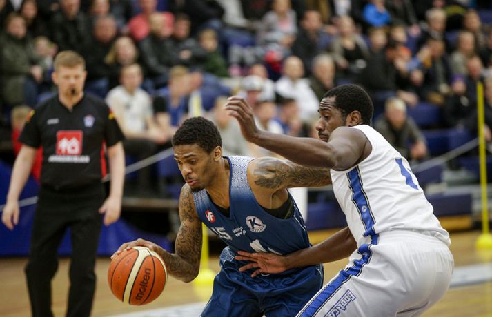 Umfjöllun, viðtöl og myndir: ÍR - Keflavík 87-95 | Keflavík aftur á sigurbraut með seiglusigri Kristinn Páll Teitsson í Hertz-hellinum skrifar 10. desember 2015 21:15 Keflavík komst aftur á sigurbraut með sannkölluðum seiglusigri á ÍR í Dominos-deild karla. Eftir að hafa verið undir bróðurpart leiksins tókst Keflvíkingum að gera út um leikinn í fjórða leikhluta og vinna 95-87 sigur. ÍR-ingar leiddu fyrstu þrjá leikhluta leiksins en slakur sóknarleikur liðsins í fjórða leikhluta gerði útslagið og sigldu Keflvíkingar sigrinum heim. Keflavík var enn á toppi Dominos-deildarinnar en liðið hafði tapað tveimur leikjum í röð fyrir leik kvöldsins, þeim seinni í óvæntum tapi gegn nýliðum FSu í Keflavík á dögunum. Batamerki hafa verið á spilamennsku ÍR-inga undanfarnar vikur en ÍR var búið að vinna tvo leiki í röð eftir að hafa skipt um þjálfara á dögunum. ÍR-ingar mættu einfaldlega mun grimmari til leiks í fyrsta leikhluta, sóttu mikið inn að körfunni og náðu tólf stiga forskoti strax á upphafsmínútum leiksins. Komu flest stig liðsins úr einföldum skotum úr teignum og áttu Keflvíkingar fá svör á upphafsmínútunum. Eftir því sem leið á leikhlutann fóru ÍR-ingar að leita meira í stökkskotin með litlum árangri og nýttu Keflvíkingar sér það til að saxa á forskotið niður í fimm stig fyrir lok fyrsta leikhluta, 24-19. ÍR-ingar héldu áfram að reyna að skjóta í upphafi annars leikhluta en liðið klúðraði fimm þriggja stiga tilraunum í röð þrátt fyrir að skotin væru oft galopin og nýttu Keflvíkingar þann kafla til þess að ná forskotinu um miðbik annars leikhluta. Við það fóru ÍR-ingar aftur að sækja inn að körfunni í auknum mæli og náðu forskotinu aftur fyrir lok fyrsta leikhluta í stöðunni 43-41. Jafnræði var með liðunum í þriðja leikhluta en líkt og í fyrstu tveimur leikhlutunum voru ÍR-ingar yfirleitt skrefinu á undan. Keflvíkingum tókst hinsvegar að minnka muninn niður í eitt stig fyrir lok leikhlutans í stöðunni 68-67 fyrir ÍR. Það virtist vera einhver taugatitringur í leikmönnum ÍR í fjórða leikhluta en þeir misstu Keflavík þegar mest var átta stigum fram úr sér tveimur mínútum fyrir lok leiksins eftir að hafa leitt leikinn lengst af. ÍR-ingum tókst þó að vinna sig aftur inn í leikinn og minnkuðu muninn niður í 4 stig mínútu fyrir leikslok en lengra komust þeir ekki. Skotin duttu ekki fyrir ÍR-inga á lokamínútunni og sigldu Keflvíkingar sigrinum heim á lokametrunum. Jonathan Mitchell var atkvæðamestur í liði ÍR með 24 stig ásamt því að taka 11 fráköst en Oddur Rúnar Kristjánsson bætti við 23 stigum. Í liði Keflavíkur var það Earl Brown sem var stigahæstur með 27 stig en næstur kom Valur Orri Valsson með 24 stig.Sigurður messar yfir sínum mönnum í leiknum í kvöldVísir/VilhelmSigurður: Ánægður með það hvernig menn komu inn af bekknum „Við þurftum heldur betur að hafa fyrir þessu. ÍR-ingar spiluðu frábærlega í byrjun, bæði í vörn og sókn og við þurftum að leita vel til þess að finna lausnir til að stoppa þá,“ sagði Sigurður Ingimundarson, þjálfari Keflavíkur, léttur að leikslokum. „Það gekk ágætlega, ég er ánægður með hvernig menn komu inn af bekknum og smátt og smátt varð spilamennskan okkar betri og við unnum að lokum frábæran sigur á góðu liði ÍR.“ Eftir tvo tapleiki í röð er Keflavík komið aftur á sigurbraut en lærisveinar Sigurðar byrjuðu leikinn ekki nægilega vel. „Við vorum ekkert að hugsa út í þessa tvo tapleiki, við hugsum bara alltaf út í næsta leik. Við höfum byrjað áður svona illa en það sem skiptir máli er að vera inn í leiknum þegar líða tekur á leikinn.“ Sigurður sá jákvæða punkta sem og neikvæða í spilamennskunni. „Það eru nokkrir jákvæðir punktar en það eru fleiri punktar sem við þurfum að vinna betur í. Við þurfum að bæta varnarleikinn og koma meiri hreyfanleika á sóknarleikinn,“ sagði Sigurður sem sagðist vera orðinn vanur því að andstæðingarnir reyndu að keyra inn að körfunni. „Við erum náttúrulega með lítið lið inná og með tvo leikmenn sem geta verið að berjast þarna í vörninni. Earl spilaði illa í vörninni í dag en Davíð barðist vel.“Borce var snyrtilegur á hliðarlínunni í kvöld.Vísir/VilhelmBorce: Átti von á því að spilamennskan yrði sveiflukennd „Það er alltaf svekkjandi að tapa leikjum og þetta svíður þar sem við vorum yfir stærstan hluta leiksins,“ sagði Borce Ilievski, þjálfari ÍR, svekktur að leikslokum. „Hlutirnir fóru ekki eins og við vildum undir lokin og fyrir vikið töpuðum við þessum leik en ég vill óska Keflavík til hamingju með sigurinn.“ Þrátt fyrir tapið sá Borce jákvæða punkta á leik ÍR í kvöld en ÍR hafði unnið tvo leiki í röð fyrir leik kvöldsins. „Við þurfum að vinna í ýmsu og ég átti von á því að spilamennskan yrði sveiflukennd. Við ætluðum að treysta á varnarleik liðsins í kvöld en skotin okkar voru einfaldlega ekki að detta. Við byrjuðum vel en eftir smá stund hættu skotin okkar að detta, sérstaklega eftir að Keflavík fór í svæðisvörn.“ ÍR-ingar hittu aðeins úr 15% þriggja stiga skota sinna í fyrri hálfleik þrátt fyrir að hafa fengið nokkuð góð skot. „Við hittum vanalega úr þessum skotum og þetta hafði áhrif á sjálfstraust leikmannana fyrir seinni hálfleikinn en strákarnir mínir börðust til lokaflautsins gegn toppliði deildarinnar.“ Borce segir að lið geti ekki slakað á gegn jafn sterku liði og Keflavík. „Þeir eru með það sterkt lið að þótt þeir hafi verið í villuvandræðum með leikmenn eins og Magnús þá spila þeir vel. Þeir léku með mikið sjálfstraust undir lokin og Ágúst setti niður tvæ