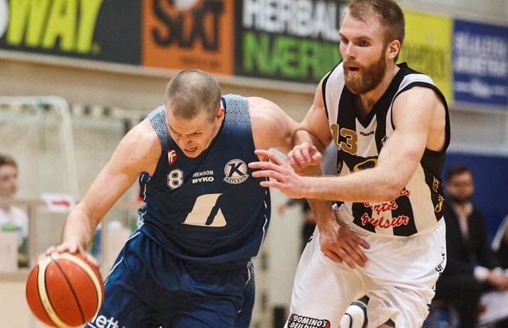 KR-ingar kafsigldu Keflvíkinga á upphafsmínútunum í 103-87 sigri í lokaleik 18. umferðar í Dominos-deild karla í kvöld. KR-ingar leiddu með 20 stigum að fyrsta leikhluta loknum og héldu öruggu forskoti allt til loka leiksins. Áttu flestir von á spennandi leik milli toppliðanna tveggja en KR-ingar voru ekki lengi að ná yfirhöndinni á heimavelli í kvöld.Anton Brink, ljósmyndari Fréttablaðsins og Vísis, var í DHL-höllinni í kvöld og tók myndirnar sem fylgja umfjölluninni. Náðu KR-ingar 20 stiga forskoti í fyrsta leikhluta og mest 28 stiga forskoti í leiknum en Keflvíkingar áttu fá svör við öflugum sóknar- og varnarleik KR framan af. Með sigrinum nær KR fjögurra stiga forskoti á toppi Dominos-deildarinnar ásamt því að vera með yfirhöndina í innbyrðis viðureignunum gegn Keflavík þegar aðeins fjórar umferðir eru eftir. Var um að ræða toppslag af bestu gerð en liðin tvö sátu í efstu sætum deildarinnar fyrir leik kvöldsins. Með sigri í kvöld gátu KR-ingar stigið stórt skref í átt að því að tryggja sér heimavallarétt í úrslitakeppninni en Keflvíkingar gátu jafnað KR-inga að stigum með sigri. Keflavík vann fyrri leik liðanna í Keflavík með átta stigum, 89-81 og gátu KR-ingar því náð yfirhöndinni í innbyrðis viðureigninni með stórum sigri í kvöld. Það mátti ekki sjá neina bikarþreytu hjá KR-ingum í upphafi leiks sem einfaldlega keyrðu yfir Keflvíkinga á upphafsmínútunum. Varnarleikur liðsins hélt vel og sóknarleikur liðsins gekk eins og smurð vél. Keflvíkingar áttu í stökustu vandræðum með Michael Craion undir körfunni og hann var duglegur að koma boltanum út á liðsfélaga sína sem voru að hitta vel úr þriggja stiga skotunum. Fór svo að KR-ingar leiddu verðskuldað með tuttugu stigum að fyrsta leikhluta loknum, 36-16 en Keflvíkingar virtust engin svör eiga gegn sterkri vörn heimamanna sem hélt Jerome Hill stigalausum í fyrsta leikhluta. Hill átti eftir að láta til sín taka í öðrum leikhluta en Keflvíkingum tókst að nýta sér villuvandræði Craion og minnka muninn niður í þrettán stig um miðbik annars leikhluta.Craion var stigahæstur í liði KR í kvöld.Vísir/AntonÞá byrjaði KR-vélin að malla á ný og KR-ingar náðu aftur átján stiga forskoti undir lok fyrri hálfleiks 57-39. Héldu vandræði Keflvíkinga inn í vítateig KR-inga áfram en Keflavík var aðeins með 27% nýtingu innan þriggja stiga línunnar í fyrri hálfleik. Líkt og oft áður í vetur settu KR-ingar í gír í þriðja leikhluta og voru komnir með 26 stiga forskot fyrir lokaleikhlutann 84-58. KR-ingar áttu einfaldlega svör við öllu því sem Keflavík reyndi í leikhlutanum og virtist gera út um leikinn fyrir lokaleikhlutann. Liðin héldu sínum bestu mönnum inni allan fjórða leikhluta þrátt fyrir að úrslitin væru ráðin og var barist fram á lokasekúndur leiksins en holan sem Keflvíkingar grófu sér í upphafi reyndist einfaldlega of stór til að vinna upp. KR-ingar fögnuðu að lokum 16 stiga sigri en KR er nú með fjögurra stiga forskot og þurfa aðeins að vinna tvo af síðustu fjórum leikjum liðsins til þess að tryggja sér deildarmeistaratitilinn. Craion var atkvæðamestur í liði KR með með 21 stig en Pavel Ermolinskij var hársbreidd frá þrefaldri tvennu með 13 stig, 13 fráköst, 9 stoðsendingar og þrjú varin skot. Í liði Keflavíkur var það Jerome Hill sem fór fyrir liðinu með 17 stig og 18 fráköst en fyrir utan annan leikhluta þegar Craion var í villuvandræðum náði hann sér ekki á strik í kvöld.KR-Keflavík 103-87 (36-16, 21-23, 27-19, 19-29)KR: Michael Craion 21/5 fráköst/3 varin skot, Helgi Már Magnússon 18, Pavel Ermolinskij 13/13 fráköst/9 stoðsendingar/3 varin skot, Brynjar Þór Björnsson 12/4 fráköst/5 stoðsendingar, Ægir Þór Steinarsson 11, Darri Hilmarsson 10/4 fráköst, Þórir Guðmundur Þorbjarnarsson 7, Björn Kristjánsson 6/6 fráköst, Snorri Hrafnkelsson 5/4 fráköst.Keflavík: Jerome Hill 17/18 fráköst/6 stoðsendingar, Guðmundur Jónsson 14/8 fráköst, Reggie Dupree 12, Magnús Þór Gunnarsson 11, Valur Orri Valsson 11/5 stoðsendingar, Andrés Kristleifsson 7, Magnús Már Traustason 6, Davíð Páll Hermannsson 4, Ágúst Orrason 3, Andri Daníelsson 2.Finnur gefur skipanir inn á völlinn.Vísir/AntonFinnur: Settum tóninn strax í byrjun „Við settum tóninn strax í byrjun í vörninni, þeir áttu erfitt með að skora en náðu að halda sér inn í þessu með erfiðum skotum. Heilt yfir fannst mér þetta aldrei í hættu,“ sagði Finnur Freyr Stefánsson, þjálfari KR, sáttur að leikslokum. Með sigrinum í kvöld gekk KR langt með að tryggja sér deildarmeistaratitilinn þegar fjórar umferðir eru eftir. „Við erum búnir að setja okkur í góða stöðu, sérstaklega eftir að Stjarnan tapaði um daginn en við þurfum að halda áfram að bæta okkur. Þetta var bara einn leikur af 22 og við þurfum að undirbúa okkur fyrir úrslitakeppnina sem er framundan. Við getum ekkert slakað á þótt að við séum í góðri stöðu.“ Sigurinn í kvöld tryggði það að KR hafði betur í innbyrðis viðureignum liðanna í vetur og þarf KR því að tapa þremur af síðustu fjórum til þess að önnur lið eigi möguleika á að stela deildarmeistaratitilinum. „Við vissum hvað við þyrftum að gera til þess að ná því. Fyrsta markmiðið var að vinna leikinn og við vildum klára þetta svona en þetta er leiðinleg regla að mínu mati,“ sagði Finnur og bætti við: „Fjórði leikhlutinn fer út í eitthvað rugl, við fórum að halda í stað þess að leikurinn væri búinn og við gætum leyft bekknum að spila en svona er þetta. Keflavík átti góðar rispur þarna í fjórða leikhluta.“ Finnur hrósaði vinnuframlagi leikmanna sinna í kvöld. „Ægir var að ná að loka vel á