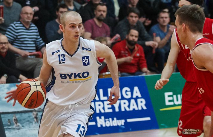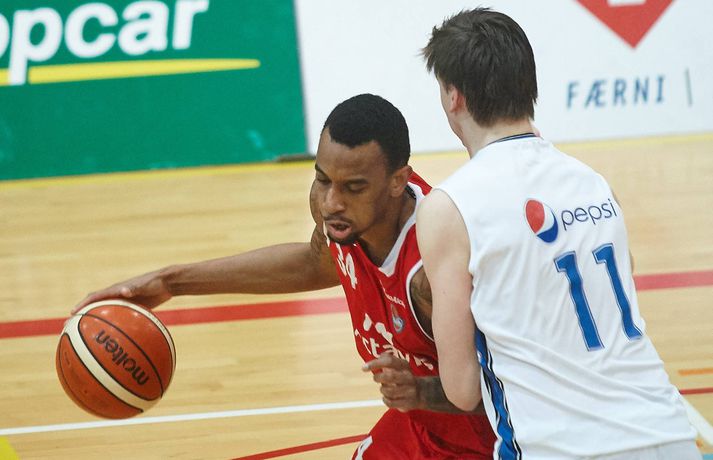 Haukar unnu sinn fjórða leik í röð í Domino's deild karla þegar liðið bar sigurorð af Stjörnunni, 70-77, í Ásgarði í kvöld.Anton Brink, ljósmyndari Fréttablaðsins og Vísis, var í Ásgarði og tók meðfylgjandi myndir. Leikurinn var gríðarlega spennandi og réðust úrslitin ekki fyrr en í framlengingu. Haukar virtust vera búnir að landa sigrinum en þeir leiddu með sex stigum, 57-63, þegar tvær og hálf mínúta lifðu leiks. En Stjörnumenn voru ekki dauðir úr öllum æðum og leiddir áfram af Tómasi Heiðari Tómassyni skoruðu þeir átta stig í röð og náðu forystunni, 65-63, þegar hálf mínúta var eftir. Skot Emils Barja geigaði að loknu leikhléi Hauka sem neyddust til að senda Tómas Heiðar á vítalínuna. Hann hitti úr fyrra vítinu en brenndi af því seinna og Haukar fengu tækifæri til að jafna. Boltinn var í höndunum á yngsta manninum á vellinum, Kára Jónssyni, sem átti að taka lokaskotið. Tómas Heiðar spilaði nær fullkomna vörn á Kára en þessi 18 ára frábæri leikmaður fann einhvern veginn smá pláss til að láta skotið ríða af. Og það söng í netinu; þrjár sekúndur á klukkunni og staðan 66-66. Al'lonzo Coleman reyndi síðasta skot venjulegs leiktíma sem geigaði og því þurfti að framlengja. Þar reyndust Haukarnir sterkari. Coleman skoraði reyndar fyrstu stig framlengingarinnar en Haukar svöruðu með 11-0 kafla og gengu þar með frá leiknum. Vörn gestanna var frábær og Stjörnumenn áttu engin svör við henni. Lokatölur 70-77, Haukum í vil. Frábær sigur hjá Haukunum, þrátt fyrir að fá ekkert framlag frá Bandaríkjamanninum Brandon Mobley. Hann skoraði aðeins tvö stig og fékk sína fimmtu villu um miðjan 4. leikhluta. Á móti kemur að Justin Shouse gat ekki leikið með Stjörnunni í kvöld vegna meiðslanna sem hann varð fyrir í leiknum gegn Þór í síðustu umferð og þá var Marvin Valdimarsson ekki 100% klár.Kári tryggði Haukum framlengingu með magnaðri körfu.vísir/antonSóknarleikur beggja liða var gríðarlega stirður í 1. leikhluta en til marks um það hittu þau aðeins úr samtals 10 af 39 skotum sínum utan af velli. Magnús Bjarki Guðmundsson kom inn í byrjunarlið Stjörnunnar fyrir Justin og það var greinilegt að dagsskipun Hauka var að láta reyna á strákinn. Emil sótti grimmt á Magnús í upphafi leiks en hitti ekki neitt en aðeins eitt af sex skotum hans fór ofan í í 1. leikhluta. Magnús stóð fyrir sínu í vörninni og setti auk þess niður tvo þrista í fyrri hálfleik. Haukur Óskarsson var sprækastur Haukamanna í sókninni en hann skoraði 14 stig í fyrri hálfleik. Mobley náði sér hins vegar engan veginn á strik en hann skoraði ekki stig í fyrri hálfleik og tók aðeins eitt frákast. Tómas Þórður Hilmarsson spilaði hörkuvörn á Mobley sem lenti í villuvandræðum í 2. leikhluta. Landi Mobleys í Stjörnuliðinu, Coleman, var sveiflukenndur í fyrri hálfleik. Kristinn Marinósson fékk það verkefni að dekka Coleman eftir að hann kom inn á og fórst það vel úr hendi framan af. En um miðjan 2. leikhluta var eins og einhver hefði kveikt á rofa á Coleman. Hann fór að ná sér í betri stöður undir körfunni og skoraði níu af síðustu 11 stigum Stjörnunnar í fyrri hálfleik. En á meðan Coleman bæði heitur og kaldur þá voru skytturnar úr Grafarvoginum, Tómas Heiðar og Arnþór Freyr Guðmundsson, bara kaldar en þeir félagar brenndu af öllum 11 skotum sínum í fyrri hálfleik. Þrátt fyrir það var skotnýting Stjörnunnar mun betri en Hauka (39%-24%). Haukar voru hins vegar duglegir að koma sér á línuna en þeir skoruðu 10 stig úr vítum í fyrri hálfleik. Sama jafnræðið var með liðunum í seinni hálfleik en liðin skiptust alls 16 sinnum á forystunni í kvöld. Arnþór Freyr kom Stjörnunni í 45-42 með sinni fyrstu körfu en þá kom frábær kafli hjá Haukum sem skoruðu 14 stig gegn aðeins þremur og þeir leiddu með átta stigum, 48-56, að 3. leikhluta loknum. Lokakarfa leikhlutans var eftirminnileg en Haukur grýtti þá boltanum yfir endilangan völlinn og ofan í körfu Stjörnumanna. Þessi þrjú stig reyndust dýrmæt þegar uppi var staðið. Haukar voru með yfirhöndina lengst af 4. leikhluta og náðu mest níu stiga forskoti, 50-59. En sem fyrr sagði gáfust Stjörnumenn ekki upp og voru komnir í lykilstöðu til að vinna leikinn. Kári sá hins vegar til þess að það gerðist ekki og í framlengingunni var aldrei spurning hvorum megin sigurinn myndi enda.Coleman skoraði 20 stig og tók 19 fráköst í liði Stjörnunnar.vísir/antonFinnur Atli Magnússon var stigahæstur í liði Hauka en hann lék sinn besta leik í rauðu treyjunni í kvöld. Finnur skoraði 20 stig, tók 13 fráköst og varði fjögur skot. Haukur og Kári voru báðir með 19 stig en sá síðarnefndi gaf einnig sex stoðsendingar. Emil hitti illa en skilaði samt fínum tölum; 12 stigum, 11 fráköstum og sex stoðsendingum. Kristinn spilaði svo frábæra vörn á Coleman fyrir utan smá kafla í 2. leikhluta. Coleman var stigahæstur í liði Stjörnunnar með 20 stig en 14 þeirra komu í fyrri hálfleik. Hann tók einnig 19 fráköst. Tómas Heiðar hitti illa en skoraði samt 13 stig og var góður á lokamínútum venjulegs leiktíma. Það sama má segja um Marvin sem skoraði níu stig af bekknum. Þá skilaði Ágúst Angantýsson 10 stigum og fimm fráköstum, einnig af bekknum.Tölfræði leiks:Stjarnan-Haukar 70-77 (13-14, 22-18, 13-24, 18-10, 4-11)Stjarnan: Al'lonzo Coleman 20/19 fráköst, Tómas Heiðar Tómasson 13/5 stoðsendingar, Ágúst Angantýsson 10/5 fráköst, Marvin Valdimarsson 9, Tómas Þórður Hilmarsson 6/8 fráköst, Magnús Bjarki Guðmundsson 6, Arnþór Freyr Guðmundsson 6.Haukar: Finnur Atli Magnússon 20/13 fráköst/4 varin skot, Haukur Óskarsson 19/5 fráköst, Kári Jónsson 19/6 stoðsendingar, Emil
