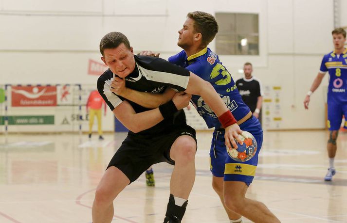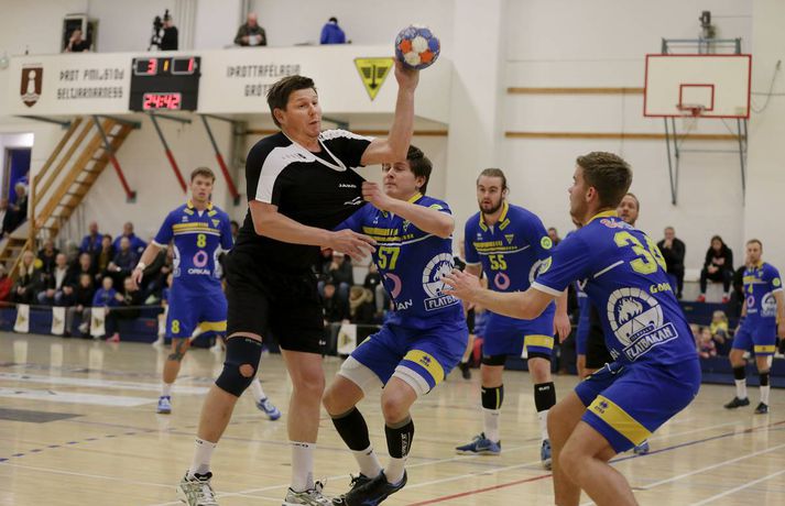 Logi Geirsson markahæstur er stjörnum prýtt lið Þróttar Vogum fékk skell á Nesinu | Myndir Tómas Þór Þóraðrson skrifar 25. október 2016 21:14 Bjarki Sigurðsson, einn besti handboltamaður þjóðarinnar frá upphafi, spilaði með Þrótti í kvöld og skoraði eitt mark. vísir/hanna Grótta lagði Þrótt Vogum, 33-23, í 32 liða úrslitum Coca Cola-bikars karla í handbolta í kvöld. Lið Þróttar Vogum tekur bara þátt í bikarkeppni HSÍ á hverju ári og mætir árlega með stjörnum prýtt lið leikmanna sem eru hættir. Í kvöld voru í liði Þróttar Vogum leikmenn á borð við Loga Geirsson, sem var markahæstur ásamt Stefáni Baldvin Stefánssyni með sex mörk, Sigurð Eggertsson, Bjarka Sigurðsson, Guðlaug Arnarsson, Birki Ívar Guðmundsson og Þóri Ólafsson. Nóg af landsliðsreynslu. Þróttarar héldu í við Gróttu í fyrri hálfleik en Olís-deildarliðið var aðeins einu marki yfir eftir 30 mínútur, 13-12. Í síðari hálfleik voru stjörnurnar sprungnar og landaði Grótta auðveldum tíu marka sigri, 33-23. Finnur Ingi Stefánsson var markahæstur á vellinum með ellefu mörk en Júlíus Þórir Stefánsson skoraði sjö fyrir heimamenn sem verða í pottinum þegar dregið verður til 16 liða úrslitanna.Grótta - Þróttur Vogum 33-23Mörk Gróttu: Finnur Ingi Stefánsson 11, Júlíus Þórir Stefánsson 7, Aron Dagur Pálsson 5, Leonharð Þorgeir Harðarson 5, Kristján Þór Karlsson 2, Þórir Bjarni Traustason 1, Hlynur Rafn Guðmundsson 1, Þráinn Orri Jónsson 1.Mörk Þróttar Vogum: Logi Geirsson 6, Stefán Baldvin Stefánsson 6, Haraldur Þorvarðarson 3, Heimir Örn Árnason 3, Sigurður Eggertsson 2, Hjalti Pálmason 1, Bjarki Sigurðsson 1, Þórir Ólafsson 1. Íslenski handboltinn Mest lesið Óskar Hrafn fer ekki fet Íslenski boltinn Hákon Rafn hélt hreinu þegar Brentford flaug áfram Enski boltinn Spánn og Þýskaland mætast í úrslitum Fótbolti Anguissa hetja meistaranna Fótbolti Martin öflugur í góðum sigri Körfubolti Verstappen telur sig ekki geta barist um titilinn Formúla 1 Leikið á Þróttaravelli á miðvikudag Fótbolti Jón Dagur gulltryggði sigurinn með sínu fyrsta marki Fótbolti Fær þrjár milljónir á dag næstu sex árin fyrir að gera ekkert Sport Vonast til að komast í Kórinn: „Menn hafa aldrei séð annað eins“ Fótbolti Fleiri fréttir Teitur inn í landsliðið Gísli bjó til meira en þriðjung markanna Haukur magnaður í sigri Löwen Blær skoraði þrjú og lagði upp jöfnunarmarkið KA/Þór sótti sigur gegn Fram og stigalausar Stjörnukonur Fram kjöldró HK og spenna í Eyjum Meistararnir unnu gegn ÍBV og ÍR hafði betur gegn Selfyssingum Donni og félagar björguðu stigi undir lokin Afturelding komst upp að hlið Hauka Seldu bleika búninginn hennar Herrem fyrir meira en milljón „Leið vel þegar ég fór inn úr færinu“ Uppgjörið FH - Haukar 27-26 | Birgir Már tryggði FH sigur eftir spennutrylli Bernard fór mikinn en Valsmenn sluppu með sigurinn Fyrsti sigur Þórsara síðan í byrjun september Ómar Ingi með fullkomnan leik í Meistaradeildinni Guðjón Valur og lærisveinar hársbreidd frá því að vinna Kiel Hlakka til að sjá Viktor Gísla aftur og senda honum skilaboð Neyddar í sömu stöðu og Ísland og límdu melónur á skóna Hatar hvítu stuttbuxurnar Fjölga stórmótum landsliða í handboltanum Allt jafnt í bikarslag íslensku stelpnanna Orri fagnaði í Íslendingaslag í Meistaradeildinni Hjartavandamál halda Reyni frá keppni Stórar breytingar á Evrópukeppnum í handbolta Framarar töpuðu aftur á heimavelli í Evrópudeildinni Magdeburg komst örugglega áfram í sextán liða úrslitin Íslensku strákarnir áberandi í Evrópudeildinni „Stærri og sterkari en liðin sem við þekkjum hérna heima“ Viktor til liðs við frænda sinn og bróður Uppgjörið: Portúgal - Ísland 26-25 | Annar eltingaleikur íslenska liðsins endar með öðru tapi Sjá meira