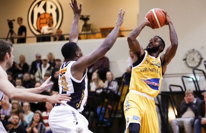 Umfjöllun, viðtöl og myndir: KR - Grindavík 87-62 | KR-ingar léku á als oddi Árni Jóhannsson í DHL-höllinni skrifar 20. október 2016 21:45 Úr leik liðanna í kvöld. vísir/eyþór Fyrir leik var talið að leikur KR og Grindavíkur yrði stórleikur. Raunin varð allt önnur. KR réði lögum og lofum í 40 mínútur og létu Grindvíkinga líta hrikalega illa út en til marks um það þá skoruðu Grindvíkingar aðeins 20 stig í fyrri hálfleik. Leiknum lauk 87-62 fyrir KR sem sýndi mátt sinn og meginn í allt kvöld, fengu þeir framlag úr öllum áttum á báðum endum vallarins. Stigahæstur var Bryjnjar Þór Björnsson hjá KR með 22 stig en 20 þeirra komu í fyrri hálfleik en heimamenn gátu leyft sér að hvíla hann mikið í þeim seinni.Eyþór Árnason tók myndirnar úr leiknum en þær má sjá hér að ofan.Afhverju vann KR?Stutta svarið við þessari spurningu er: KR er fjári gott körfuboltalið. Þessi leikur kláraðist nánast í fyrsta leikhluta en eftir hann hafði Grindavík einungis skorað 12 stig en varnarleikur heimamanna var alveg til fyrirmyndar. Sóknarleikur heimamanna var einnig stórgóður en allir leikmenn skiluðu framlagi í kvöld. Brynjar Þór Björnsson fór mikinn í fyrri hálfleiknum og þegar honum var lokði hafði hann skorað 20 stig eða jafnmikið og allt lið Grindavíkur en annar leikhlutir gestanna var afleitur svo ekki sé harðar að orði kveðið.Bestu menn vallarins?Brynjar Þór var áberandi bestur í fyrri hálfleik og setti niður 20 stig sem var tæpur helmingur stiga KR í fyrri hálfleik. Hann fékk góða aðstoð frá Cedrick Bowen sem er að koma betur inn í leik heimamanna en hann sýndi góðan leik þar sem hann frákastaði vel, skoraði í teignum og spilaði afbragðs varnarleik á köflum. Annars var það liðsheild KR sem skilaði þessu en í seinni hálfleik sat Brynjar mikið á bekknum en þá stigu aðrir upp í vörn og sókn. Það er eiginlega ekki hægt að tala um að einhver hafi verið bestur hjá gestunum en Lewis Clinch Jr. var stigahæstur hjá þeim með 23 stig. Bróðurpartur stigana kom í seinasta leikhlutanum eða þegar það var orðið of seint en hann hitti mjög illa úr þeim skotum sem hann reiðir sig mest á, upp lyklinum, hann fann fjölina aðeins í lok leiks og hélt uppi góðri tölfræði í rusltímanum svokallaða.Hvað gekk illa?Sóknarleikur Grindvíkinga gekk mjög illa og var pínlegt að horfa á þá á köflum í fyrri hálfleik. Þeir skoruðu ekki eina körfu utan af velli í tæpar níu mínútur í hálfleiknum og aðeins 8 stig í öllum öðrum leikhluta. Eins og áður segir þá var Clinch ekki að finna skotið sitt og aðrir leikmenn Grindavíkur voru heillum horfnir á löngum köflum. KR var ekki mikið í því að stela boltanum af Grindvíkingum en neyddu þá í erfið skot og sendingar sem orsakaði lélega skotnýtingu og tapaða bolta hjá gestunum. Af þeim sökum gerði andleysi vart við sig hjá Grindavík mjög snemma leiks og náðu þeir ekki að hrista af sér slenið í seinni hálfleik.Tölfræði sem vakti athygliBrynjar Þór Björnsson er óumdeildur leiðtogi KR-inga og það sýndi sig í fyrri háfleik. Hann var fljótur út úr startblokkunum og skoraði fyrstu 8 stig heimamanna og endaði hálfleikinn með 20 stig sem eru jafnmörg stig og Grindavík skoraði. Hann var mikið á bekknum í seinni hálfleik en það skipti engu máli því dýpt KR er rosaleg.Finnur Stefánsson: Strákarnir mínir eiga hrós skilið Þjálfari KR var ánægður með framlag sinna manna í leiknum á móti Grindavík eftir vandræði, að hans sögn, í síðasta leik. „Við voru ekki sáttir heilt yfir með frammistöðuna og agaleysið í síðasta leik og vorum mjög ánægðir með hvernig menn svöruðu í þessum leik og eiga strákarnir hrós skilið. Strákarnir gerðu vel í að halda leikplaninu sem við þjálfararnir settum upp lifandi.“ „Það er mikið búið að tala um þetta Grindavíkur lið og félagi minn hérna hinum megin er búinn að fá leiðinlega útreið t.d. hjá Körfuboltakvöldi en það er allt annað að sjá þetta lið núna og síðustu tveimur leikjum þótt þeir hafi átt slakan leik hérna. Þeir eru flottir í Grindavíkur liðinu en ég er mjög ánægður með heildina hjá okkur. Menn voru að koma inn af bekknum og fylgja fyrirmælum og þótt að orkan hafi stundum mátt vera meiri þá var þetta flottur leikur.“ Finnur var spurður út í Cedrick Bowen sem er að koma betur inn í leik KR en hann spilaði lítið en skilaði flottum tölum. „Hann fékk því miður gubbuna í gær og það var óvíst að hann myndi spila í kvöld, hann á smá í land með að koma sér í stand en hann hakar í boxin sem okkur vantar. Hann frákastar, hann getur varist í kringum körfuna og klárað í kringum körfuna þannig að við þurfum að bíða og sjá hvað hann mun geta. Við dæmum hann ekki eftir leiknum í dag frekar en leiknum á móti Borgarnesi.“ Að lokum var Finnur spurður út í lúxusin að geta hvílt Brynjar Þór Björnsson í seinnni hálfleik en hann sagði brosandi: „Brynjar hætti að geta eitthvað í seinni hálfleik og þá fer hann bara á bekkinn, það eru fullt af strákum sem geta komið og verið flottir. Hann var samt frábær í fyrri hálfleiknum og hélt bara áfram frá því sem var horfið í síðasta leik.“Brynjar Þór Björnsson: Auðvelt að koma inn í lið þar sem kjarninn er sterkur „Fyrri hálfleikurinn var mjög góður af okkar hálfu, vörnin var sterk, við vorum kannski ekki að ná að stela boltanum mikið en við héldum þeim fyrir framan okkur og neyddum þá í erfið skot. Þeir skoruðu 20 stig í fyrri hálfleik sem er virkilega gott,“ sagði Brynjar Þór Björnsson eftri leik þegar hann var spurður hvort leikurinn hafi verið auðveldur. Hann var spurður út í sinn leik og en hann setti niður 