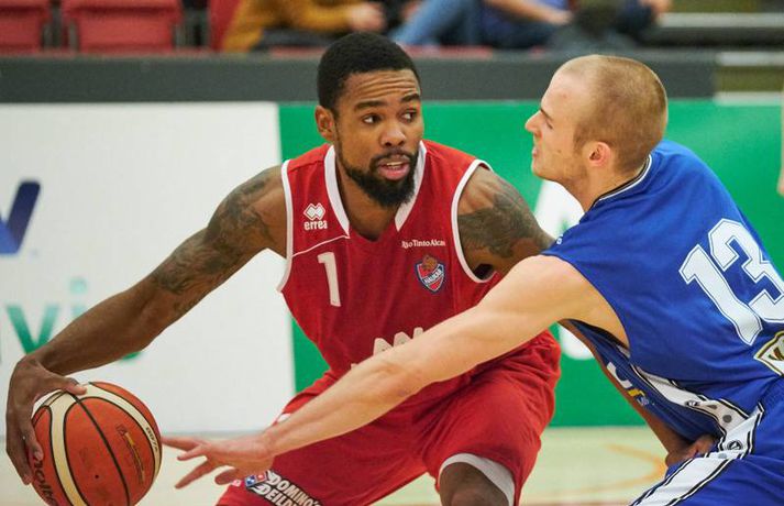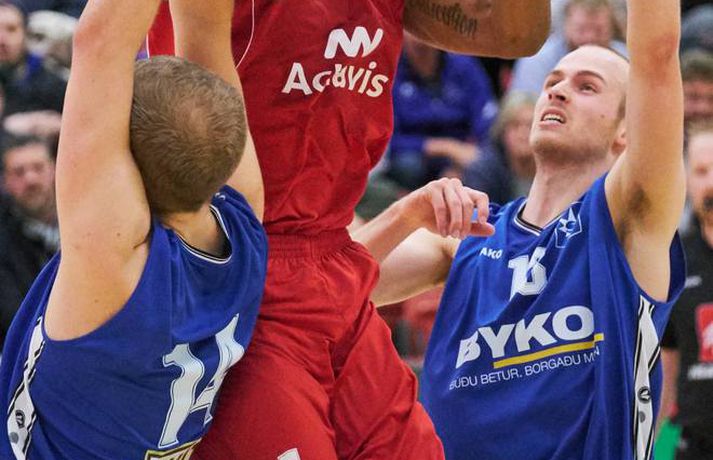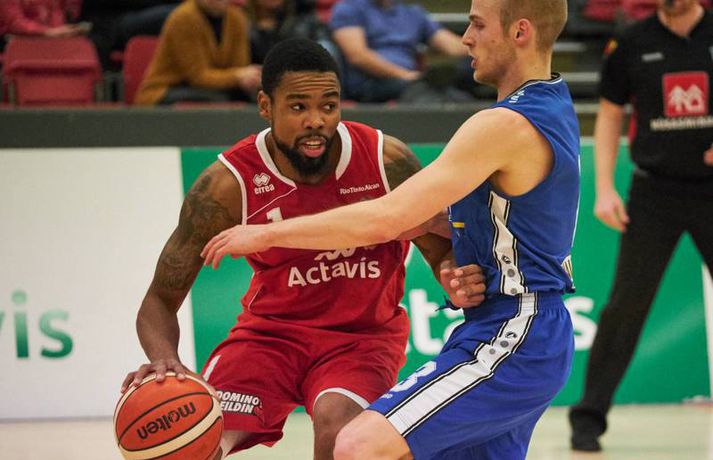 Stjarnan vann annan leik sinn í röð í Dominos-deild karla 70-67 gegn Haukum í DB-Schenker höllinni í Dominos-deild karla í kvöld. Eftir að hafa byrjað leikinn hroðalega voru taugar Garðbæinga sterkari á lokasprettinum.Anton Brink, ljósmyndari Vísis og Fréttablaðsins, var á leiknum á Ásvöllum í kvöld og náði þessum myndum hér fyrir ofan. Sóknarlega var lítið sem ekkert í fréttum hjá Stjörnunni framan af, menn voru ragir til að taka skot og boltinn gekk illa milli manna. Haukar voru í raun klaufar að nýta sér það ekki betur en munurinn var níu stig að fyrsta leikhluta loknum 18-9. Stjarnan vann sig inn í leikinn á varnarleiknum og jafnaði metin undir lok þriðja leikhluta. Var því allt í járnum fyrir lokaleikhlutann á Ásvöllum. Haukar byrjuðu leikhlutann betur en þegar Stjarnan fór að hitta úr þriggja stiga skotunum þá réði það úrslitum í leiknum. Lauk leiknum með þriggja stiga sigri Stjörnunnar.Af hverju vann Stjarnan? Á góðum degi hjá Haukum hefðu stigin farið til Hauka en eigin klaufagangur gerði það að verkum að Stjarnan hélt lífi í leiknum framan af. Haukar leiddu með tíu stigum eftir fyrsta leikhluta en munurinn gat auðveldlega verið mun stærri þegar Garðbæingar vöknuðu til lífsins. Á lokasprettinum fóru þriggja stiga körfurnar að detta hjá lykilleikmönnum Stjörnunnar en Haukum tókst ekki að jafna metin eftir tvo þrista í röð frá Justin Shouse og Devon Austin. Ekki besti leikur Stjörnunnar á tímabilinu og liðið getur mætt ekki með þetta hugarfar til leiks í fleiri leikjum en þrátt fyrir það taka þeir stigin tvö.Bestu menn vallarins: Sherrod Wright bar sóknarleik Hauka á herðum sér lengi vel í leiknum og lauk leik með tvöfalda tvennu, 31 stig og 13 fráköst ásamt því að gefa fimm stoðsendingar en einn annar leikmaður Hauka komst í tveggja stafa tölu í stigaskorun. Hlynur Bæringsson var duglegur að ýta mönnum inn í teignum og sækja villur en Haukarnir áttu í basli með hann þegar Garðbæingar sóttu inn í teiginn. Þriggja stiga skotin voru ekki að detta hjá Hlyni í dag (0/6) en hann fann sér leið til að koma stigum á töfluna. Marvin Valdimarsson kom öflugur inn af bekknum þær mínútur sem hann fékk og var með ellefu stig en það er áhyggjuefni fyrir Stjörnuna að hann fór er virtist sárþjáður af velli eftir að hafa fengið högg á úlnliðinn.Tölfræði sem vakti athygli: Stjarnan var aðeins með níu stig eftir fyrsta leikhluta eftir að hafa komist 4-0 yfir en gestirnir hittu aðeins úr tveimur skotum úr opnum leik. Komu fimm stig af níu af vítalínunni hjá Stjörnunni og var Hrafn Kristjánsson, þjálfari Stjörnunnar, skiljanlega ósáttur með sóknarleikinn ásamt varnarleik liðsins eftir fyrsta leikhluta.Hvað gekk illa? Haukar lentu í villuvandræðum snemma leiks með Hauk Óskarsson og Hjálmar Stefánsson í aðalflokki. Fengu þeir báðir þrjár villur snemma leiks en Haukur lék aðeins rúmlega níu mínútur í kvöld eftir að hafa fengið sína fimmtu villu. Þá voru gestirnir úr Garðabæ að hitta illa úr þriggja stiga skotunum fram að lokamínútunum þegar skotin tvö féllu. Var liðið aðeins búið að hitta úr 20,6% skota sinna fyrir aftan þriggja stiga línuna fram að því. Finnur Atli: Lærði það frá Fannari að maður kvartar ekki undan ökklameiðslum„Þeir hittu úr stóru skotunum en við klúðruðum þegar við fengum tækifæri til, það er það sem skilur liðin að í kvöld,“ sagði Finnur Atli Magnússon, leikmaður Hauka, aðspurður hvað hefði farið úrskeiðis í kvöld. „Justin og Devon settu niður tvo stóra þrista en þegar við fengum jafn opin færi þá duttu þau ekki niður. Þeir náðu að ýta okkur út úr því sem við vorum að gera vel og tóku sigurinn fyrir vikið.“ Finnur viðurkenndi að hann væri meðal sökudólganna fyrir því að Haukar væru ekki með stærra forskot eftir fyrsta leikhluta. „Þeir náðu ágætis kafla þarna þegar við erum að klúðra auðveldum skotum, þar á meðal ég. Þeir fóru að hitta vel og gerðu þetta að leik á ný,“ sagði Finnur sem fékk högg á ökklann og það kom að sök í tveimur sniðskotum. „Ég lærði það frá Fannari Ólafssyni að maður kvartar ekki undan ökklameiðslum. Maður teipar þetta og heldur áfram en ég fann til í ökklanum. Maður hugsar alltaf um það þegar högg kemur á ökklann. Ég ætlaði að stökkva upp og klára þetta en eymslin í ökklanum voru að stríða mér. Þetta var ekki nógu gott af minni hálfu.“ Finnur sagðist vera tilbúinn fyrir háðsglósurnar þegar atvikið verður skoðað af fyrrum liðsfélaga hans, Fannari í Körfuboltakvöldi. „Ég veit alveg að hann mun taka þetta fyrir en maður er með breitt bak,“ sagði hann léttur að lokum. Hrafn: Þakklátur en á sama tíma reiður yfir spilamennskunni„Þetta eru blendnar tilfinningar, ég er þakklátur fyrir sigurinn en á sama tíma reiður sem er ekki þægilegt eftir sigurleik,“ sagði Hrafn Kristjánsson, þjálfari Stjörnunnar, aðspurður út í leik kvöldsins. „Við gerðum ekkert af því sem við ræddum um fyrir leikinn og mér fannst við koma allt of flatir inn í leikinn. Það er ekki boðlegt í þessari deild þar sem öll lið geta unnið hvort annað.“ Hrafn sendi mönnum skilaboð fyrir næsta leik. „Við erum ekki í þeirri stöðu að geta sparað okkur eftir styrkleika mótherja. Ég býst við því að strákarnir komi gjörsamlega trylltir í næsta leik gegn KR. Ég trúi því að það blundi nógu mikið stolt í strákunum að þeir mæti allt öðruvísi inn í þann leik.“ Sóknarleikurinn var dapur og ekki var varnarleikurinn betri framan af en Haukum mistókst að nýta sér það. „Höfum það á hreinu, þeir missa 4-5 auðveld sniðskot (e. layup) eflaust út af því að þeir 