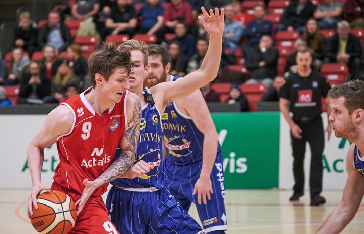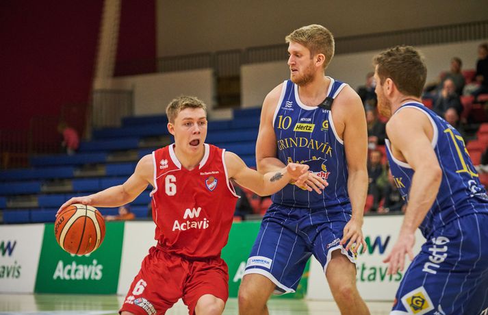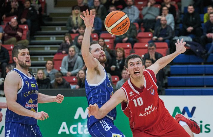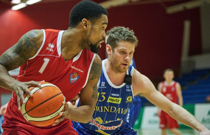 Haukar unnu virkilega mikilvægan sigur á Grindvíkingum, 89-69, í Dominos-deild karla. Liðið var fyrir leikinn aðeins með átta stig í næstneðsta sæti deildarinnar.Anton Brink, ljósmyndari Fréttablaðsins og Vísis, var í Schenker-höllinni í kvöld og tók meðfylgjandi myndir. Grindvíkingar byrjuðu leikinn á Ásvöllum mun betur og náði fínu forskoti. Í öðrum leikhluta fóru heimamenn í gang og tóku völdin á vellinum. Haukar eru því komnir með 10 stig í deildinni og eru kannski vaknaðir á þessu tímabili. Sherrod Wright var flottur í liði Hauka og skoraði 24 stig.Af hverju unnu Haukar? Þeir sýndu loks að liðið er með fína breidd og leikmenn fengu að njóta sín og spila sinn leik. Stigaskorið dreifðist nokkuð vel og tóku nánast allir leikmenn liðsins virkan þátt í leiknum. Það var klárlega það sem skilaði liðinu stigin tvö.Bestu menn vallarins Finnur Atli Magnússon var frábær í fyrri hálfleik hjá Haukum en lenti í villuvandræðum í þeim síðari. Þá tóku þeir Sherrod Wright og Haukur Óskarsson við. Þessi menn voru bestu menn vallarins og skoruðu þeir allir svipað mörg stig.Hvað gekk illa ?Grindvíkingar voru hreinlega skelfilegir sóknarlega, hittu illa og voru bara ekki að finna samherja. Það vantaði töluvert upp á samskiptin á milli leikmanna og á köflum var eins og að þeir þekktu varla hvorn annan. Varnarlega voru gestirnir alls ekki góðir og heilt yfir þurfa Grindvíkingar heldur betur að skoða sín mál.Ívar Ásgrímsson, þjálfari Hauka.Vísir/antonÍvar: Ungu strákarnir af bekknum kveiktu í liðinu „Ég er bara gríðarlega stoltur af strákunum sem voru frábærir í kvöld og sýndu mikinn karakter eftir að við byrjuðum frekar illa,“ segir Ívar Ásgrímsson, þjálfari Hauka, eftir sigurinn í kvöld. „Við vorum búnir að fara nákvæmlega yfir það sem þeir eru búnir að vera gera, en samt byrjum við illa í kvöld. Ég var mjög ósáttur við það í byrjun og við urðum að taka leikhlé mjög snemma til að endurskipuleggja okkur.“ Ívar segir að leikmenn liðsins hafi brotið heimskulega af sér í upphafi leiksins. „Eftir þess döpru byrjun var leikur okkar í raun frábær og ég er gríðarlega stoltur af þessum strákum sem komu inn af bekknum. Ég hef ekki verið að nota bekkinn gríðarlega mikið en við töluðum um það í vikunni að við þyrftum að fara dreifa álaginu meira og það gekk vel í kvöld.“ Hann segir að breytingin á liðinu í öðrum leikhluta hafi verið að menn fóru að spila varnarleikinn eins og lagt hafði verið upp. „Allir sigrar núna eru bara gríðarlega mikilægir fyrir okkur og miðað við úrslitin í þessari umferð þá megum við ekki við því að misstíga okkur neitt.“Jóhann var virkilega ósáttur með sína menn í kvöld.vísir/antonJóhann með pillu á sína eigin leikmenn: Ólafur, Dagur og Ómar bara lélegir í kvöld „Ég hef eiginlega ekki hugmynd hvað gerist hjá liðinu eftir fína byrjun,“ segir Jóhann Þór Ólafsson, þjálfari Grindvíkinga, eftir tapið í kvöld. „Við erum bara slakir í kvöld, alveg saman hvar litið er niður. Það var ekki að hjálpa okkur að við hittum illa, við hefðum líklega ekki hitt hafið á bryggjunni í kvöld. Þetta pirrar mig töluvert og ég hef bara miklar áhyggjur af þessu.“ Stigaskorið gekk ekkert hjá Grindvíkingum í kvöld. „Við settumst niður eftir áramót og ræddum málin. Við ætluðum að taka okkur leik upp á næsta stig en við erum heldur betur ekki að því. Ég veit ekki hvort við höndlum bara ekki þessa umræðu. Lykilmenn í liðinu voru skelfilegir í kvöld. Ólafur [Ólafsson] er með stórar áætlanir að fara hingað og þangað en hann getur bara ekki neitt í kvöld. Dagur var slakur og Ómar líka, bara svona ef ég á að taka Ívar [Ásgrímsson, þjálfara Hauka] á þetta og gangrýni leikmenn bara beint út,“ segir Jóhann og kallar eftir því að menn axli ábyrgð á sínum leik. „Þegar kemur að því að framkvæma hlutina í leik þá líta menn bara hræðilega út.“vísir/anton