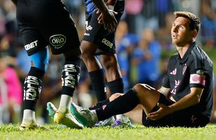 Áhorfendur hlupu inn á völlinn og sneru Messi niður í jörðina