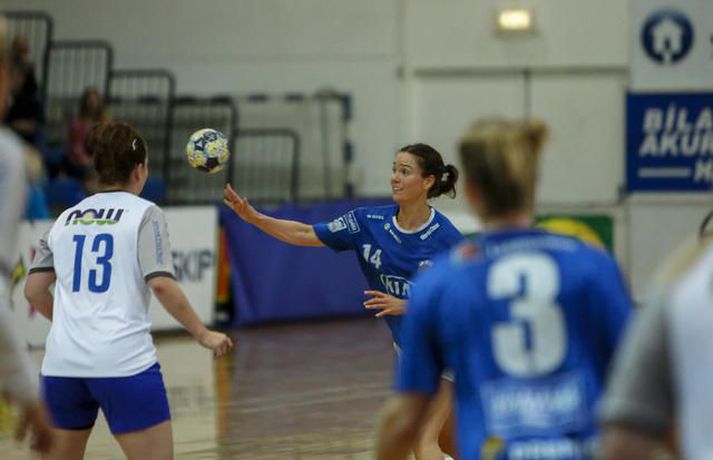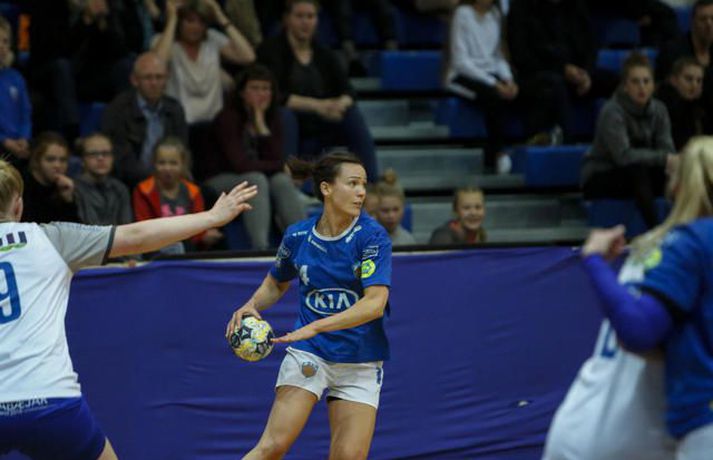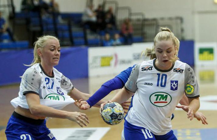 Fram gaf tóninn fyrir komandi tímabil í Olísdeildinni með því að leggja Stjörnuna að velli í Meistarakeppni HSÍ í kvöld. Fyrirliðinn Sigurbjörg Jóhannsdóttir stal senunni í kvöld og skoraði níu mörk fyrir Íslandsmeistarana. Karen Knútsdóttir og Þórey Rósa Stefánsdóttir sneru báðar aftur í lið Fram í kvöld eftir nokkurra ára dvöl í atvinnumennskunni og spiluðu vel. En það var hinn þaulreyndi fyrirliði Fram sem stal senunni en auk hennar átti Guðrún Ósk Maríasdóttir góðan leik í marki Fram í síðari hálfleik. Stjörnukonur mæta til leiks með nokkuð breytt lið frá síðustu leiktíð. Meðal nýrra leikmanna eru skytturnar Ramune Pekarskyte og Þórey Anna Ásgeirsdóttir. Sú fyrrnefnda nýtti skotin sín ekki nógu vel en Þórey Anna átti fína spretti í kvöld. Gestirnir úr Garðabæ byrjuðu reyndar betur í leiknum og leiddu verðskuldað að loknum fyrri hálfleik, 17-13. Vörn Stjörnunnar hélt vel og skilaði liðinu mörgum hraðaupphlaupum. Fram varð sömuleiðis fyrir áfalli er Karen haltraði af velli á 28. mínútu eftir að hafa snúið sig illa á ökkla. Hún kom ekki meira við sögu í leiknum. Stjörnukonur voru enn með tveggja marka forystu, 22-20, þegar Ragnheiður Júlíusdóttir fór af velli eftir að hafa fengið beint rautt spjald fyrir að brjóta á Brynhildi Kjartansdóttur, sem féll við brotið og meiddist á hönd. Hún var þar með úr leik og stuttu síðar fór Rakel Dögg Bragadóttir sömu leið eftir hennar þriðju brottvísun. Þar með virtist allt loft úr Stjörnustúlkum og Framarar, með þær Sigurbjörgu og Guðrúnu fremstar í flokki, tóku völdin í þessum leik og sigu fram úr á lokakaflanum. Fram mætir því til leiks með sterkt lið og skýr skilaboð. Sjálfsagt reikna flestir með því að þessi tvö lið verði sterkust í deildinni í vetur, rétt eins og á síðasta tímabili, en Stjörnukonur vilja sjálfsagt hefna fyrir þetta tap sem allra fyrst.Stefán: Sigurbjörg er fyrirliði og þetta á hún að gera Stefán Arnarsson, þjálfari Fram, var ánægður með sína leikmenn eftir sigurinn á Stjörnunni í Meistarakeppni HSÍ í kvöld. „Við spiluðum ekki vel í fyrri hálfleik en náðum að koma til baka. Við vorum með átta tapaða bolta sem var of mikið. En seinni hálfleikur var góður og ég var ánægður með hann,“ sagði Stefán. „Við misstum mikilvæga leikmenn út af en við náðum að halda dampi og ég var ánægður með það.“ Karen Knútsdóttir fór meidd af velli og Ragnheiður Júlíusdóttir fékk að líta beint rautt spjald. Samt keyrði Fram yfir Stjörnuna á lokakaflanum og munaði þar mestu um Sigurbjörgu Jóhannsdóttur sem skoraði níu mörk í kvöld. „Hún er fyrirliði og hún á að draga vagninn fyrir okkur,“ sagði Stefán aðspurður um hennar þátttöku í kvöld. Svo mörg voru þau orð.Halldór Harri: Við urðum þreyttar Halldór Harri Kristjánsson, þjálfari Stjörnunnar, segir að það hafi verið ýmislegt jákvætt hægt að taka úr leiknum í kvöld. „Við spiluðum á kafla virkilega vel en það munaði miklu um að missa Brynhildi af velli í seinni hálfleik. Svo þegar Rakel fékk rautt urðum við þreyttar,“ sagði hann við Vísi eftir leikinn. „En það voru margir góðir kaflar. Við fengum mikið af hraðaupphlaupum. Það er hins vegar of mikið að fá 30 mörk á okkur,“ bætti hann við. Hann hrósaði nýju leikmönnunum í sínu liði. „Þær eru að koma ágætlega inn í þetta en þurfa meiri tíma eins og aðrir. Þetta er bara rétt að byrja.“Þórey Rósa: Eins og að koma aftur í tímann Hornamaðurinn Þórey Rósa Stefánsdóttir var ánægð með að vera komin aftur heim í íslenska handboltann eftir nokkurra ára dvöl í atvinnumennskunni. Hún skoraði sjö mörk fyrir Fram og átti skínandi leik, er hennar lið varð meistari meistaranna eftir sigur á Stjörnunni, 30-27. „Hreinskilningslega sagt fannst mér í fyrstu að ég væri koma aftur í tímann. En þetta er góð tilfinning. Ísland er best. Það er gaman að koma heim og allir hafa tekið vel á móti manni,“ sagði Þórey Rósa. Hún segist ánægð með stöðuna á liði Fram í upphafi tímabils. „Það var sterkt að klára þetta í kvöld og sýnir góða liðsheild. Þetta var eins og í fótbolta - þegar einn leikmaður fær rautt þá stíga allir aðrir upp. Ég var ánægð með Sibbu og Guðrúnu, þær spiluðu vel í seinni hálfleik.“ „Við erum með þétt lið og erum með pressu á okkur í vetur. Við ætlum að standast hana. Þetta var fyrsti titillinn núna en við vitum að þetta verður alls ekki gefið fyrir okkur í vetur eins og svo margir vilja meina.“Ernir Eyjólfsson, ljósmyndari Fréttablaðsins og Vísis, var í Framhúsinu í kvöld og tók myndirnar hér að neðan.vísir/ernirHalldór Harri ræðir við Stjörnustelpurnar.vísir/ernirStefán heldur áfram að safna titlum.vísir/ernirÞórey Rósa skoraði sjö stig.vísir/ernir