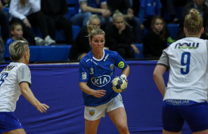 Umfjöllun, viðtöl og myndir: Fram - Stjarnan 30-27 | Sigurbjörg fór fyrir Íslandsmeisturunum Eiríkur Stefán Ásgeirsson skrifar 6. september 2017 21:45 Framkonur fagna. vísir/ernir Fram gaf tóninn fyrir komandi tímabil í Olísdeildinni með því að leggja Stjörnuna að velli í Meistarakeppni HSÍ í kvöld. Fyrirliðinn Sigurbjörg Jóhannsdóttir stal senunni í kvöld og skoraði níu mörk fyrir Íslandsmeistarana. Karen Knútsdóttir og Þórey Rósa Stefánsdóttir sneru báðar aftur í lið Fram í kvöld eftir nokkurra ára dvöl í atvinnumennskunni og spiluðu vel. En það var hinn þaulreyndi fyrirliði Fram sem stal senunni en auk hennar átti Guðrún Ósk Maríasdóttir góðan leik í marki Fram í síðari hálfleik. Stjörnukonur mæta til leiks með nokkuð breytt lið frá síðustu leiktíð. Meðal nýrra leikmanna eru skytturnar Ramune Pekarskyte og Þórey Anna Ásgeirsdóttir. Sú fyrrnefnda nýtti skotin sín ekki nógu vel en Þórey Anna átti fína spretti í kvöld. Gestirnir úr Garðabæ byrjuðu reyndar betur í leiknum og leiddu verðskuldað að loknum fyrri hálfleik, 17-13. Vörn Stjörnunnar hélt vel og skilaði liðinu mörgum hraðaupphlaupum. Fram varð sömuleiðis fyrir áfalli er Karen haltraði af velli á 28. mínútu eftir að hafa snúið sig illa á ökkla. Hún kom ekki meira við sögu í leiknum. Stjörnukonur voru enn með tveggja marka forystu, 22-20, þegar Ragnheiður Júlíusdóttir fór af velli eftir að hafa fengið beint rautt spjald fyrir að brjóta á Brynhildi Kjartansdóttur, sem féll við brotið og meiddist á hönd. Hún var þar með úr leik og stuttu síðar fór Rakel Dögg Bragadóttir sömu leið eftir hennar þriðju brottvísun. Þar með virtist allt loft úr Stjörnustúlkum og Framarar, með þær Sigurbjörgu og Guðrúnu fremstar í flokki, tóku völdin í þessum leik og sigu fram úr á lokakaflanum. Fram mætir því til leiks með sterkt lið og skýr skilaboð. Sjálfsagt reikna flestir með því að þessi tvö lið verði sterkust í deildinni í vetur, rétt eins og á síðasta tímabili, en Stjörnukonur vilja sjálfsagt hefna fyrir þetta tap sem allra fyrst.Stefán: Sigurbjörg er fyrirliði og þetta á hún að gera Stefán Arnarsson, þjálfari Fram, var ánægður með sína leikmenn eftir sigurinn á Stjörnunni í Meistarakeppni HSÍ í kvöld. „Við spiluðum ekki vel í fyrri hálfleik en náðum að koma til baka. Við vorum með átta tapaða bolta sem var of mikið. En seinni hálfleikur var góður og ég var ánægður með hann,“ sagði Stefán. „Við misstum mikilvæga leikmenn út af en við náðum að halda dampi og ég var ánægður með það.“ Karen Knútsdóttir fór meidd af velli og Ragnheiður Júlíusdóttir fékk að líta beint rautt spjald. Samt keyrði Fram yfir Stjörnuna á lokakaflanum og munaði þar mestu um Sigurbjörgu Jóhannsdóttur sem skoraði níu mörk í kvöld. „Hún er fyrirliði og hún á að draga vagninn fyrir okkur,“ sagði Stefán aðspurður um hennar þátttöku í kvöld. Svo mörg voru þau orð.Halldór Harri: Við urðum þreyttar Halldór Harri Kristjánsson, þjálfari Stjörnunnar, segir að það hafi verið ýmislegt jákvætt hægt að taka úr leiknum í kvöld. „Við spiluðum á kafla virkilega vel en það munaði miklu um að missa Brynhildi af velli í seinni hálfleik. Svo þegar Rakel fékk rautt urðum við þreyttar,“ sagði hann við Vísi eftir leikinn. „En það voru margir góðir kaflar. Við fengum mikið af hraðaupphlaupum. Það er hins vegar of mikið að fá 30 mörk á okkur,“ bætti hann við. Hann hrósaði nýju leikmönnunum í sínu liði. „Þær eru að koma ágætlega inn í þetta en þurfa meiri tíma eins og aðrir. Þetta er bara rétt að byrja.“Þórey Rósa: Eins og að koma aftur í tímann Hornamaðurinn Þórey Rósa Stefánsdóttir var ánægð með að vera komin aftur heim í íslenska handboltann eftir nokkurra ára dvöl í atvinnumennskunni. Hún skoraði sjö mörk fyrir Fram og átti skínandi leik, er hennar lið varð meistari meistaranna eftir sigur á Stjörnunni, 30-27. „Hreinskilningslega sagt fannst mér í fyrstu að ég væri koma aftur í tímann. En þetta er góð tilfinning. Ísland er best. Það er gaman að koma heim og allir hafa tekið vel á móti manni,“ sagði Þórey Rósa. Hún segist ánægð með stöðuna á liði Fram í upphafi tímabils. „Það var sterkt að klára þetta í kvöld og sýnir góða liðsheild. Þetta var eins og í fótbolta - þegar einn leikmaður fær rautt þá stíga allir aðrir upp. Ég var ánægð með Sibbu og Guðrúnu, þær spiluðu vel í seinni hálfleik.“ „Við erum með þétt lið og erum með pressu á okkur í vetur. Við ætlum að standast hana. Þetta var fyrsti titillinn núna en við vitum að þetta verður alls ekki gefið fyrir okkur í vetur eins og svo margir vilja meina.“Ernir Eyjólfsson, ljósmyndari Fréttablaðsins og Vísis, var í Framhúsinu í kvöld og tók myndirnar hér að neðan.vísir/ernirHalldór Harri ræðir við Stjörnustelpurnar.vísir/ernirStefán heldur áfram að safna titlum.vísir/ernirÞórey Rósa skoraði sjö stig.vísir/ernir Íslenski handboltinn