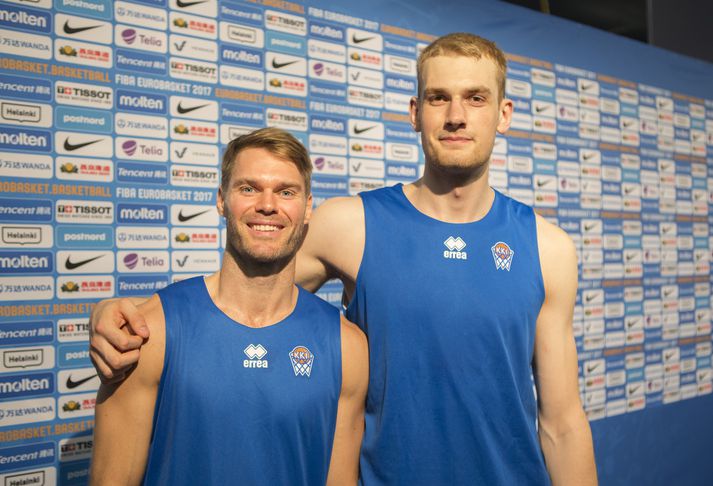 Gaman að fá smjörþefinn Óskar Ófeigur Jónsson skrifar 2. september 2017 06:00 Tryggvi með umboðsmanninum Jóni Arnóri. vísir/ernir Miðherjinn Tryggvi Snær Hlinason hefur vakið heimsathygli fyrir frammistöðu sína með íslensku landsliðunum í sumar. Hann var meðal annars valinn í úrvalslið EM 20 ára liða í júlí og skoraði 19 stig á móti NBA-miðherja Litháens í ágúst. Miðherjinn efnilegi er kominn inn á borð NBA-njósnara og spekúlanta sem sjá hann margir fyrir sér í NBA-deildinni í framtíðinni. Það er gott að eiga góða að þegar þú ert að stíga fyrstu skrefin í atvinnumennsku og Jón Arnór Stefánsson gefur ekki bara stoðsendingar á Tryggva inni á vellinum. Hann átti eina frábæra stoðsendingu á Bárðdælinginn þegar hann kom honum inn á borð hjá spænska stórliðinu Valencia. „Hann var tæknilega séð auglýsingin mín. Hann kom með nafnið mitt þangað inn á borðið, vann í þessu ferli og svo var ég allt í einu kominn þangað,“ segir Tryggvi. Eftir frábært sumar hefur áhugi á stráknum aukist og Valencia-menn gætu ekki verið ánægðari með samninginn við Tryggva. „Þeir eru mjög sáttir við sumarið hjá mér og að sjá hvað ég er búinn að breytast mikið síðustu mánuði. Það er geggjað að fá athyglina. Ég var að tala við þá fyrir tveimur dögum og þá voru þeir að segja til hamingju með allt sumarið og hvað er búið að ganga vel,“ segir Tryggvi.Tryggvi tekur skot á æfingu íslenska liðsins í gær.vísir/ernirUmboðsmaðurinn Jón Arnór Jón Arnór Stefánsson fékk nefnilega aðeins að kynnast mögulegu framtíðarstarfi sínu í sumar þegar hann hafði milligöngu um að efnilegasti körfuboltamaður landsins endaði í spænska úrvalsdeildarliðinu Valencia. „Þeir eru mjög spenntir að fá hann, ég veit það. Þeir fylgjast rosalega vel með honum og ég fæ reglulega símtöl og skilaboð um hann,“ segir Jón Arnór sem ætti að geta gefið Tryggva dýrmæt ráð. „Það eru spennandi tímar fram undan hjá honum en mikil og hörð vinna líka, fyrst og fremst sem hann þarf að tileinka sér til að ná langt í þessu. Þetta er bara byrjunin á þessu öllu saman og hann þarf að vera duglegur,“ segir Jón Arnór. En er hann sjálfur að detta inn í umboðsmannastarfið á næstunni? „Þú þarft að vera mjög óeigingjarn til að taka að þér svoleiðis starf. Ég er ennþá bara að spila en ég hefði alveg áhuga á því að stíga skrefið í átt að einhvers konar umboðsmennsku eftir að ferlinum lýkur,“ segir Jón Arnór en það gæti leynst umboðsmaður í honum. „Það var gaman að fá smjörþefinn af því með Tryggva. Ég hjálpaði honum og kom honum í samband við mína umboðsmenn á stórri umboðsskrifstofu í þessum bransa, sem er mikilvægt að hafa. Þetta er ákvörðunartaka allan tímann og þú tekur annaðhvort réttar eða rangar ákvarðanir og það getur mótað það algjörlega hvert þú ferð og hvernig ferillinn mun líta út,“ segir Jón.Jón Arnór leggur boltann ofan í körfuna gegn Grikkjum.vísir/ernirÉg var lánsamur Jón Arnór á að baki flottan atvinnumannsferil en er nú kominn heim og spilar með KR. Á hans síðasta tímabili úti í Evrópu spilaði hann með Valencia veturinn 2015-16. Síðasta tímabilið var hans fjórtánda í annaðhvort Evrópu eða NBA og alls lék hann í fimm löndum á þessum tíma. „Ég var lánsamur að taka réttar ákvarðanir og það væri æðislegt að geta hjálpað einhverjum öðrum að gera slíkt hið sama,“ segir Jón. Tryggvi hefur trú á því að Jón geti fundið sig vel í þessu umboðsmannastarfi í framtíðinni. „Ég myndi segja að hann væri besti Íslendingurinn í það í dag. Ég þekki umboðsheiminn samt svo lítið að ég þori ekki að gefa neina almennilega skýrslu um það. Hann er með mjög flottan og stígandi feril eins og maður vill hafa. Ferill hans hefur líka verið frekar stöðugur,“ segir Tryggvi. Ísland mætir Póllandi í dag og Frakklandi á morgun á Evrópumótinu í Helsinki. Þetta eru mjög sterkir mótherjar en fyrir fram eygja menn aðeins meiri möguleika á móti Póllandi í dag. EM 2017 í Finnlandi Tengdar fréttir Guðni forseti kíkti á körfuboltastrákana í kvöld Herra Guðni Th. Jóhannesson, forseti Íslands, er kominn út til Finnlands og hann kíkti áðan á körfuboltastrákana á hóteli liðsins í miðbæ Helsinki. 1. september 2017 19:24 Vel tekið á móti Tryggva í gær: Ég labbaði inná og þá var fagnað Tryggvi Snær Hlinason lék sinn fyrsta leik á stórmóti í gær þegar Ísland mætti Grikklandi í fyrsta leik liðsins á Evrópumótinu í Helsinki. Hann fékk frábærar móttökur hjá íslensku áhorfendunum í Höllinni. 1. september 2017 14:15 Herbergisfélagarnir hlógu saman að því þegar Hlynur var blokkaður Ein tilþrif úr leik Íslands og Grikklands komust í hóp flottustu tilþrifanna á fyrsta degi Eurobasket og voru þau tilþrif á kostnað landsliðsfyrirliðans Hlyns Bæringssonar. 1. september 2017 15:45 Jón Arnór um Hauk: Ég veit ekki alveg hvað menn eru að reykja þarna út í heimi Jón Arnór Stefánsson hrósaði Hauki Helga Pálssyni fyrir frammistöðu sína á móti Grikkjum á Eurobasket í gær en Haukur skoraði 21 stig á eitt sterkasta lið Evrópu. 1. september 2017 14:45 Hlynur brosti bara eftir móttökurnar frá Thanasis sem enduðu meðal bestu tilþrifa dagsins FIBA er búið að velja fimm flottustu tilþrifin frá fyrsta deginum á Eurobasket í ár en keppni hófst í riðlinum í Helsinki í Finnlandi og Tel Aviv í Ísrael í gær. 1. september 2017 08:30 Martin: Ég hef aldrei séð það áður hjá íslensku landsliði Martin Hermannsson er ekkert hrifnari af keppnisboltanum eftir nóttina. Forráðamenn evrópska körfuboltasambandsins voru nefnilega ekki að gera íslensla kö