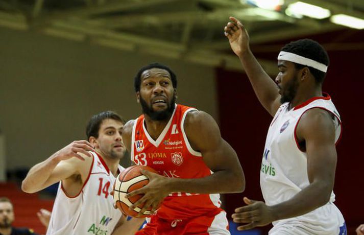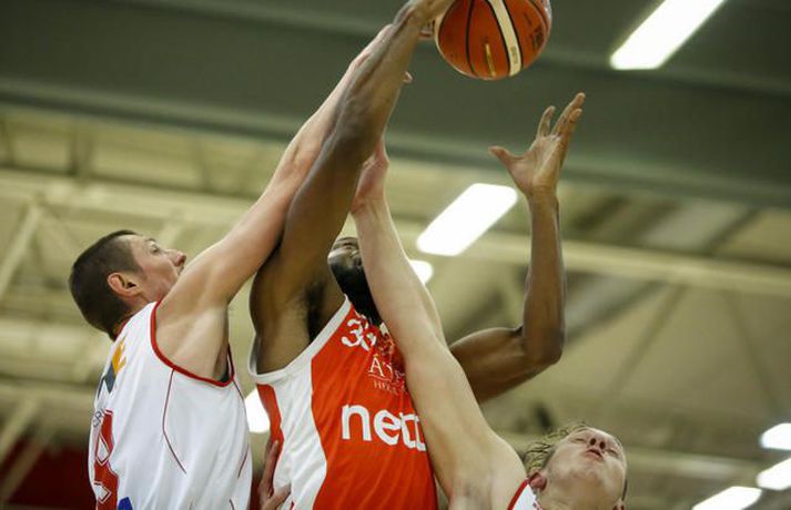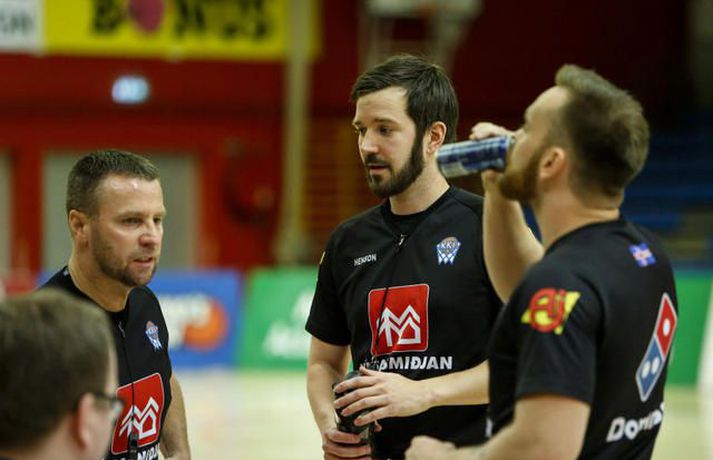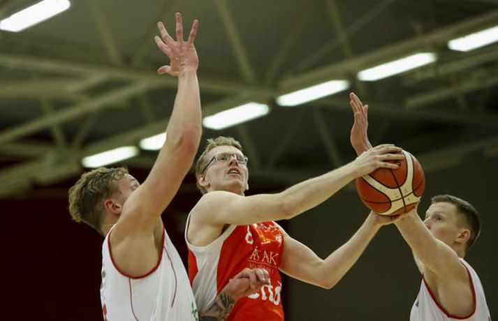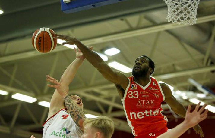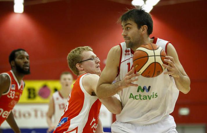 Haukar og Þór Ak. mættust í kvöld í Dominos deild karla. Búist var fyrir leik að um auðveldan leik væri að ræða fyrir heimamenn frá Ásvöllum en svo var aldeilis ekki. Haukar byrjuðu betur og voru 7-2 yfir í upphafi leiks. Þór Akureyri, sem margir spámenn hafa gengið svo langt að segja að liðið muni varla vinna leik í vetur, tóku svo yfir leikinn og fóru með verðskuldaða, 21-11, forystu eftir fyrsta leikhluta. Staðan var 25-35, gestunum í vil, í hálfleik og forystan alveg verðskulduð hjá gestunum. Staðan var svo 48-57 eftir þriðja leikhluta og Haukar eilítið byrjaðir að saxa á forystu Þórs. Haukar tóku svo gjörsamlega yfir fjórða leikhlutan og skoruðu 26 stig gegn einungis 9 stigum gestana sem virtust missa hausinn á loka mínútunum. Lokatölur 74-66, Haukum í vil sem tóku þetta á lokasprettinum.Af hverju unnu Haukar? Það er í rauninni með hreinum ólíkindum að Haukar hafi unnið þetta en liðið bauð upp á mjög dapra frammistöðu framan af leik og unnu þetta bara á síðustu sjö mínútum þar sem leikur heimamanna hrökk loks í gang á meðan leikur gestanna frá Akureyri kolféll. Ívar Ásgrímsson, þjálfari Hauka, gagnrýndi sína menn harkalega í lok leiks þrátt fyrir sigur og sagði að spilamennska sinna manna hefði ekki verið boðleg nema síðustu sjö mínútur leiksins. Mjög mikil vonbrigði fyrir Þór Ak. sem hefur verið spáð hroðalegu gengi í vetur. Það hefði verið ansi sterkt að vinna sinn fyrsta leik og það á Ásvöllum en allt kom fyrir ekki.Hverjir stóðu upp úr? Það er bara einn sem kemur til greina að nefna fyrst. Marques Oliver, sem fylgdi Hjalta Þór, þjálfara liðsins frá Fjölni til liðsins í sumar. Oliver átti gjörsamlega þennan leik frá A til Ö og átti svo sannarlega ekki skilið að enda í tapliðinu. Þessi 26 ára leikmaður endaði leikinn með 33 stig og 20 fráköst en þeir sem komust næst honum voru tveir leikmenn Hauka. Emil Barja með 13 stig og Finnur Atli sem var með 10 fráköst. Í raun unnu Haukar þetta á einhverri seiglu í lokinn en þeir Emil Barja og Finnur Atli voru þeirra bestu menn en þó einungis í restina.Hvað gekk illa? Spilamennska Hauka var hrikaleg framan af leik og þá sást það sérstaklega á fráköstum en Haukar, sem eru með miklu hávaxnara lið en Þór Ak. unnu varla frákast fyrstu þrjá leikhlutana. Þór Ak. missti svo hausinn og fóru að taka heimskuleg skot í erfiðum stöðum þegar nógur tími var eftir á skotklukkunni og misstu þetta frá sér. Hjalti Þór, þjálfari liðsins, var vægast sagt ekki sáttur í leikslok.Hvað gerist næst? Haukar heimsækja frábært lið Grindavíkur og þurfa að hefja leikinn af mun meiri krafti en þeir gerðu í kvöld ætla þeir sér ekki að fara sér að voða. Þór Ak. mætir Keflavík á heimavelli og þurfa að rífa sig upp úr vonbrigðum kvöldsins. Ef þeir spila alla leikhluta þá eins og þeir gerðu fyrstu þrjá í kvöld er aldrei að vita. Sérstaklega með mann eins og Marques Oliver í sínu liði.Haukar-Þór Ak. 74-66 (11-21, 14-14, 23-22, 26-9)Haukar: Emil Barja 13/8 fráköst/6 stoðsendingar, Finnur Atli Magnússon 12/10 fráköst, Haukur Óskarsson 12/5 fráköst, Hilmar Smári Henningsson 12/4 fráköst, Hjálmar Stefánsson 7, Arnór Bjarki Ívarsson 7, Kristján Leifur Sverrisson 5, Breki Gylfason 4/5 fráköst, Roger Camron Woods 2, Jón Ólafur Magnússon 0, Óskar Már Óskarsson 0, Ívar Barja 0.Þór Ak.: Marques Oliver 33/20 fráköst, Pálmi Geir Jónsson 12/8 fráköst, Bjarni Rúnar Lárusson 6, Ingvi Rafn Ingvarsson 6/8 fráköst/6 stoðsendingar, Júlíus Orri Ágústsson 5, Hreiðar Bjarki Vilhjálmsson 2, Sindri Davíðsson 2, Ragnar Ágústsson 0, Kolbeinn Fannar Gíslason 0, Einar Ómar Eyjólfsson 0, Baldur Örn Jóhannesson 0.Hjalti Þór: Áttum skilið sigur „Við áttum skilið sigur úr þessum leik,“ sagði Hjalti Þór Vilhjálmsson, þjálfari Þórs Ak., eftir grátlegt tap gegn Haukum í kvöld. „Við vorum með þennan leik alveg fram að fjórða leikhluta og vorum hreinlega betri en Haukarnir. Þetta var bara spurning um að kunna að klára leikinn í lokin.“ Þór Ak. er spáð hroðalegu gengi í vetur en nýliðarnir eru ekki taldir vera með nógu gott lið fyrir Dominos deildina. „Við erum ekki mikið að spá í hvað aðrir menn halda um okkur. Við ætlum okkur hluti í vetur og tökum einn leik í einu.“ Marques Oliver var frábær í leiknum og skoraði 33 stig fyrir Þór Ak. en hann á eftir að reynast ansi mikilvægur sé eitthvað að marka þessa frammistöðu. „Ég vissi alveg hvað ég var að fá. Var með hann í Fjölni og ég vissi að ég væri að væri að fá góðan leikmann.“ Hann segir enga ástæðu til að afskrifa Akureyringana. „Við erum ungt lið. Meðalaldur í kringum 20 ár og við eigum bara eftir að verða betri í vetur. Næsti leikur verður betri en þessi, ég get alveg lofað því.“vísir/antonOliver: Við komum sterkir til baka Marques Oliver var stórkostlegur í kvöld fyrir lið Þórs Ak. en hann var af sjálfsögðu vonsvikin með tapið. „Af sjálfsögðu. Alltaf sárt að tapa fyrsta leiknum. Við börðumst en töpuðum þessu í fjórða leikhlutanum en við komum sterkir til baka.“ Hann átti frábæran leik og skoraði 33 stig fyrir Þór Ak. ásamt því að taka 20 fráköst. „Það er alltaf betra að vinna. Það skiptir engu máli hversu mikið þú gerðir í leiknum ef þú tapar honum.“ Hann segir sérfræðingana vera að vanmeta Þór Ak. og segir að liðið eigi bara eftir að verða betra. „Síðan ég kom hingað þá hef ég séð mikla bætingu á mínum leik og líka hjá liðsfélögum mínum. Svo lengi sem við stöndum saman þá held ég ekki að við munum tapa mörgum leikjum í vetur.“Ernir Eyjólfsson, ljósmyndari Fréttablaðsins og Vísis, var í Schenker-höllinni í kvöld